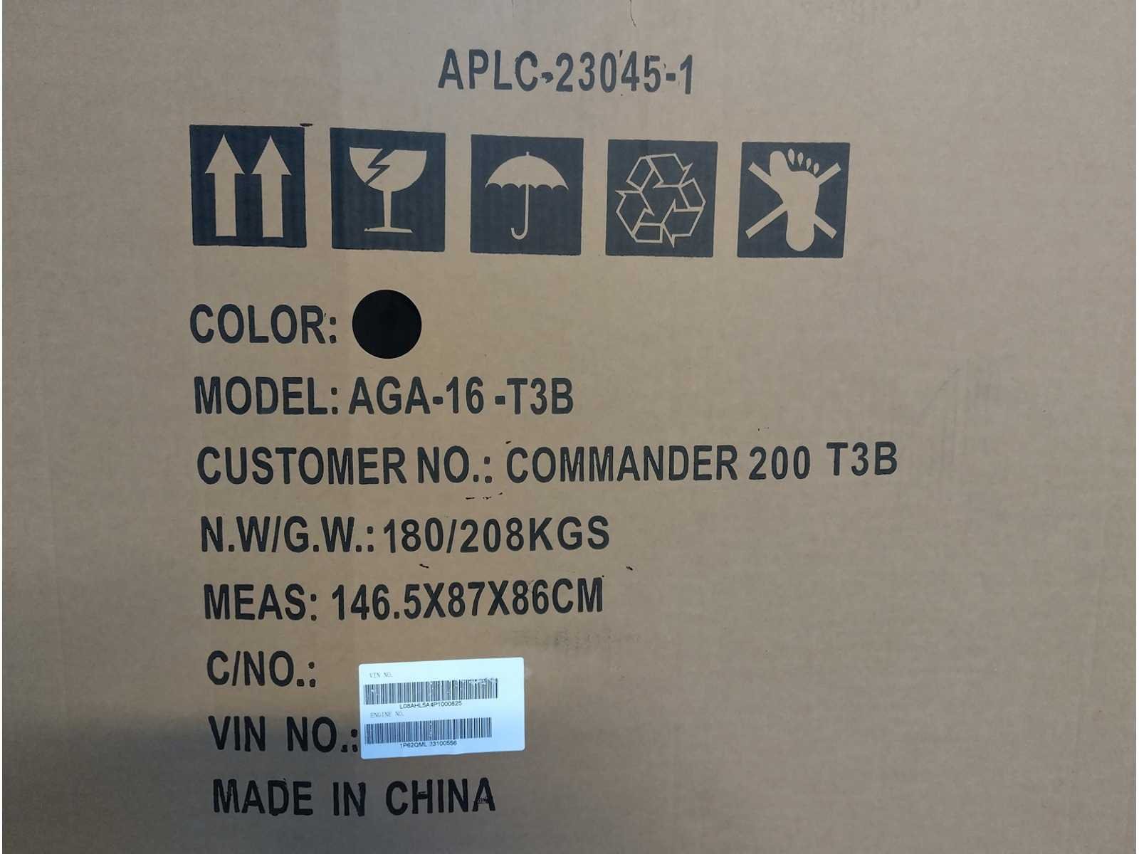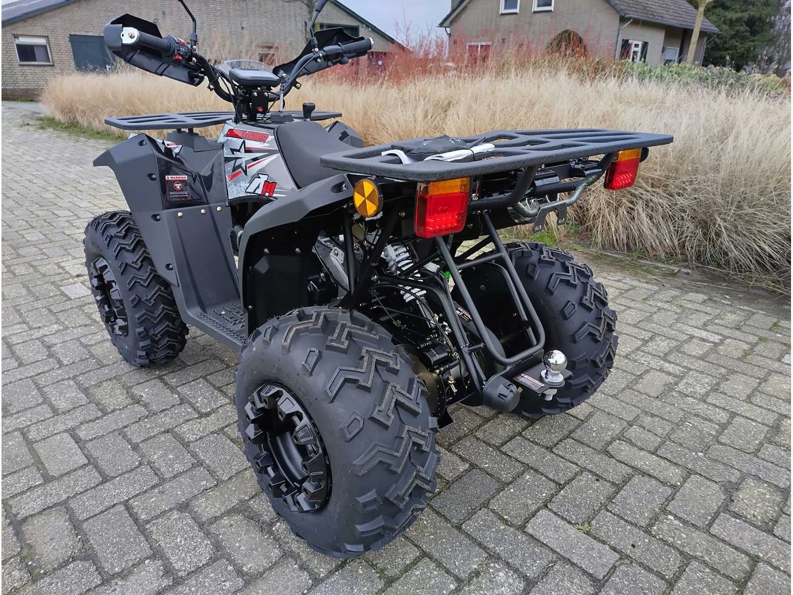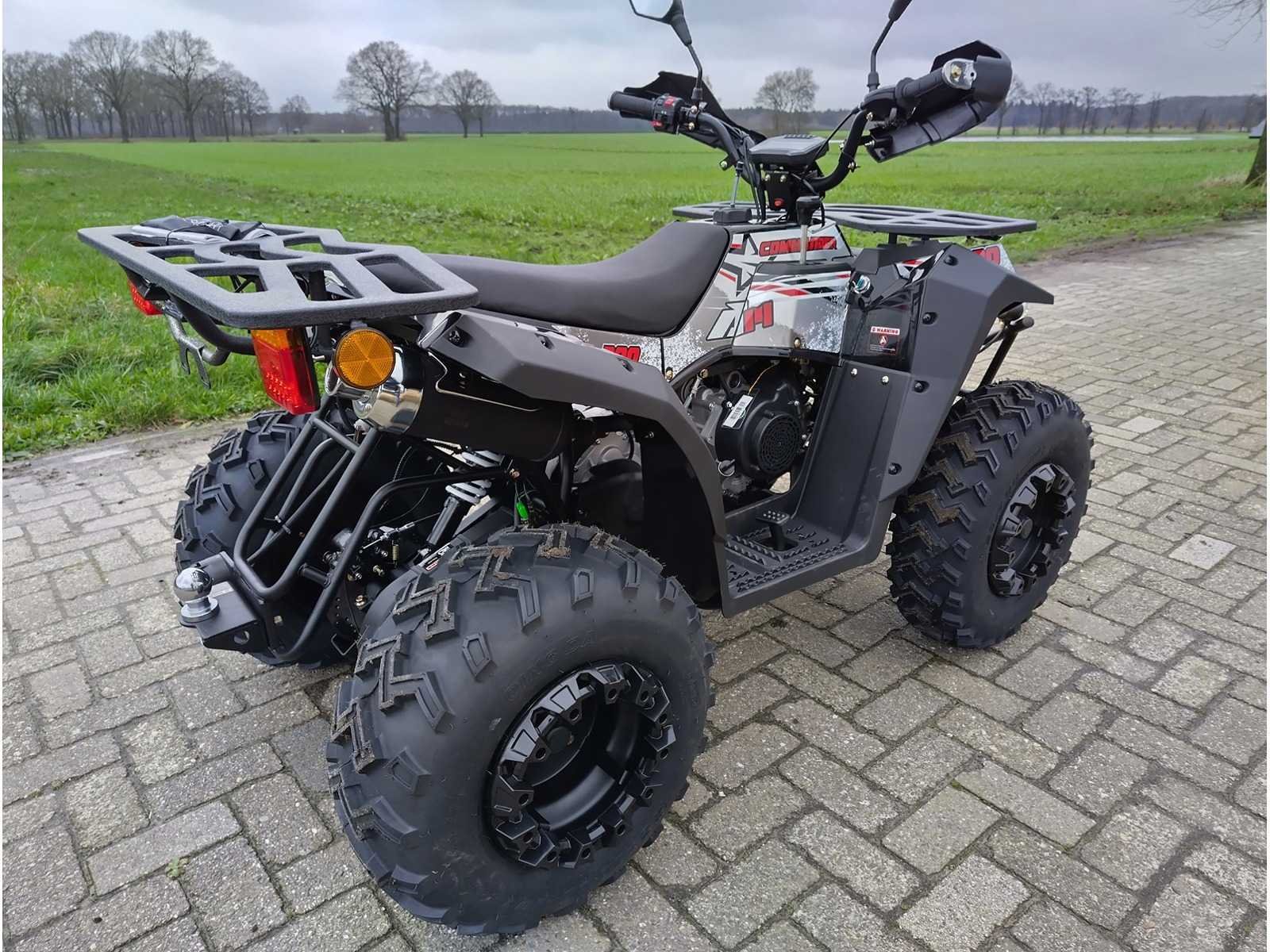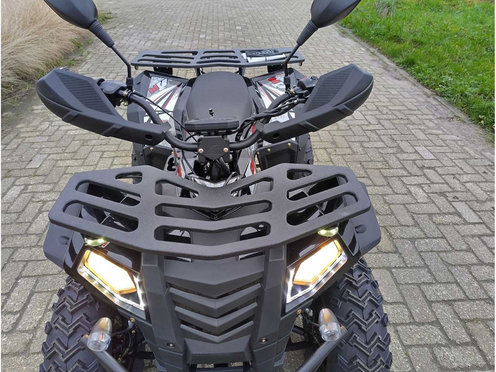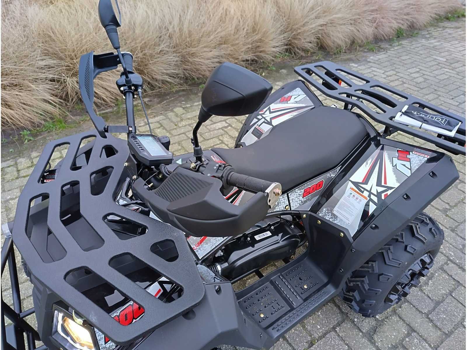 Ongebruikt AIII Commander 200CC Quad, met COC certificaat, geschikt voor openbare weg, Motortype: 200 CC, FNR, CVT, eencilinder, oliekoeling. Carburateur: PD24. Rijden: #530 kettingaandrijving. Ontsteking: Elektrische start. Maximum snelheid: 60 km/h. Tankinhoud: 6L/Staal. FR&RR Wielen: Fr: Stalen velg: 23×7-10" Rr: Stalen velg: 22×10-10" off-road banden. Snelheidsmeter: LCD-scherm. Schokdempers: hydraulische schokdempers. Rem: Fr &; Rr schijfrem. Stuur/Frame: Staal. Achterbrug: staal. Bagagerek: voor en achter (staal). Stuurbescherming: kunststof. Zithoogte: 79 cm. Draagvermogen: 150 kg. GW/ NW: 180 kg / 208 kg. Bodemvrijheid: 16 cm. Product afmetingen: 167 cm x 102 cm x 110 cm. Sleutel. LED dagrij verlichting. Trekoog voor. Trekhaak met 7-polige stekker 12V achter. wordt geleverd nieuw in doos. Nee