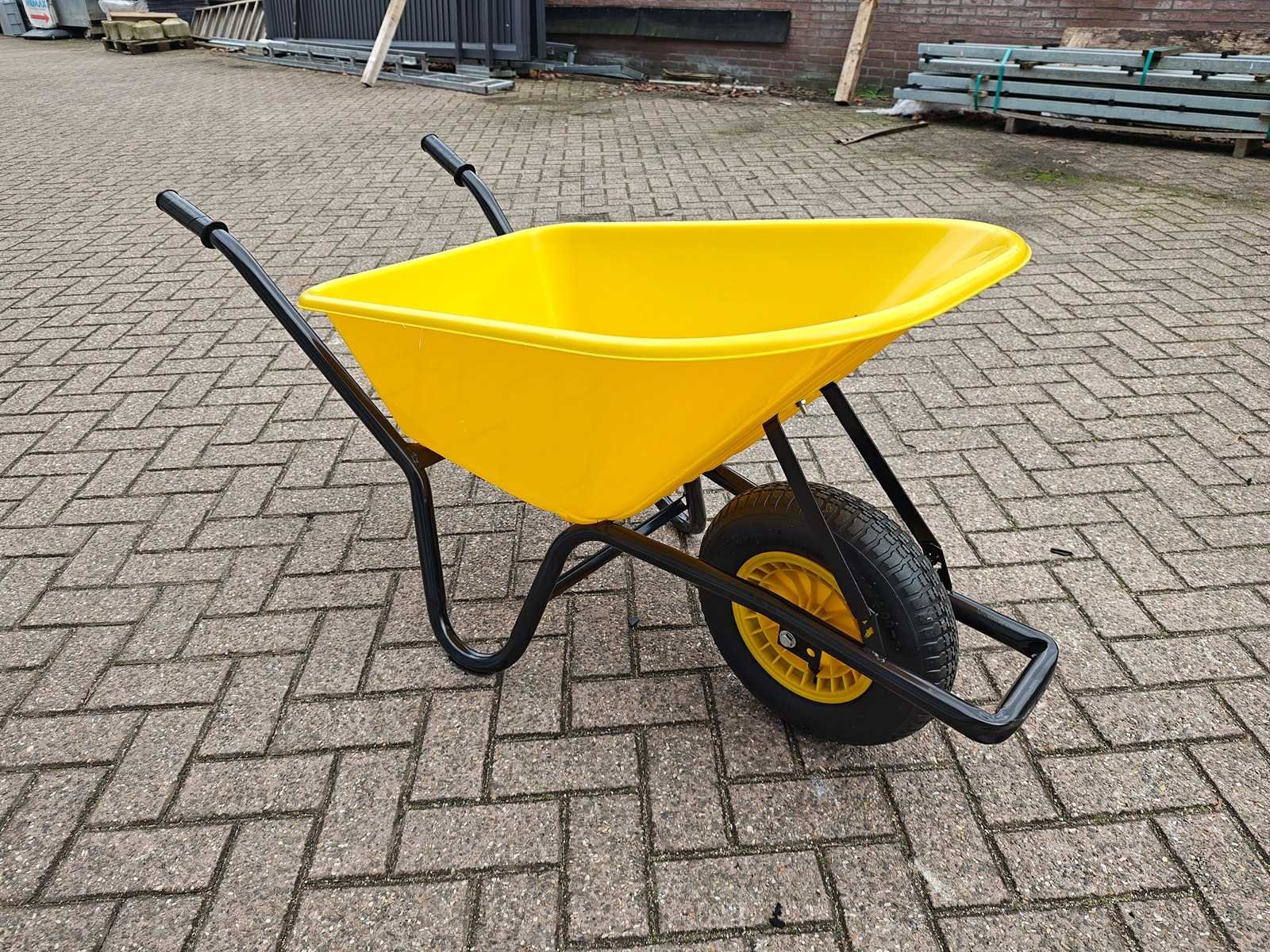 Kruiwagen kunststof bak 90 liter geel luchtband Nee Model: 90 liter