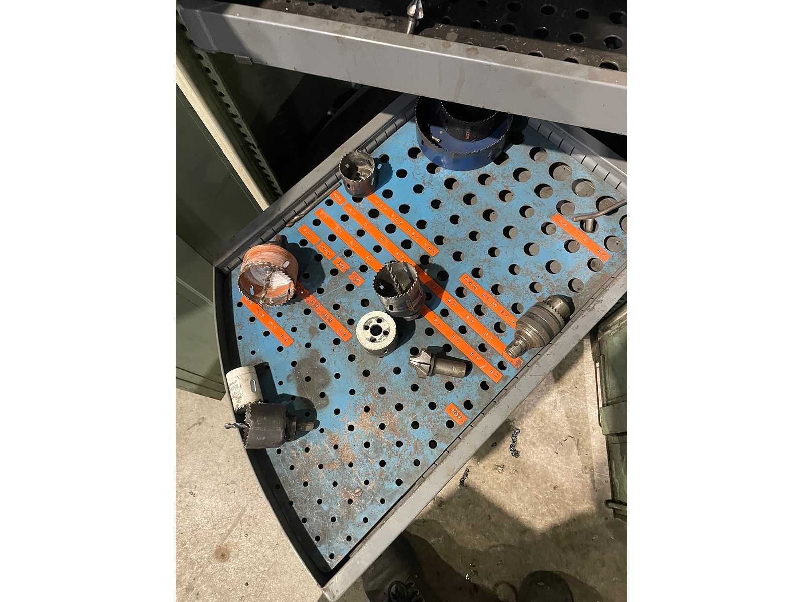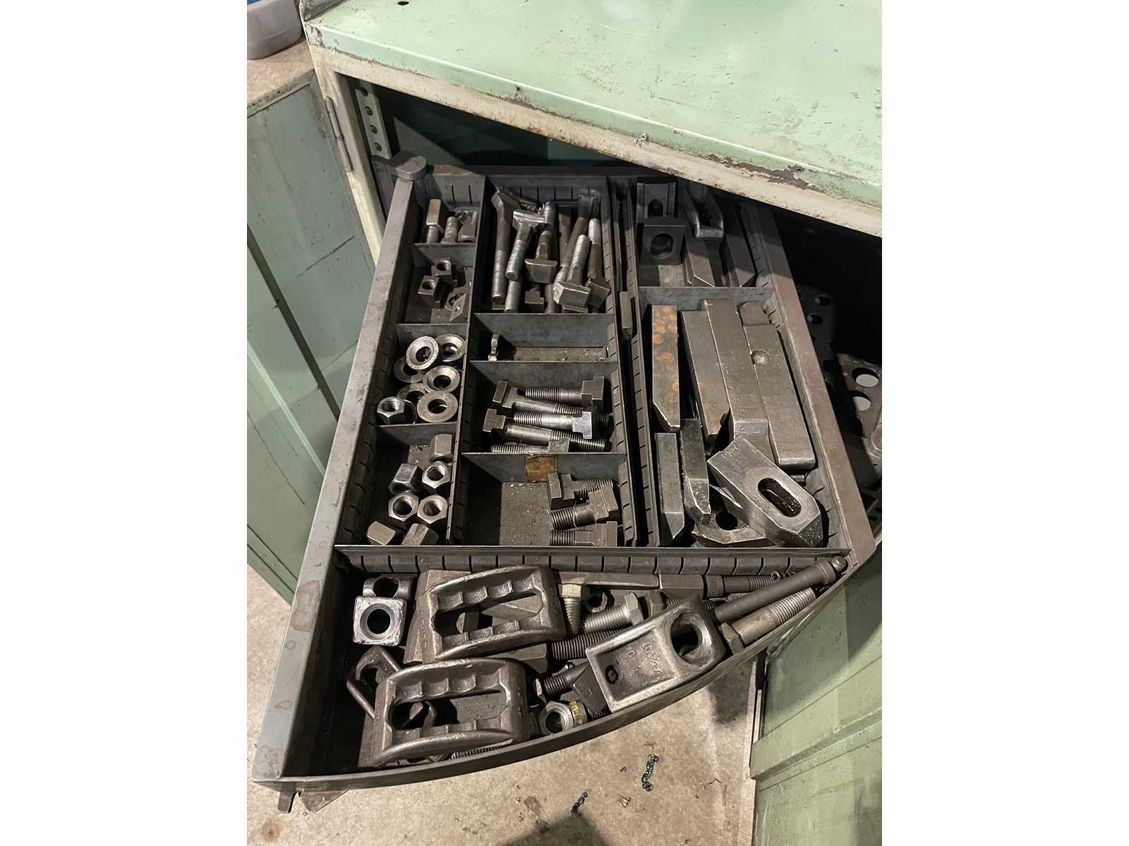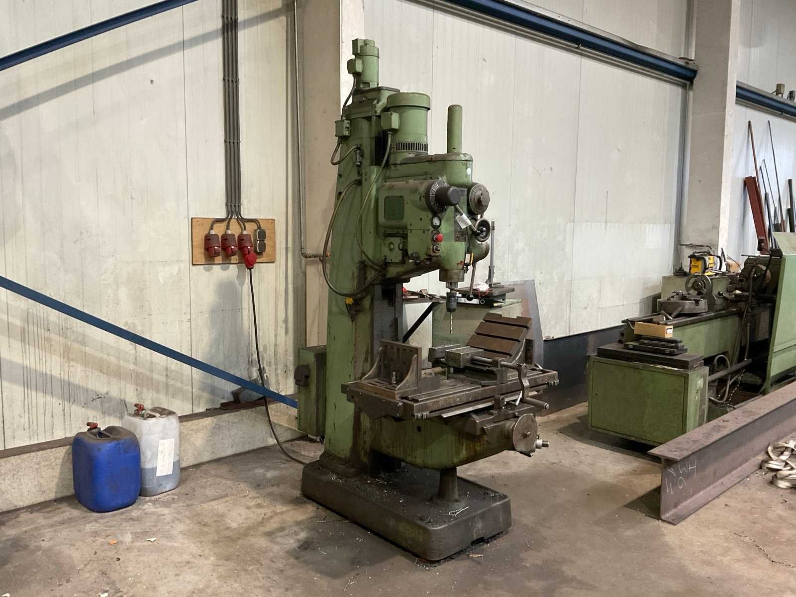 Boormachine met tap functie tot M24; tafelverplaatsing 220x300x600 mm; incl. kleminrichting; opspangereedschap en diverse boren Nee Merk: Yoshida Type: YGD-900CT Boorcapaciteit: 50mm Aantal snelheden: 24 Snelheid van n =: 8.3rpm Snelheid tot n =: 1500rpm Uitlading: 475mm T-gleuf opspantafelafmeting L: 600mm T-gleuf opspantafelafmeting B: 1150mm Motorvermogen (kW): 2.2kW Aansluiting: 400V Afmeting l: 1250mm Afmeting b: 1700mm Afmeting h: 2550mm