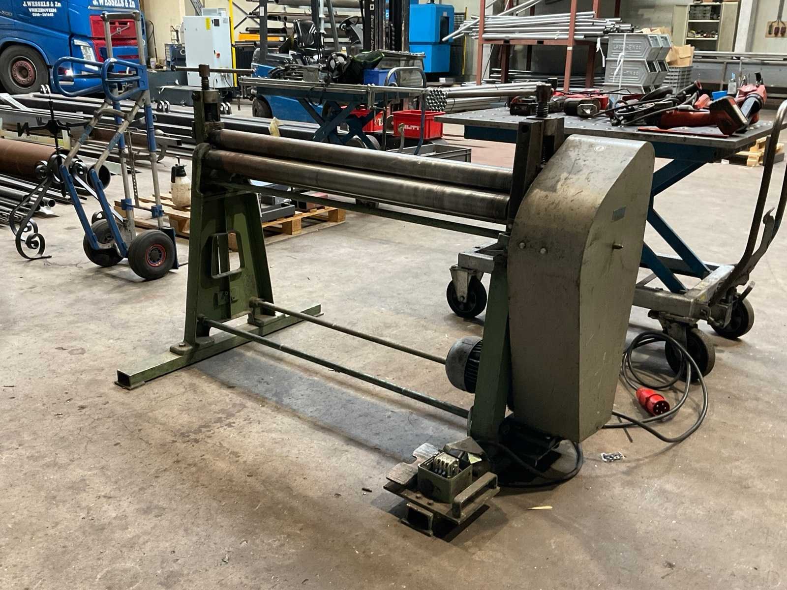 Nee Capaciteit lengte: 1280mm Aantal rollen: 3 Bovenrol Ø ca.: 80mm Rollengte: 1300mm Voetbediening: true Aansluiting: 400V Afmeting l: 1700mm Afmeting b: 1000mm Afmeting h: 1200mm