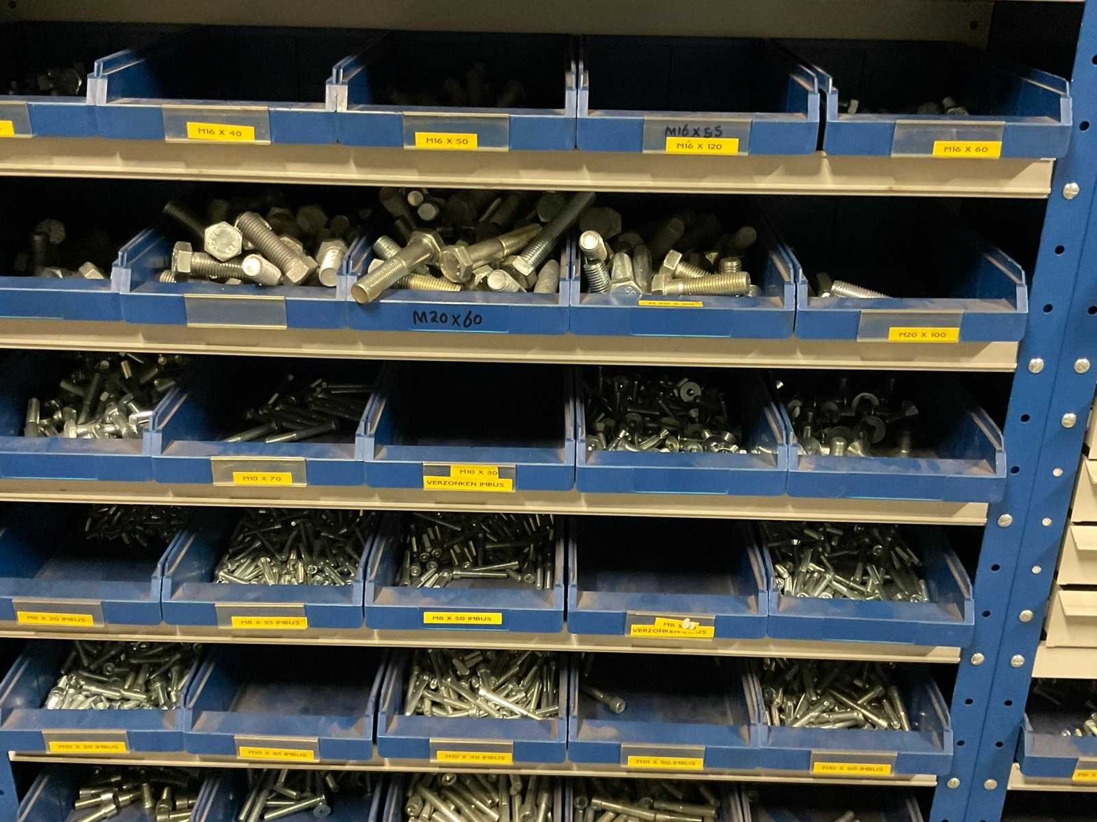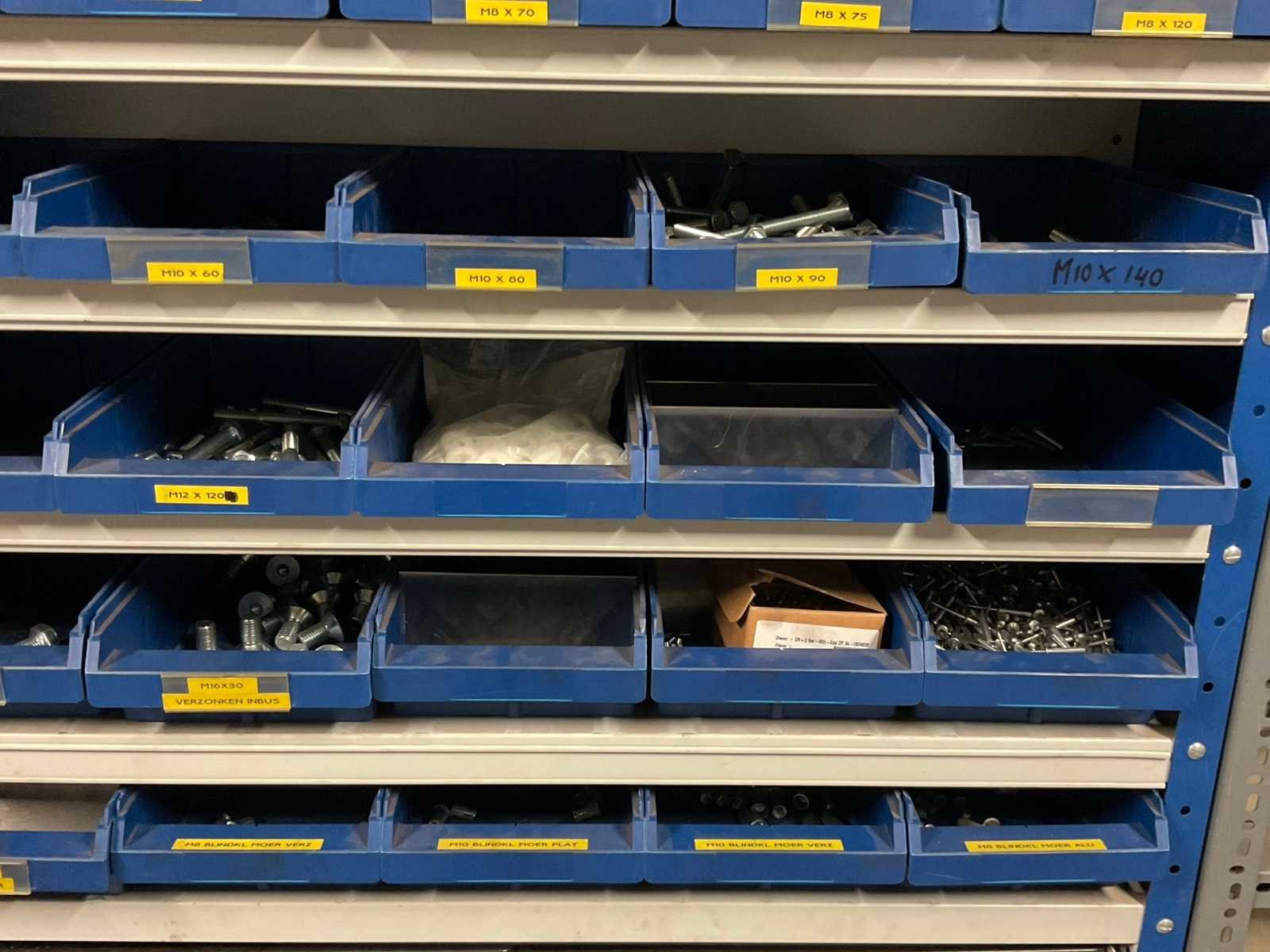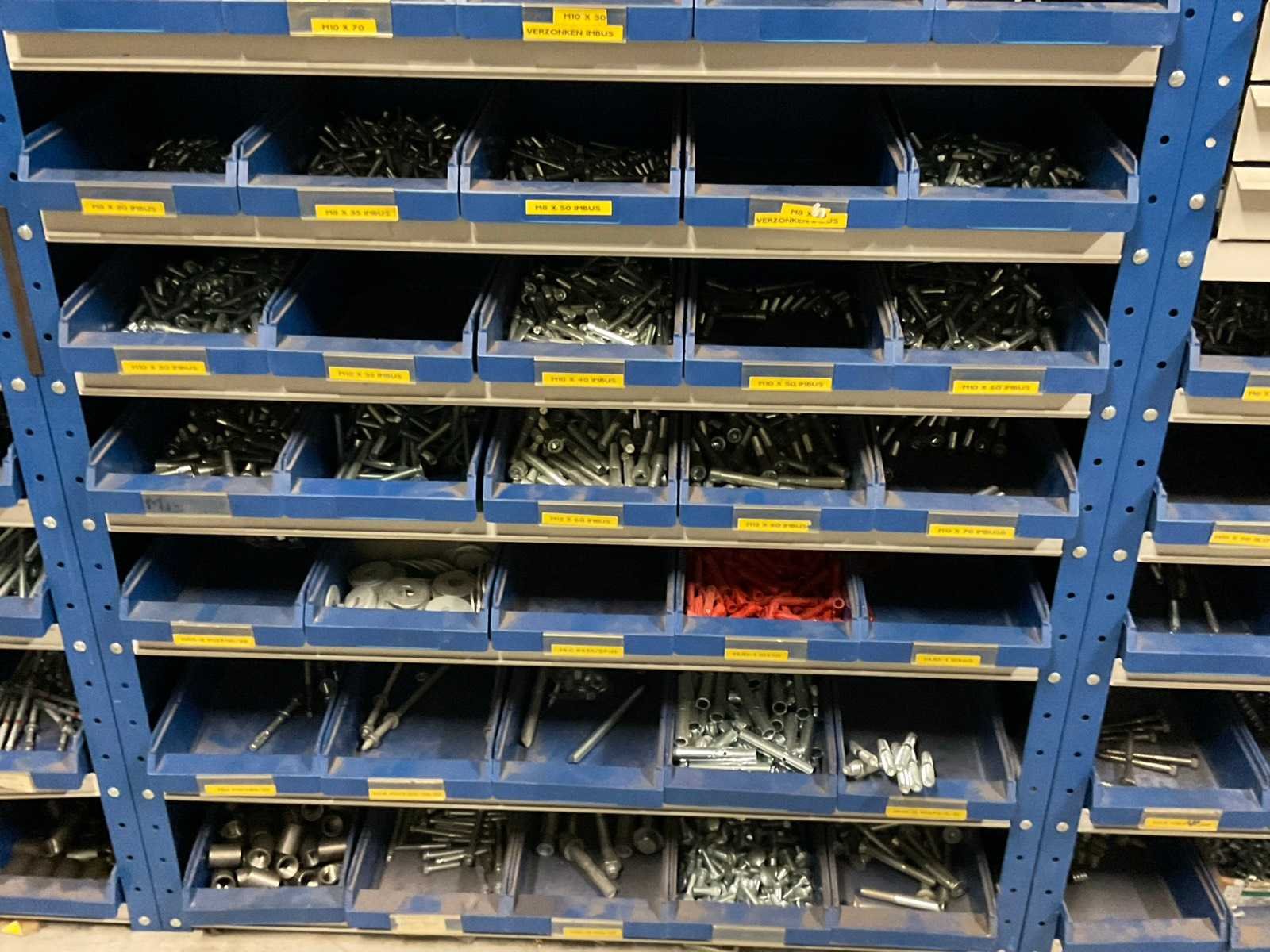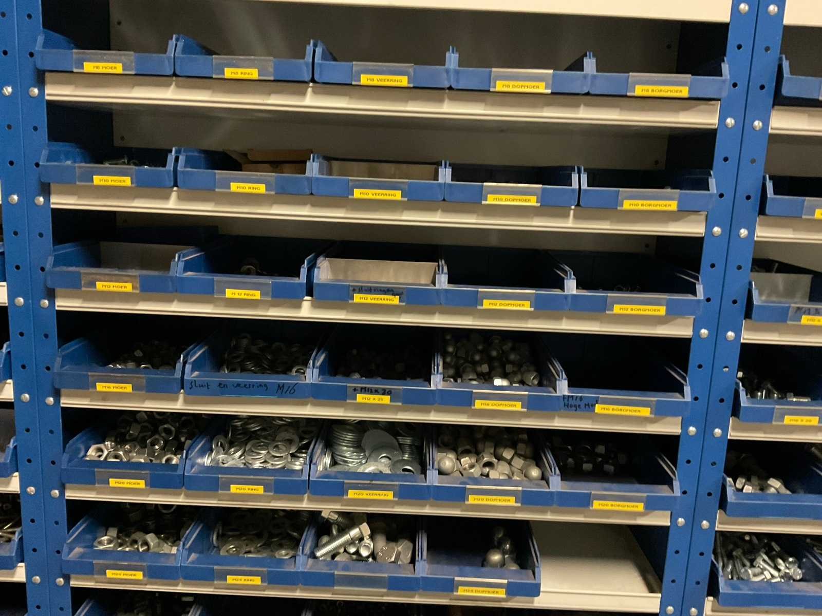 W.o. bouten; moeren; ringen; bussen; zelftappers etc.; incl. magazijnbakken en 3-secties legbordstelling Nee