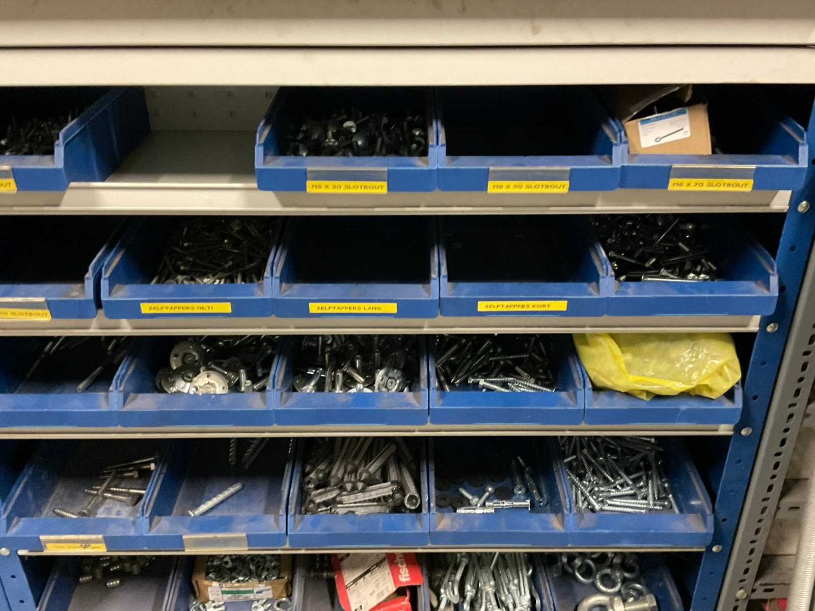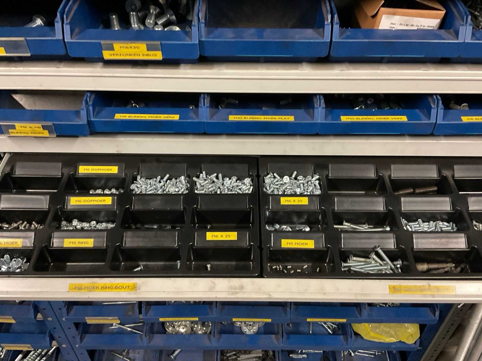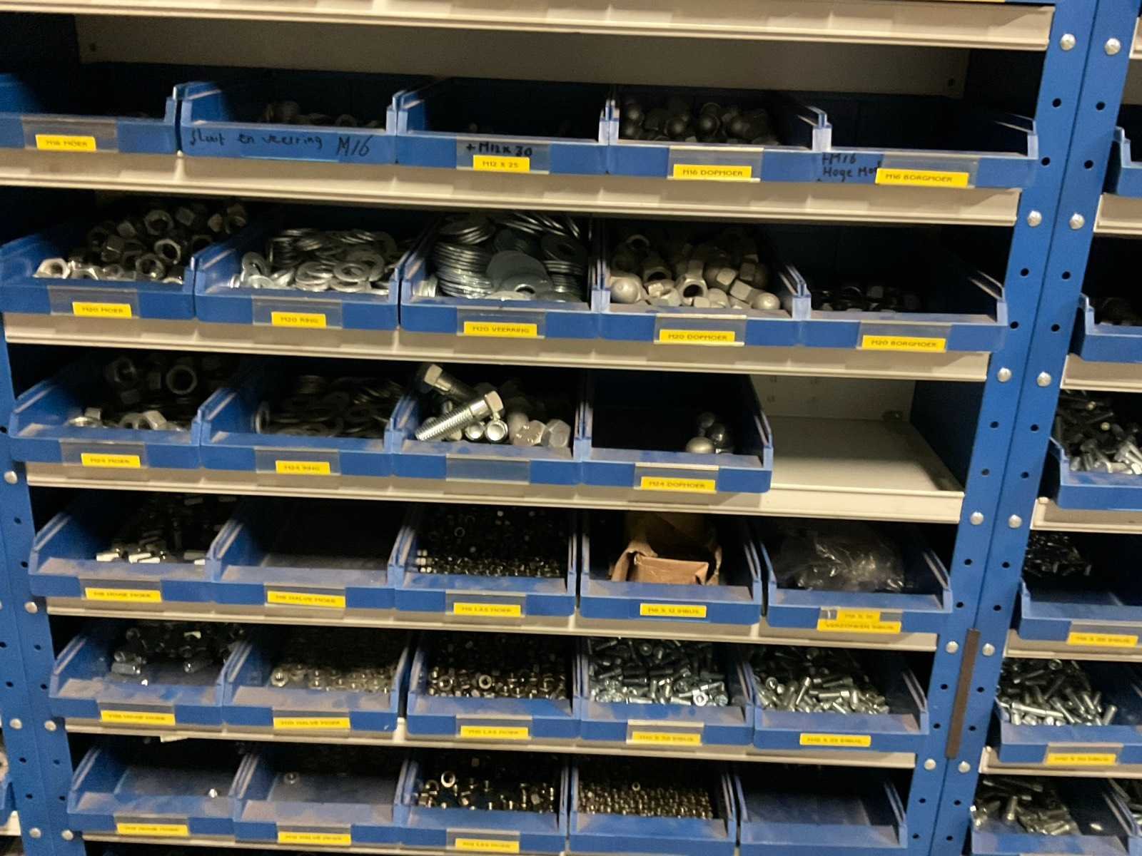 W.o. bouten; moeren; ringen; bussen; zelftappers etc.; incl. magazijnbakken en 3-secties legbordstelling Nee