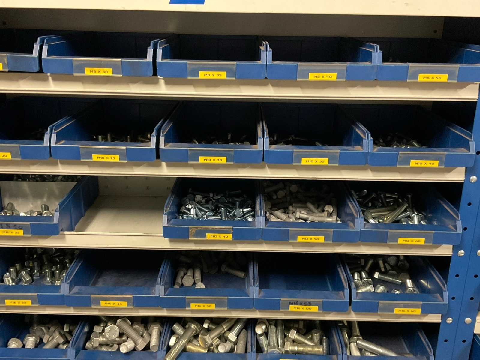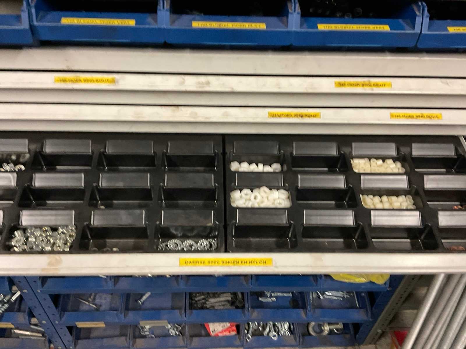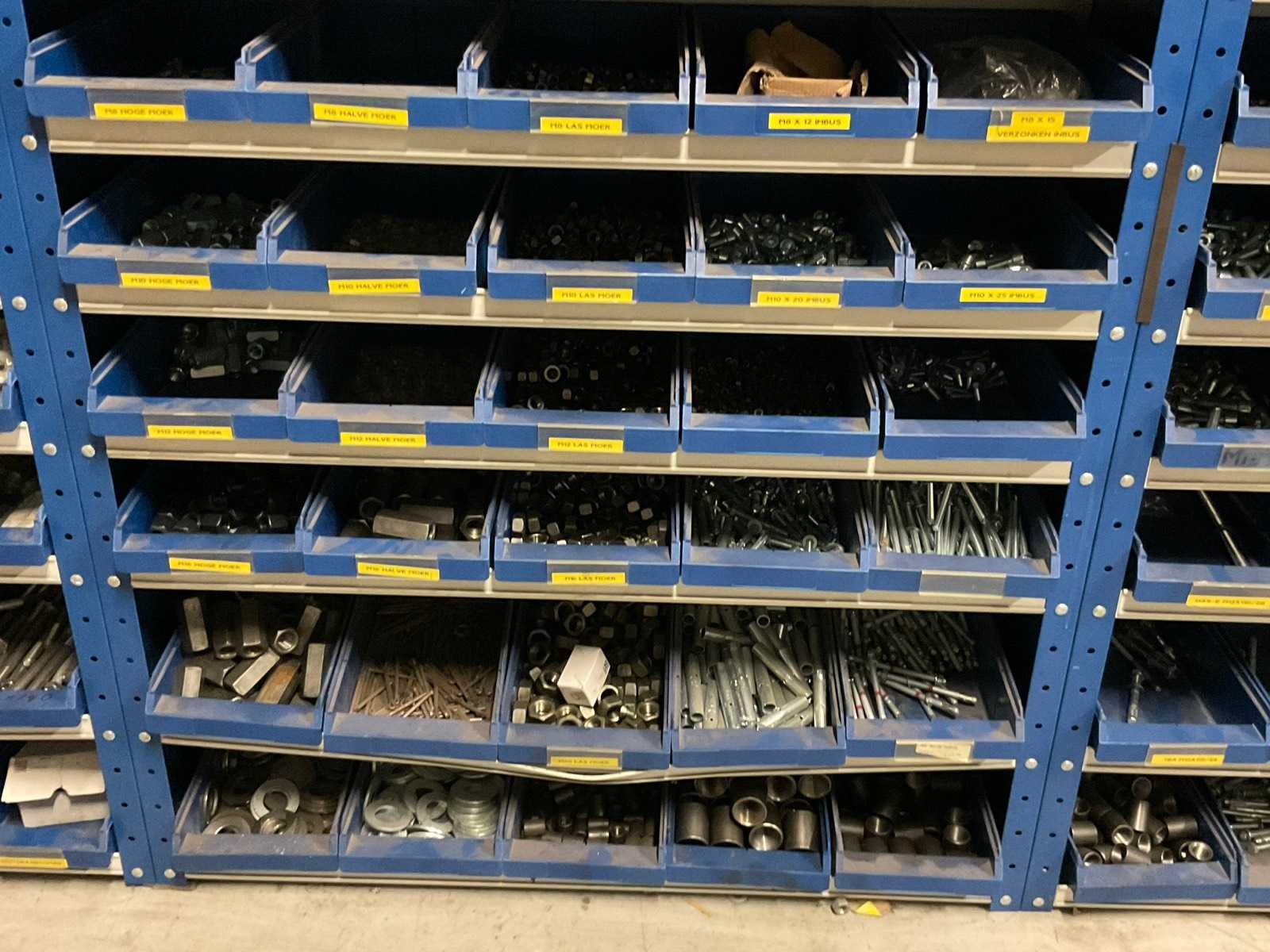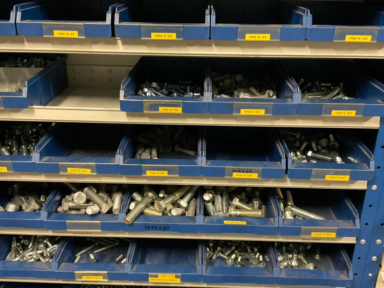 W.o. bouten; moeren; ringen; bussen; zelftappers etc.; incl. magazijnbakken en 3-secties legbordstelling Nee