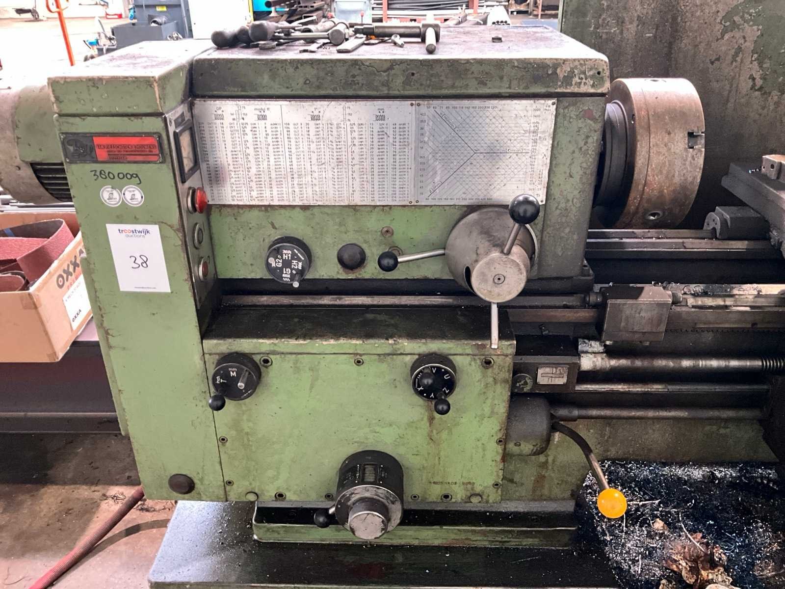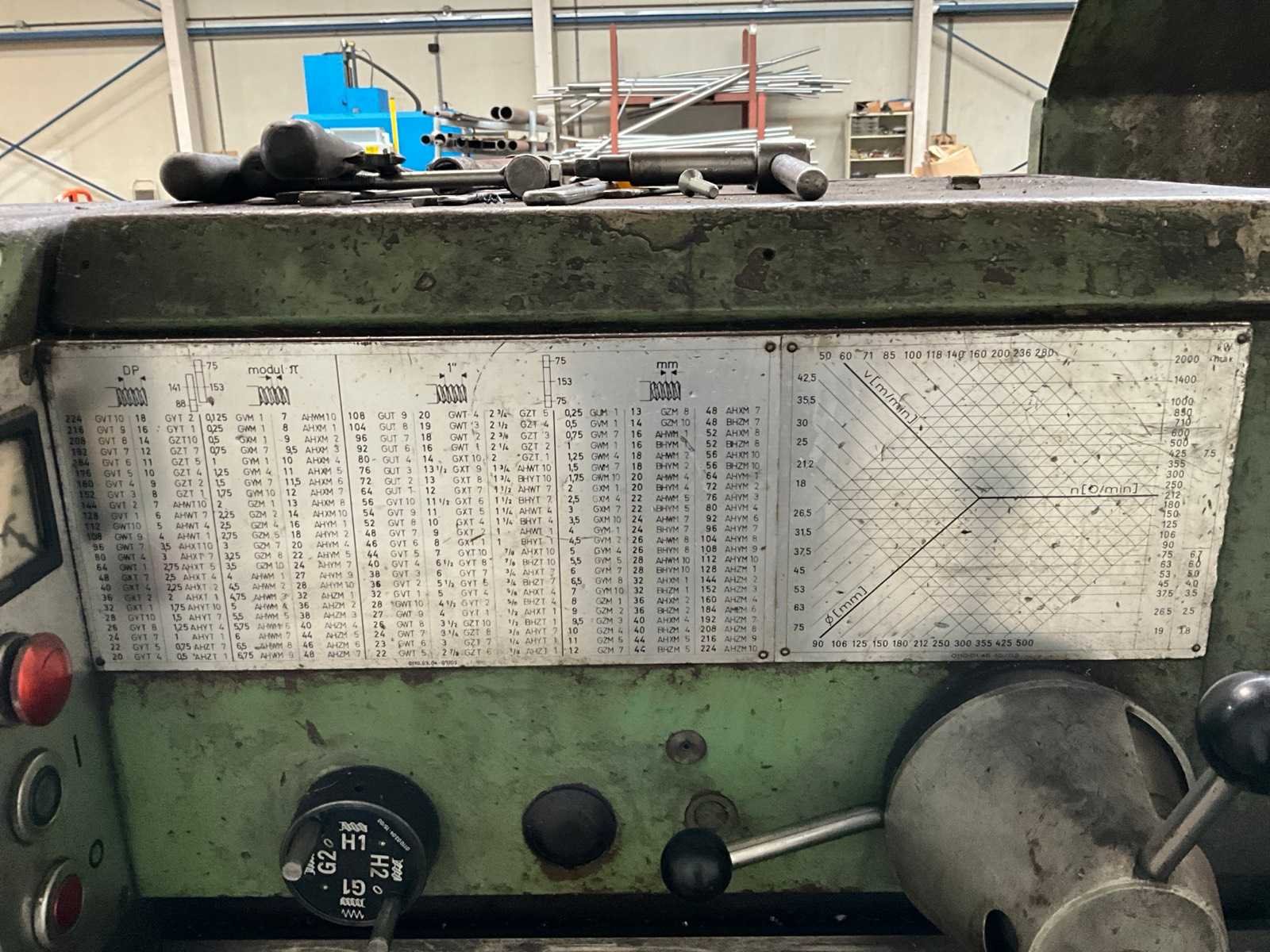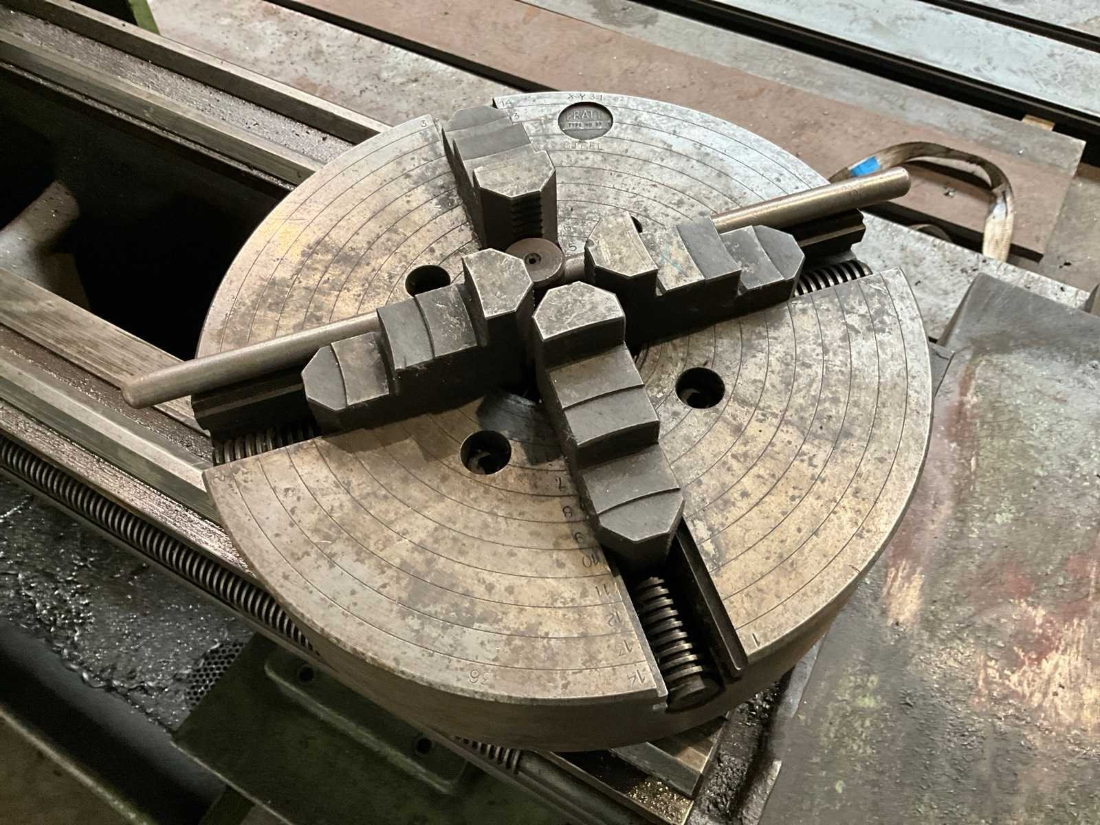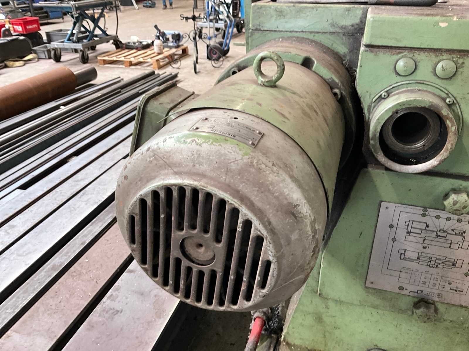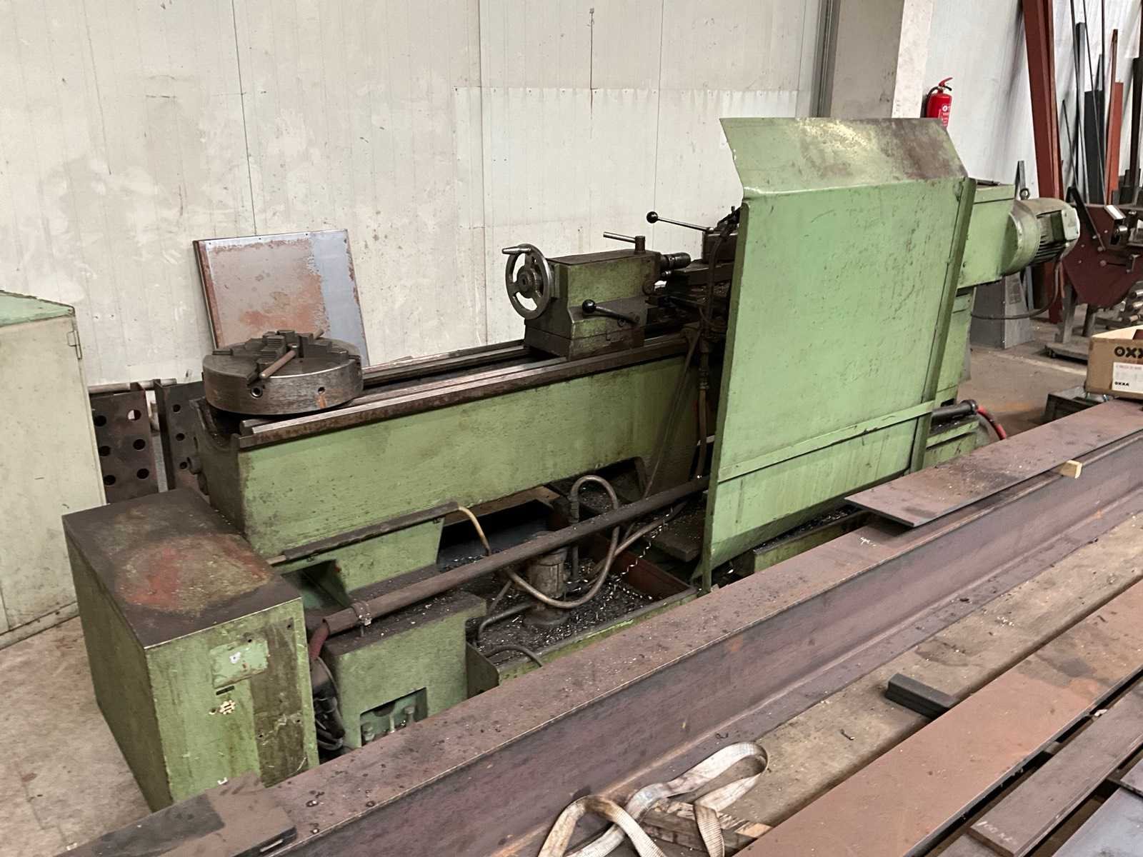 Voorzien van 3- en 4-klauwplaat; vermogen 7,5kW; inclusief gereedschappen en machine-onderdelen Nee Merk: RH Draailengte: 2000mm Draai: 450mm Holle spil Ø: 55mm Aantal snelheden: 36 Snelheid van n =: 19rpm Snelheid tot n =: 2000rpm Aansluiting: 400V Afmeting l: 3300mm Afmeting b: 1100mm Afmeting h: 1699mm