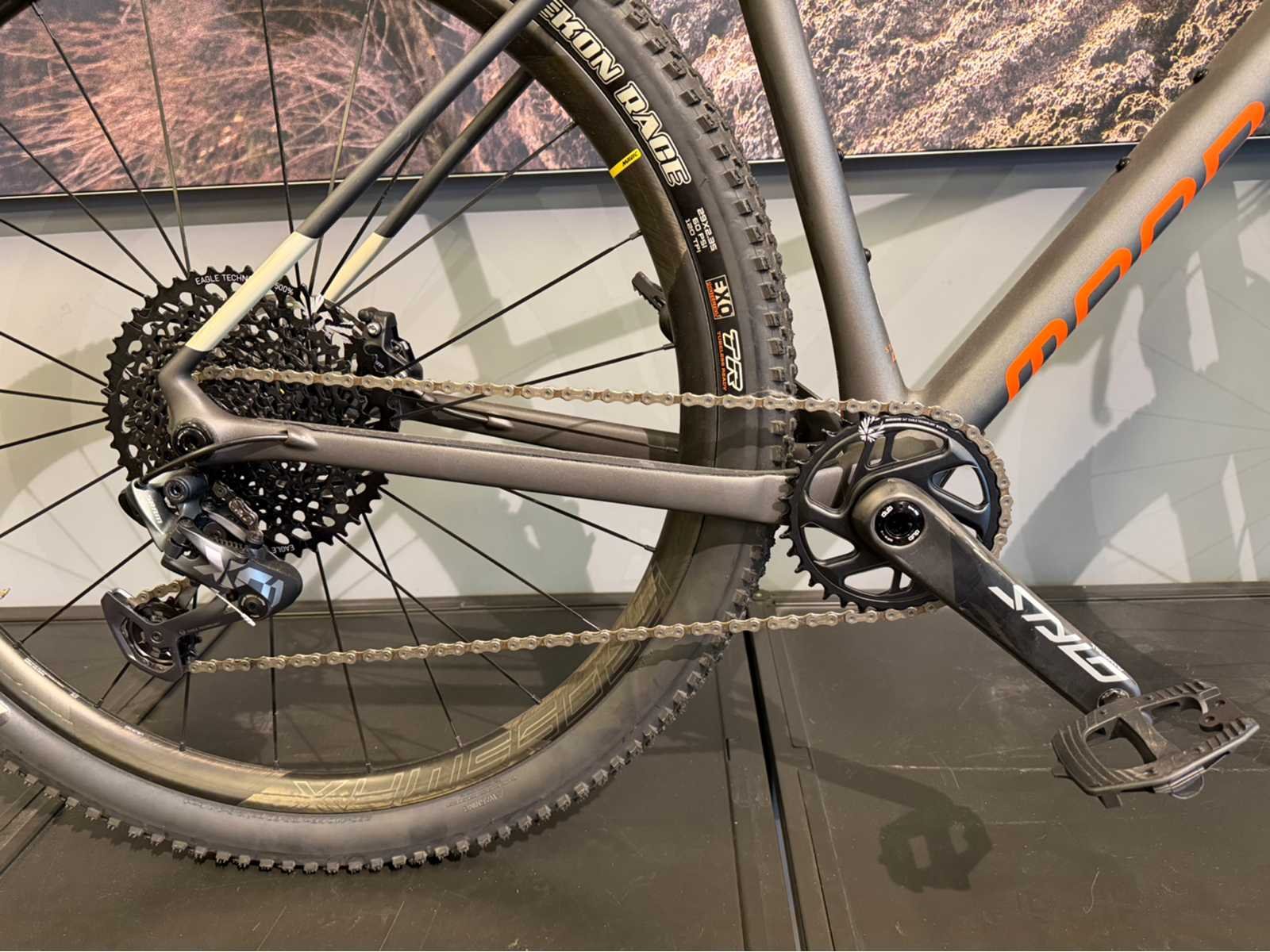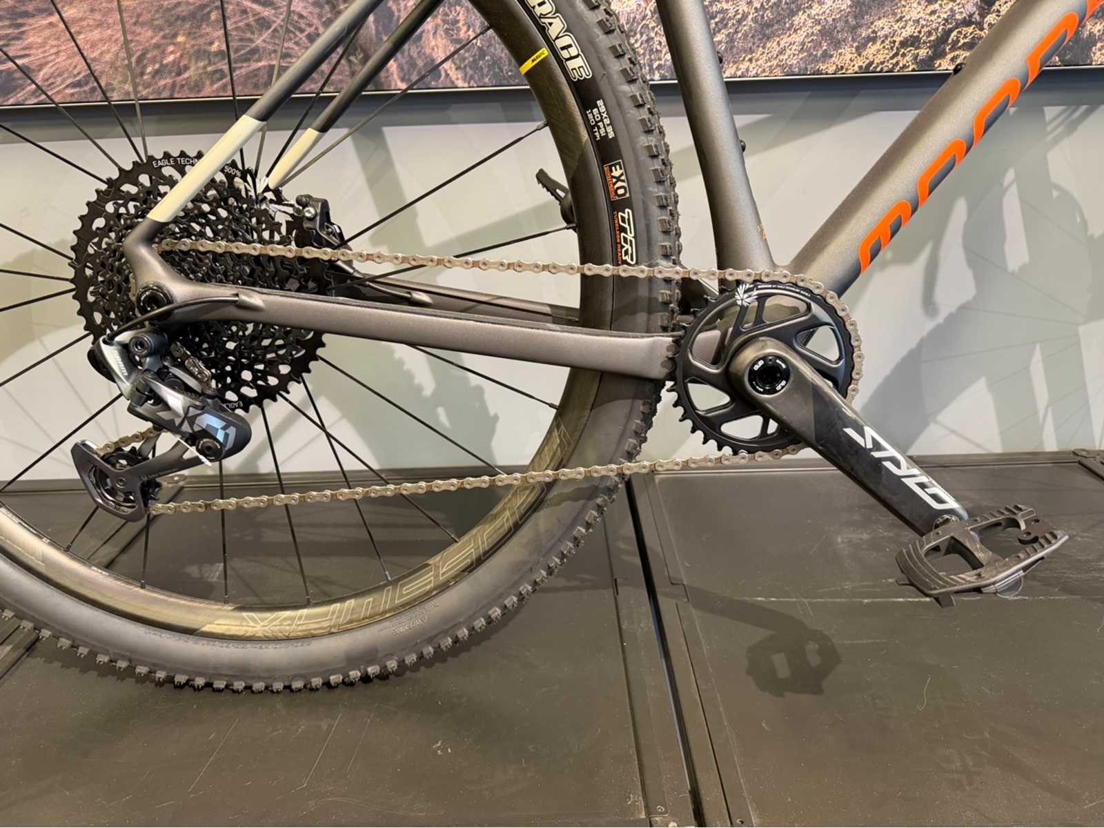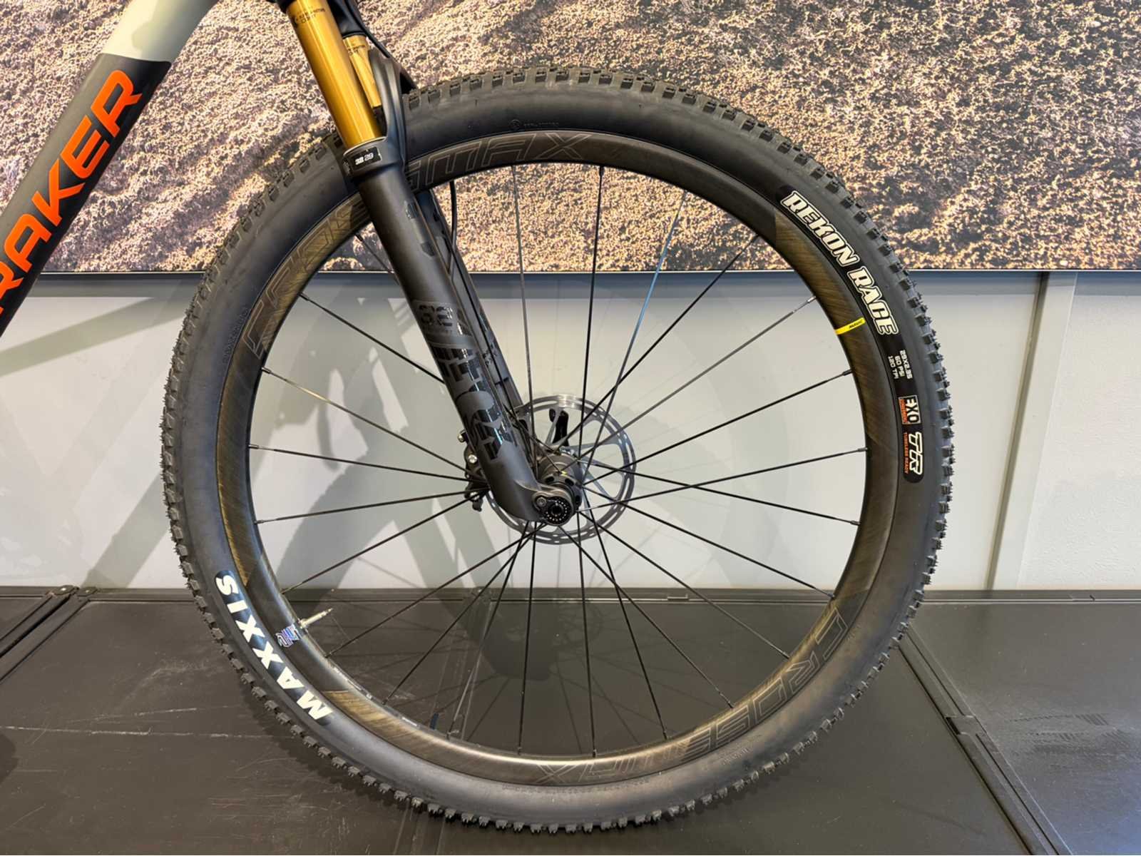 Voorvork: Fox 32 Step Cast Float FIT4 EVOL Factory Kashima, 100mm veerweg; Velgen: Mavic CrossMax Carbon SL R 29; Crankset: Sram Truvativ Stylo Carbon Eagle, 12 versnellingen Nee Merk: Mondraker Model: Podium Carbon R Voorvering: true Versnellingen: 12 Framemaat: L