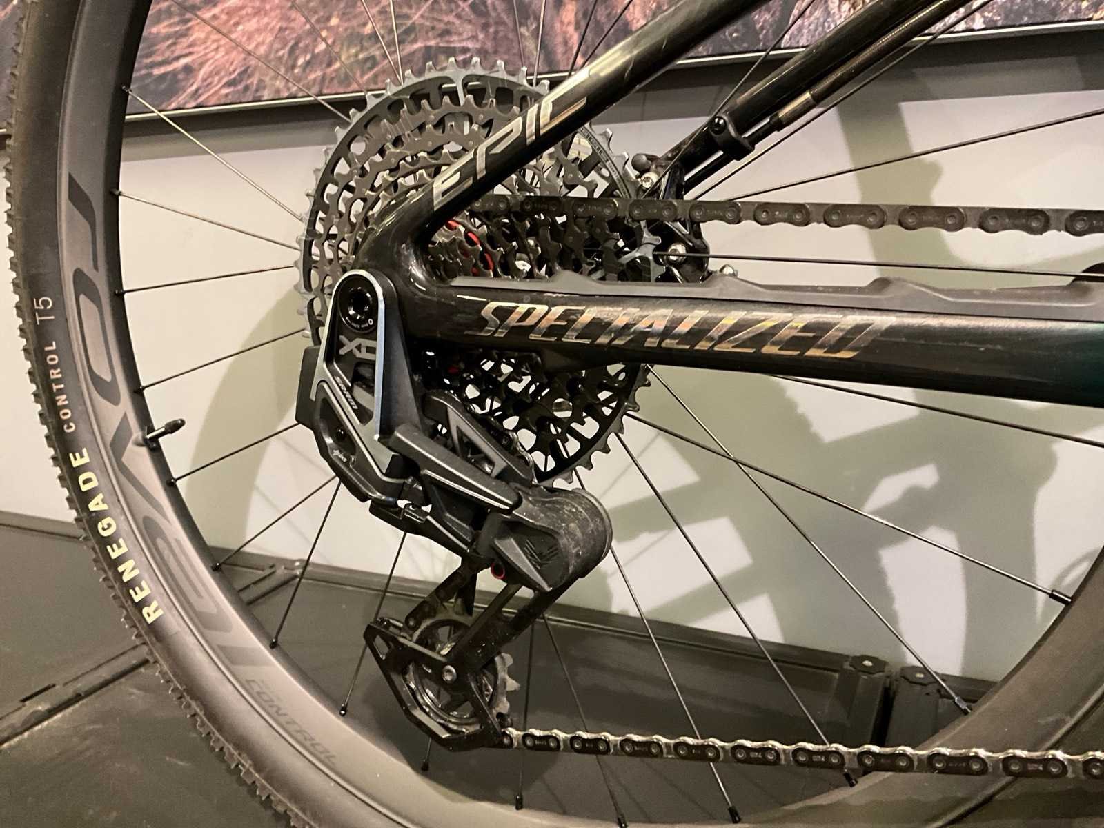 Schakeltype: elektronisch; Vork: RockShox SID SL ULTIMATE BRAIN, Top-Adjust Brain damper, Debon Air, 15x110mm, 44mm offset, 100mm Travel; Achterdemper: RockShox; Achterderailleur: SRAM XX1 Eagle AXS; Crank: SRAM XX1; Remmen: SRAM Level Ultimate; Wielen: Roval Control SL Nee Merk: S-Works Model: Epic Remsysteem: Schijfrem Achtervering: true Voorvering: true Versnellingen: 12 Framemaat: L Kleur: Groen Materiaal: 12m fact carbon