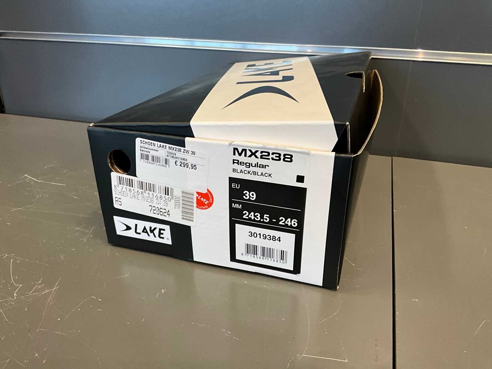 Voetlengte mm: 243.5 - 246 Nee Merk: Lake Product type: MX238 Regular Maat: 39 Bevesting schoenplaat: Nee Type sluiting: BOA dubbel Kleur: Black/Black