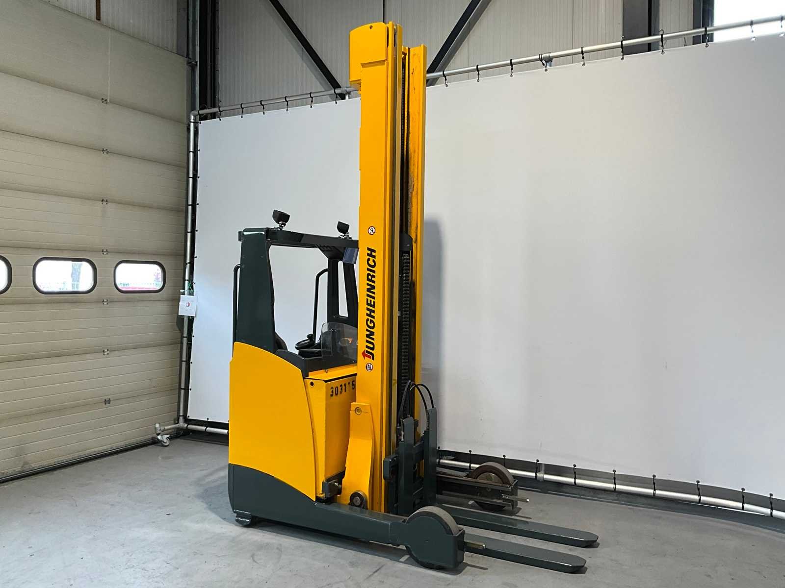 Extra optie : Telescopische reach vorken Nee Merk: Jungheinrich Type: ETV 320 Bouwjaar: 2009 Serienummer: 91059396 Aantal wielen: 3 Afgelezen urenstand: 8941 Accu lader: true Free-lift: true Side-shift: true Hydraulisch verstelbare lepels: true Triple mast: true Eigen gewicht: 4000kg Hefvermogen: 2000kg Max. hefhoogte: 8720mm Hefhoogte: 8720mm Totale afmeting L: 2450mm Totale afmeting Breedte: 1260mm Totale afmeting Hoogte: 3540mm Elektrisch: true