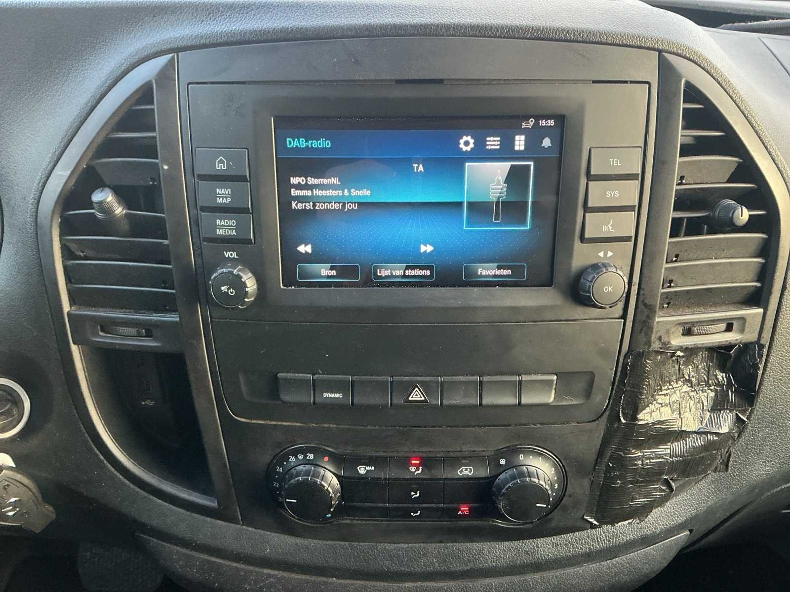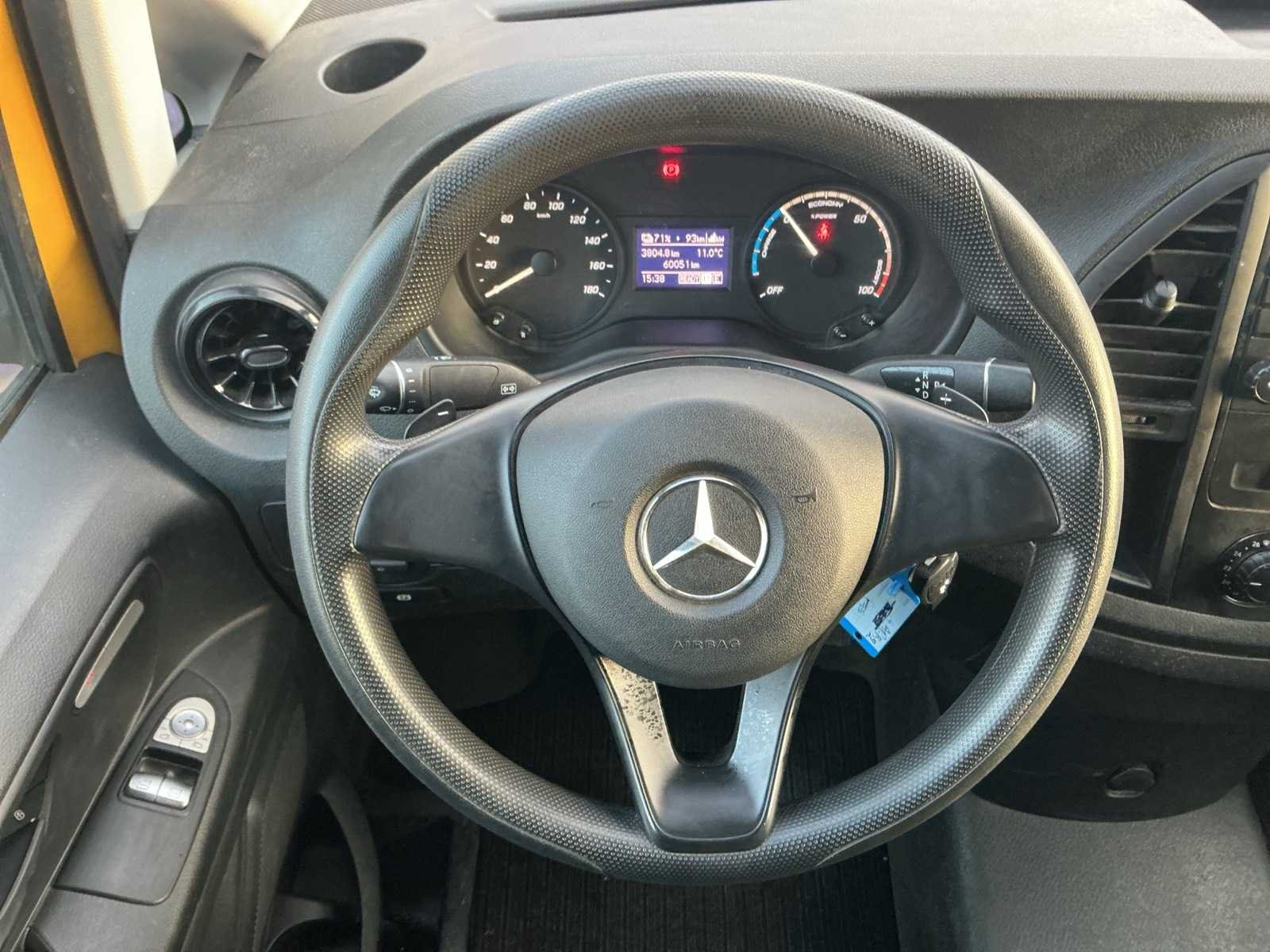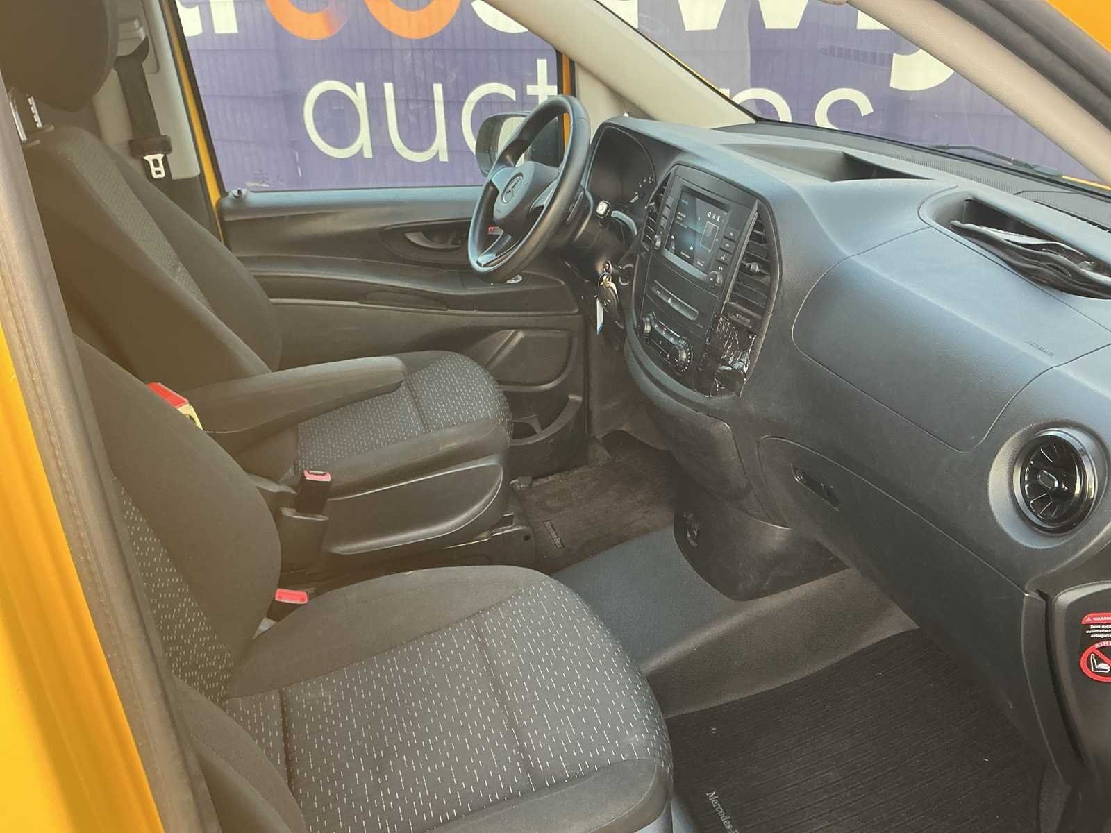 Elektrische ramen; elektrisch verstelbare spiegels; stoelverwarming; Airco; Radio/CD Nee Kenteken: VHH-85-N Merk: Mercedes-Benz Type: eVito Lang 41kWh Model: eVito Afgelezen kilometerstand: 60051km Brandstof: elektriciteit Datum eerste toelating: 2020-10-29 Datum eerste toelating (NL): 2020-10-29 APK vervaldatum: 2026-10-29 Transmissie: Automaat Aantal zitplaatsen: 3 Kleur: geel Aantal deuren: 6 Ledig gewicht: 2136kg Laadvermogen: 1064kg Vermogen (pk): 0 Carrosserie: gesloten opbouw Emissieklasse: Z