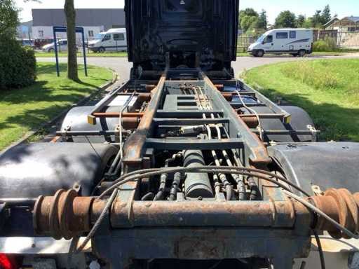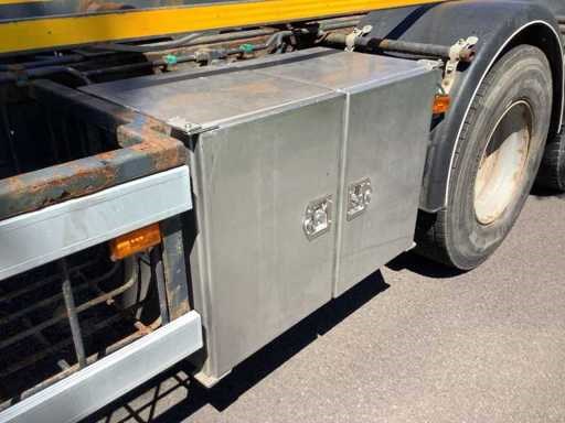 V.v. PTO; climate control; radio/CD; verwarmde buitenspiegels; cruise control; elektrische ramen; luchtvering; 2x slaapplaats; Midland Alan 48 plus multi; dakraam; NCH container kabellier systeem; vooras bladgeveerd; Let op! Storing hoog/laag in de versnellingsbak Nee Kenteken: BV-RZ-43 Merk: scania Bouwjaar: 2009 Cilinderinhoud: 15607cc Kilometerstand bij opname: 1283498km APK vervaldatum: 2024-01-10 Datum eerste toelating: 2009-01-07 Datum eerste toelating (NL): 2009-01-07 Aantal assen: 3 Asconfiguratie: 6x2 Fuel Type: diesel Laadvermogen: 16280kg Emissieklasse: 4 Slaapcabine: true Afgelezen kilometerstand: 1283498km Aantal zitplaatsen: 2 Handgeschakelde versnellingsbak: true