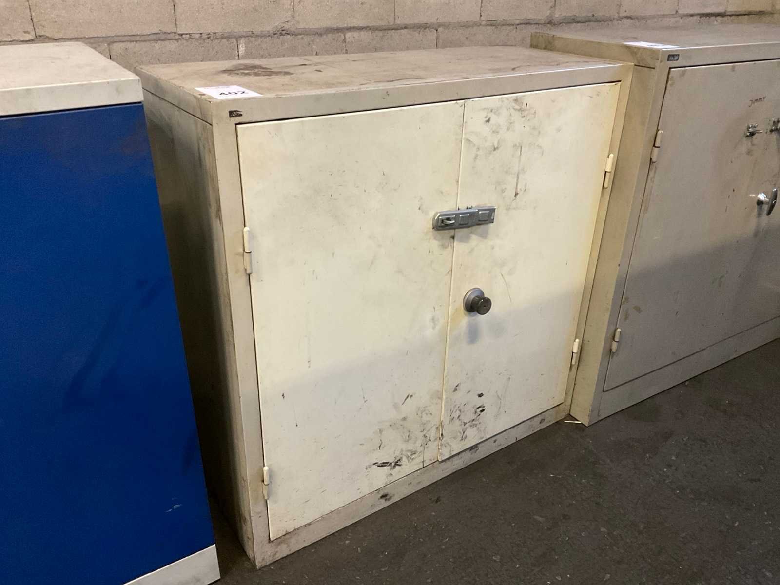 V.v. 2 legplanken, geen sleutel aanwezig. Nee Model: 2-deurs Lengte: 97cm Breedte: 40cm Hoogte: 97cm Materiaal: Staal