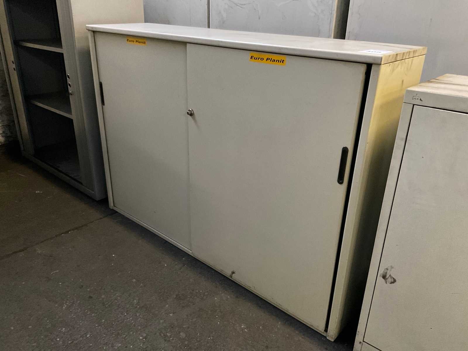 V.v. 2 schuifdeuren, 2 legplanken,geen sleutel. Nee Model: 2-deurs Lengte: 160cm Breedte: 40cm Hoogte: 110cm Materiaal: Staal