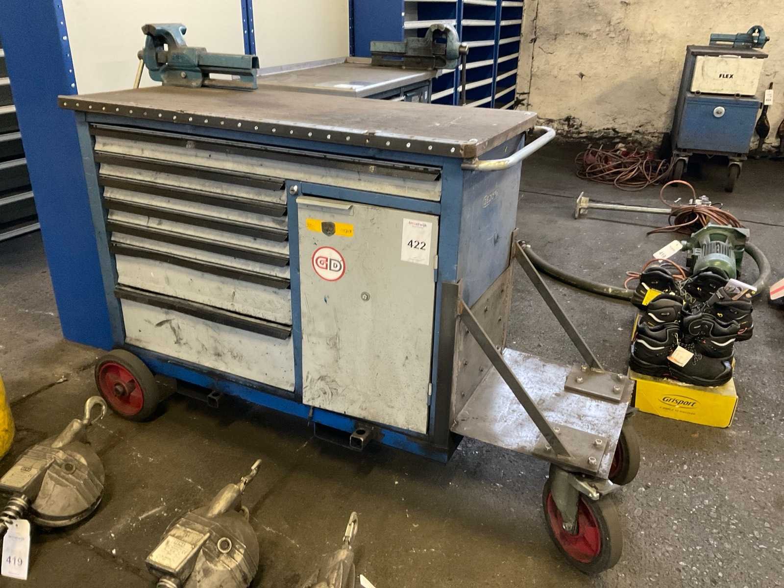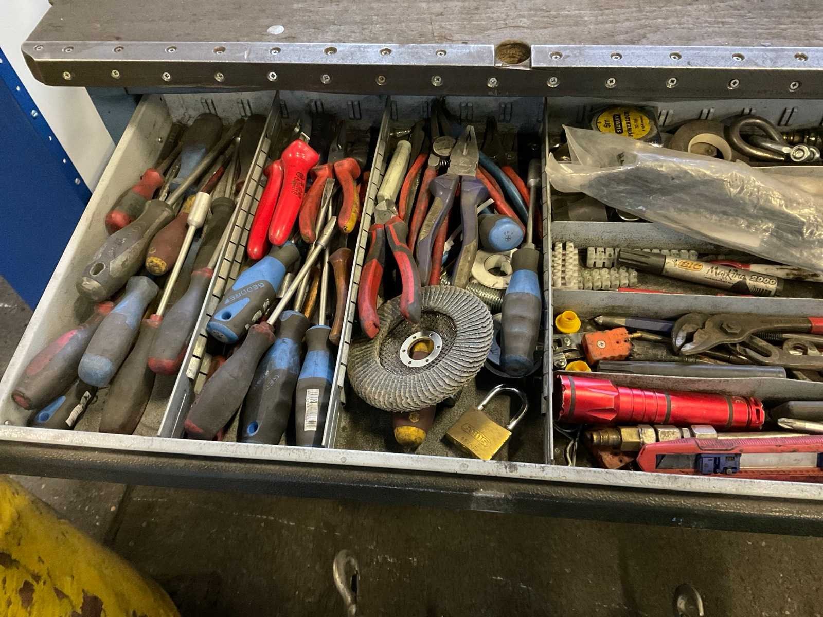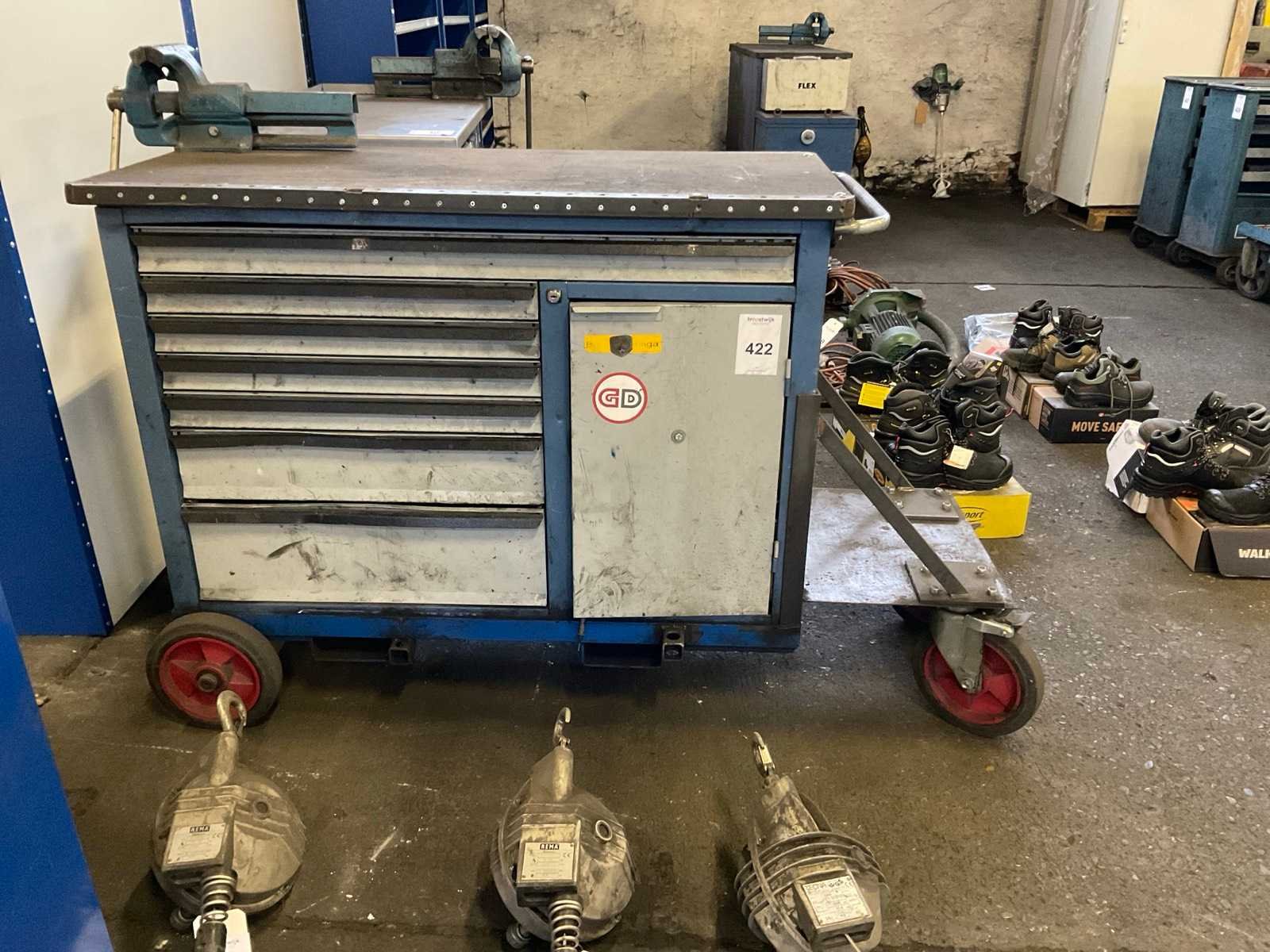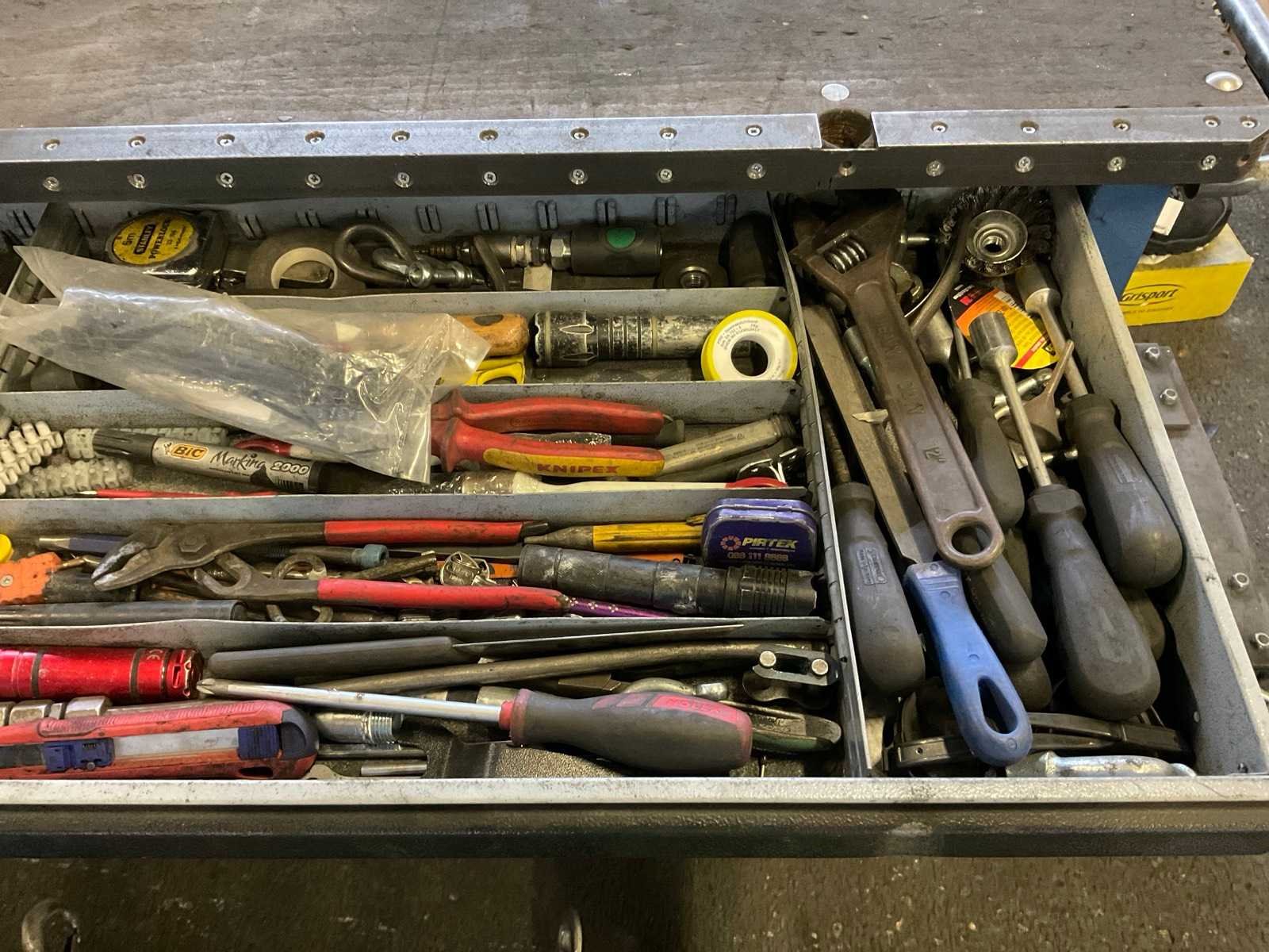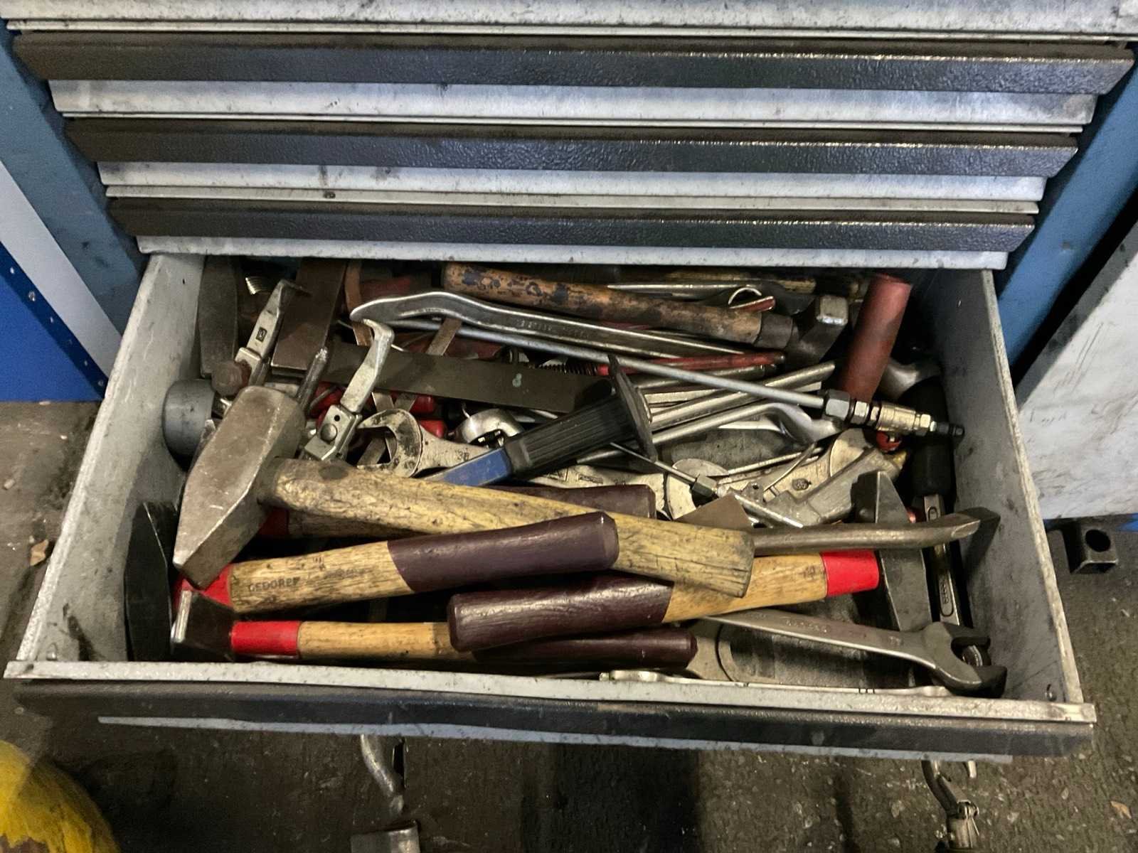 Inclusief diverse gereedschappen w.o. Tangen, sleutels, schroevendraaiers, dopset, hamers. Gereedschapskist is v.v. zelfbouw wagen en bankschroef. Nee Merk: Gedore Aantal laden: 6 Met inhoud: true Totale afmeting L: 1660mm Totale afmeting Breedte: 550mm Totale afmeting Hoogte: 1040mm