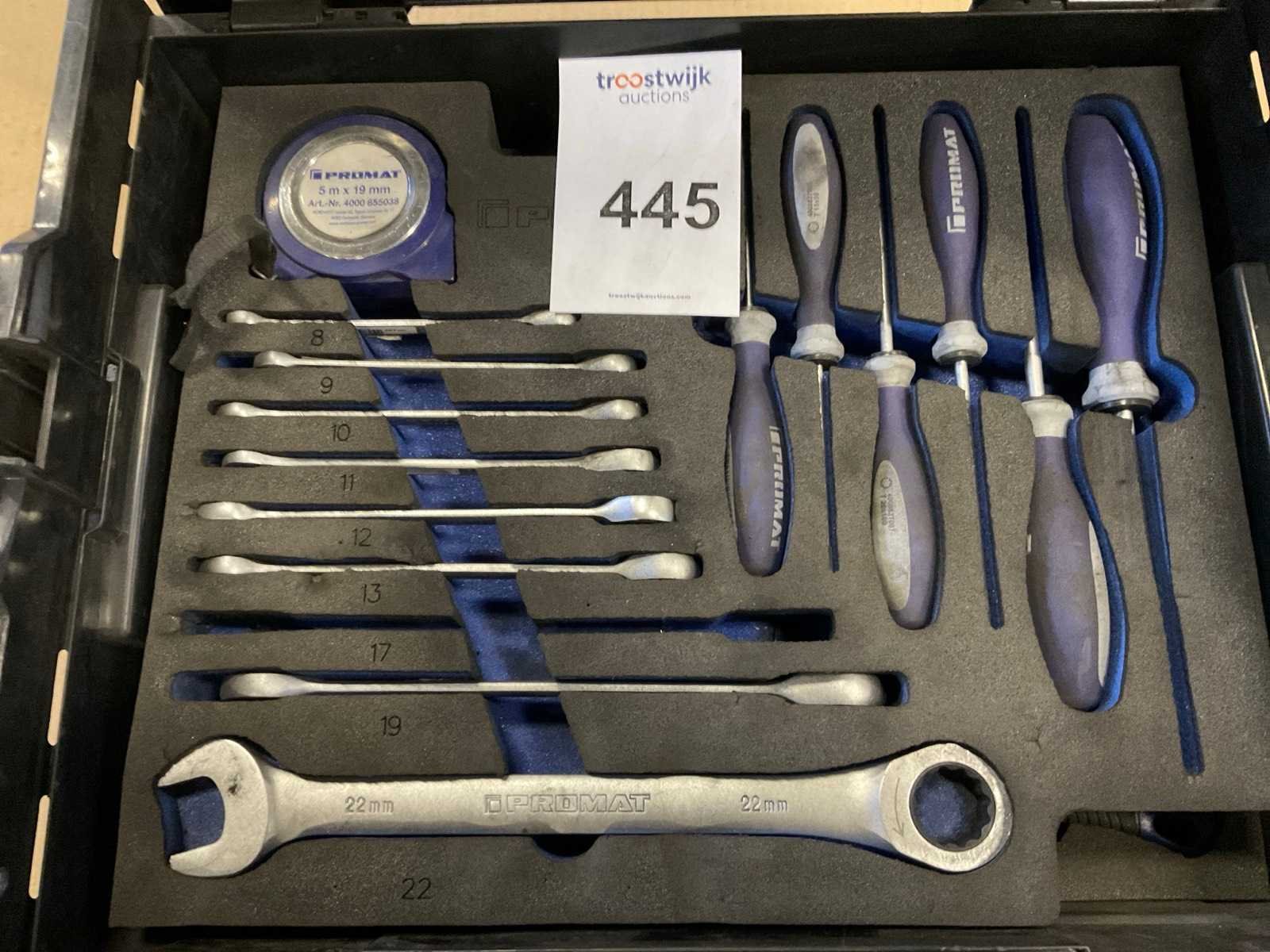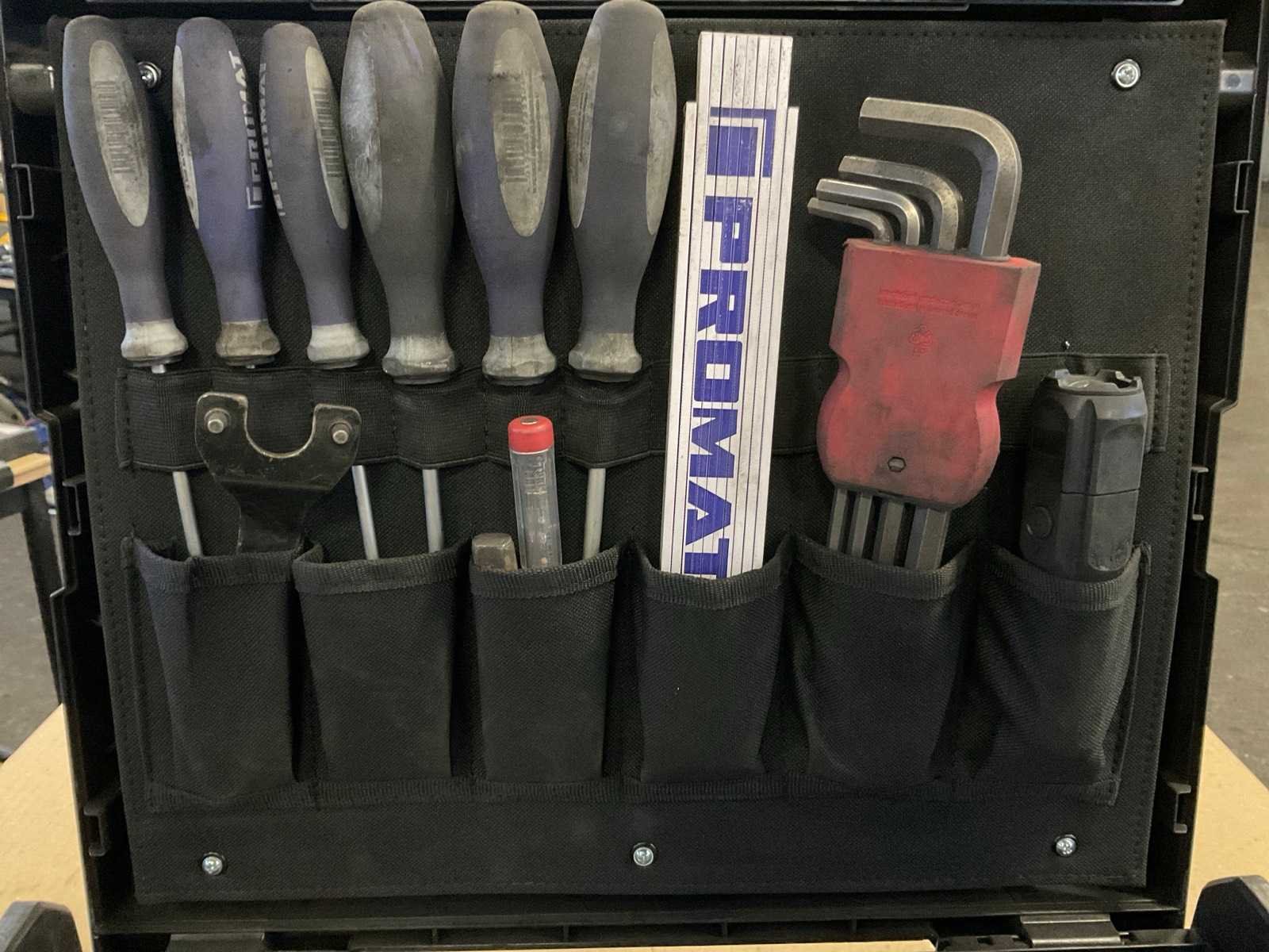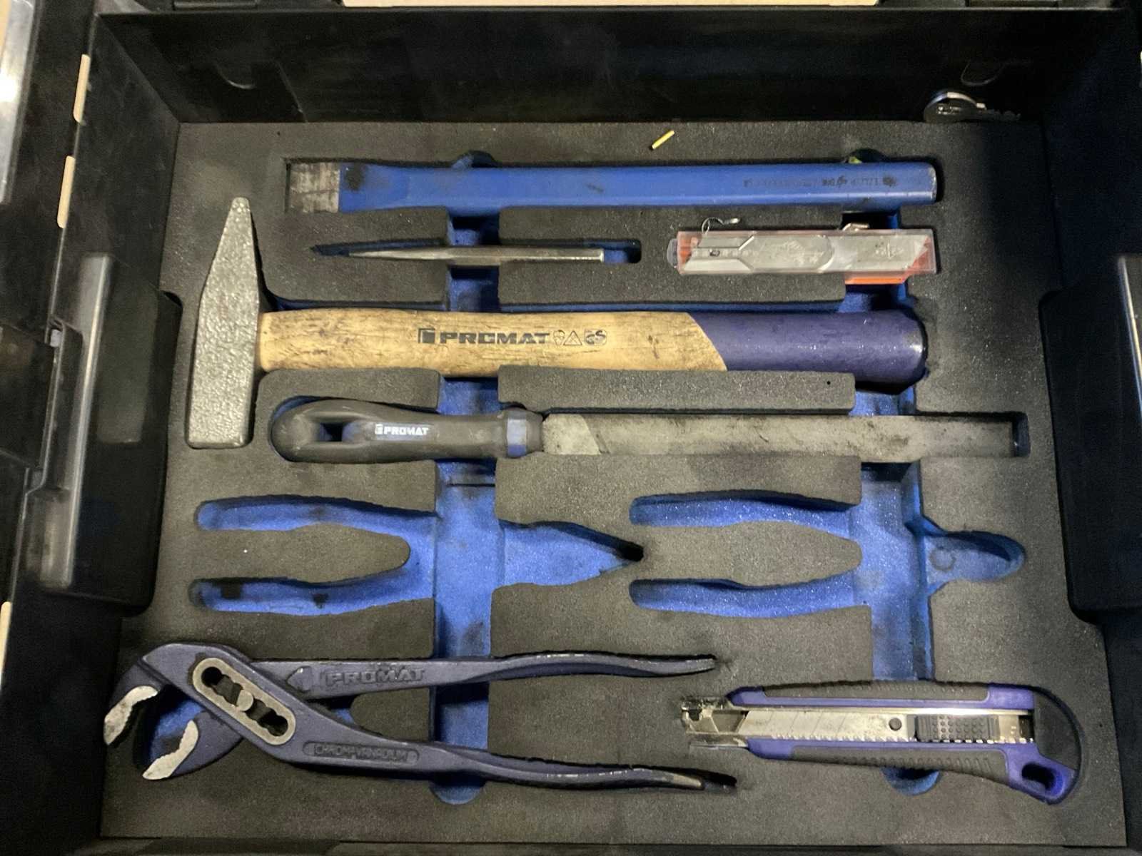Gereedschap set in Sortimo systainer, bestaande uit schroevendraaiers, ratelringsleutels, inbussleutels, hamer etc. Nee Merk: Promat
