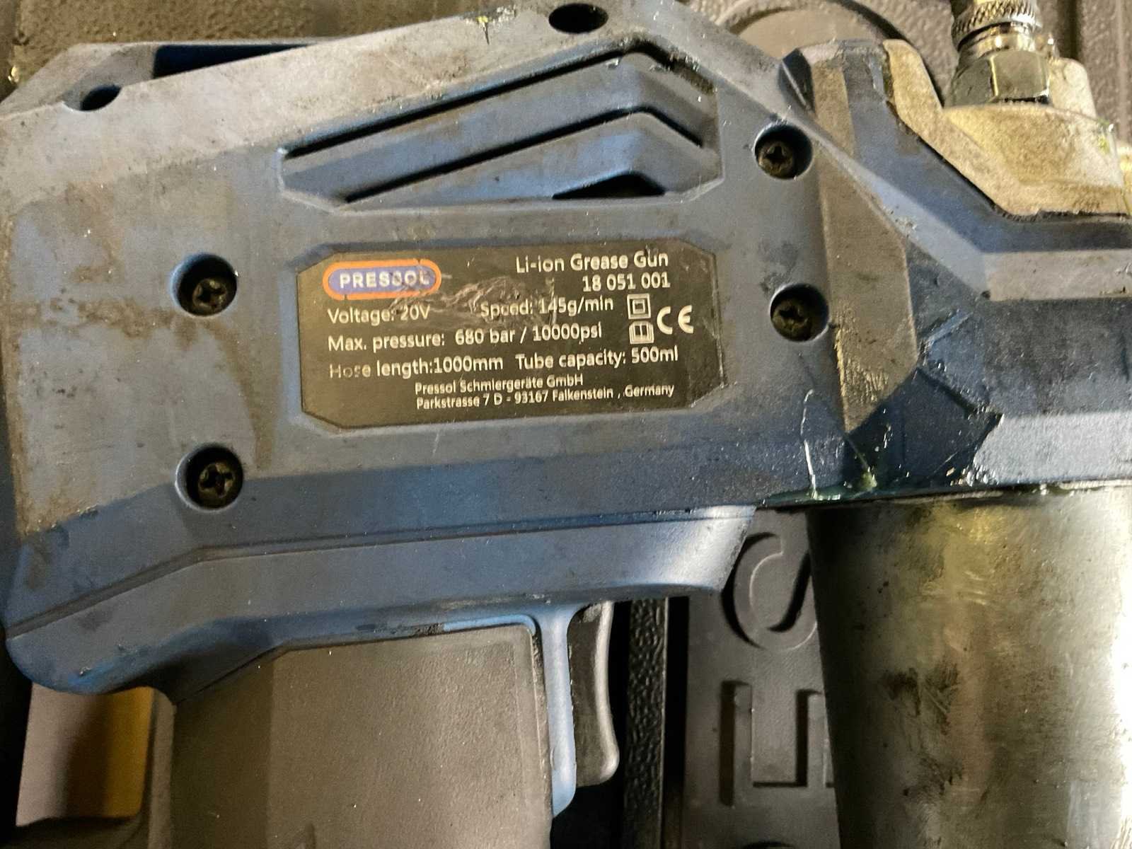 Zonder accu en lader. Nee Merk: Pressol Type: Grease gun 18 051 001 Met koffer: true Aansluiting: 20V