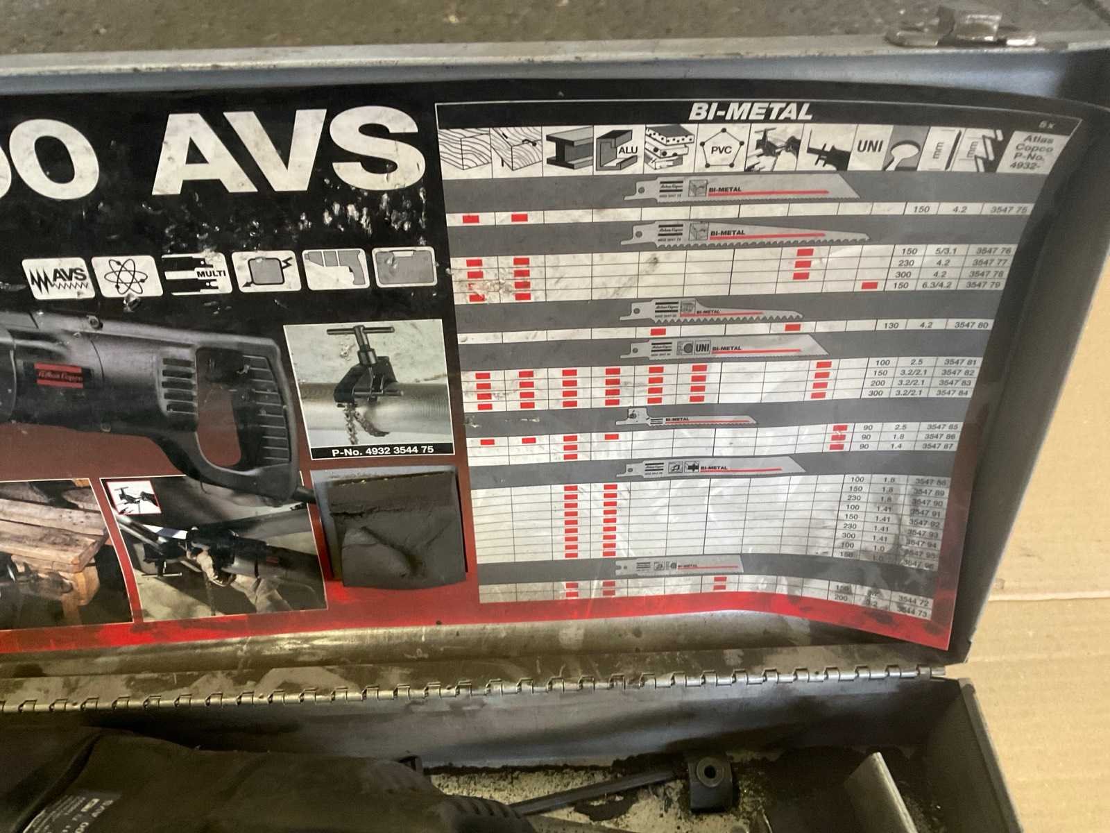 Atlas Copco reciprozaag in metalen koffer Nee Merk: Atlas Copco Model: SSE 1000 AVS Spanning: 230 Met koffer: true