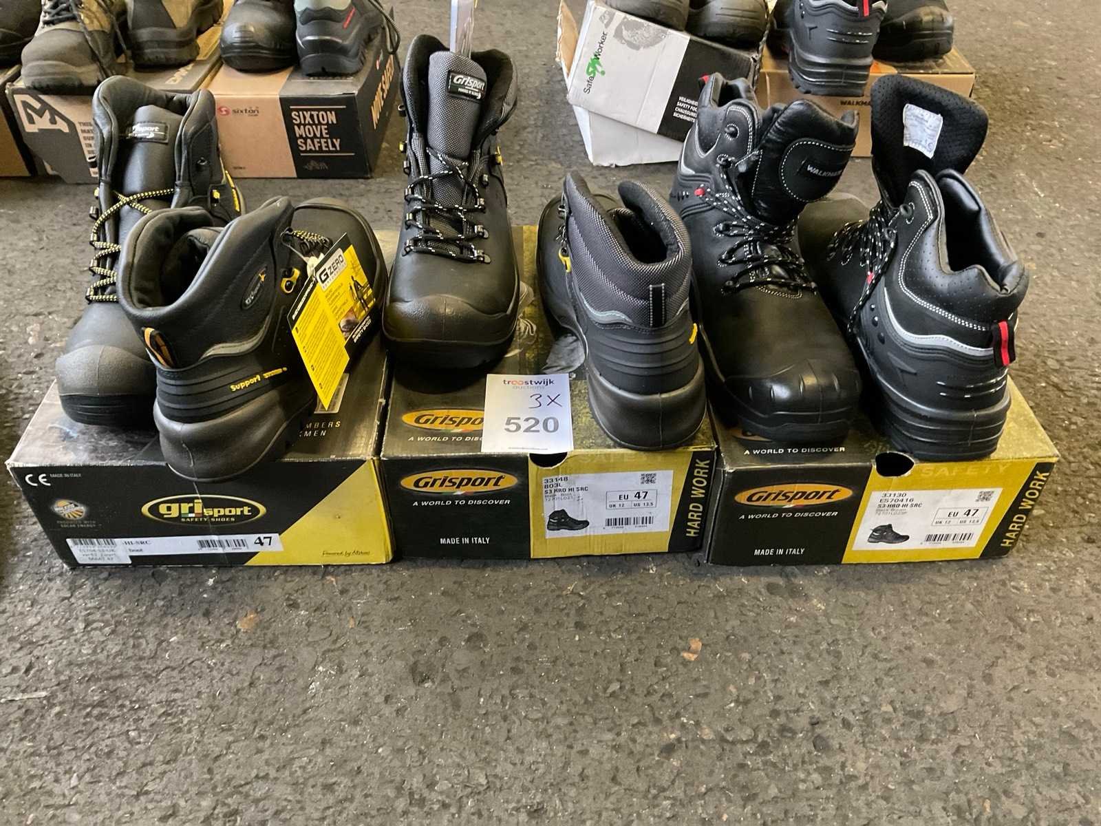 3paar S3 veiligheidsschoenen, hoog model, maat 47. Nee Merk: Grisport Model: Hoog model Kleur: Zwart