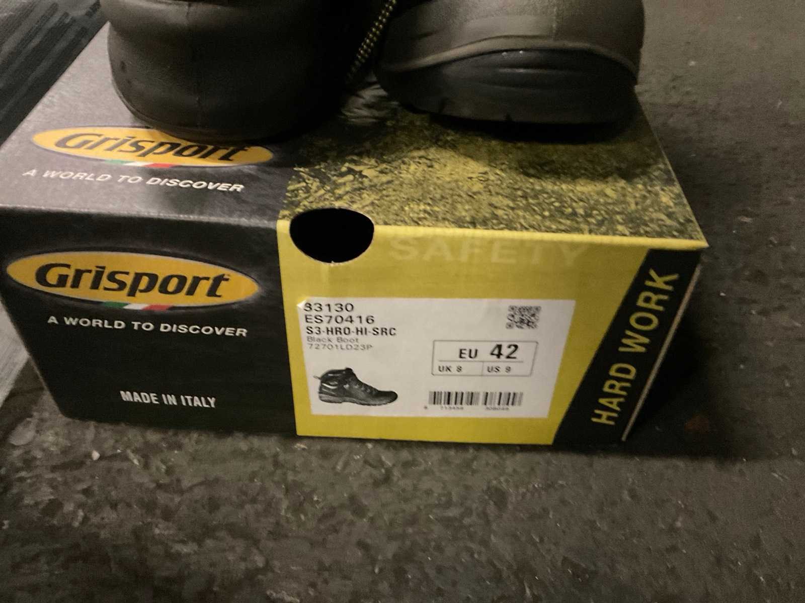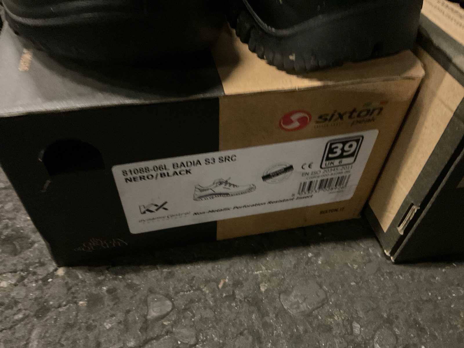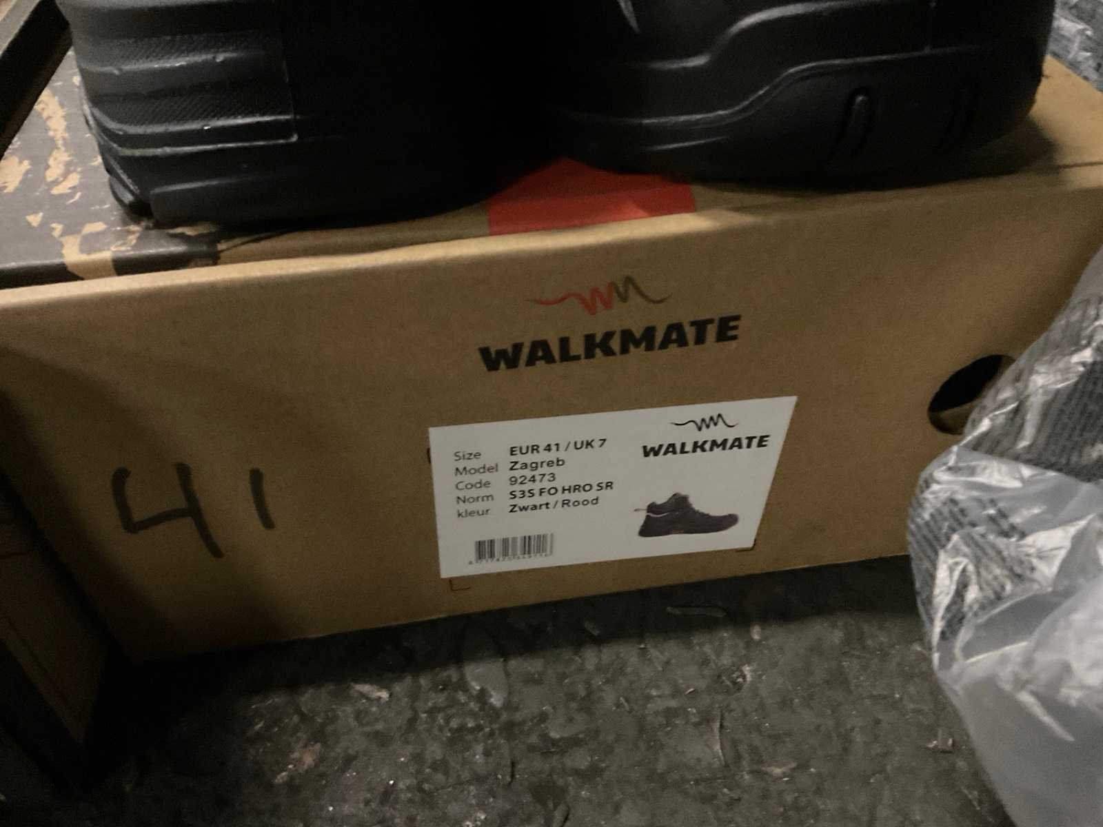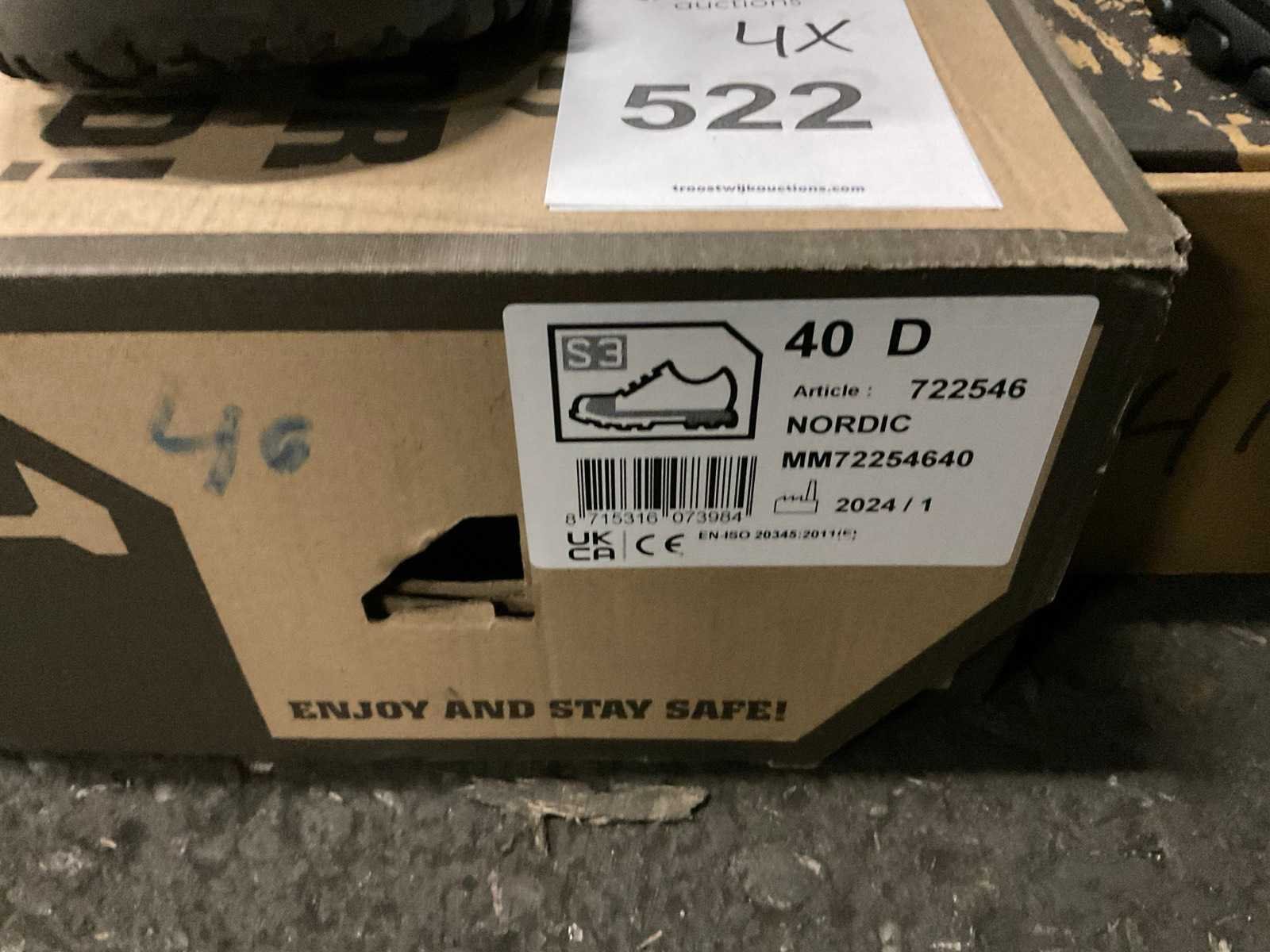 4 paar werkschoenen bestaande uit 2 par laag model maat 39 en 40, hoog model maat 41 en 42 en 1 paar Dunlop laarzen maat 42 met beschermende neuzen. Nee Merk: Emma, move safely, grisport Model: Laag en hoog