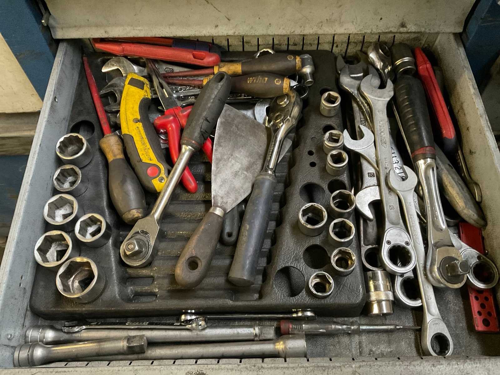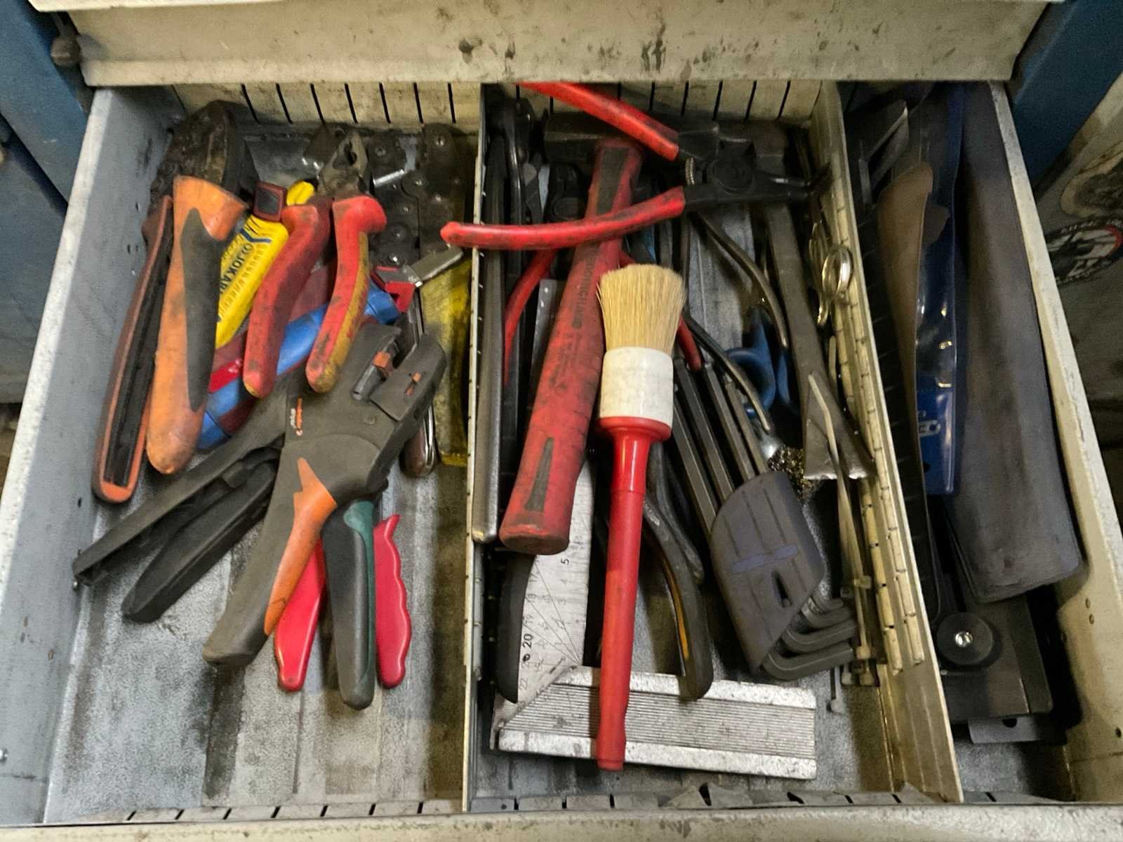 Inclusief diverse gereedschappen w.o. Tangen, sleutels, schroevendraaiers, dopset, hamers. Gereedschapskist is v.v. zelfbouw wagen en bankschroef. Nee Merk: Gedore Aantal laden: 7 Met inhoud: true Totale afmeting L: 1400mm Totale afmeting Breedte: 550mm Totale afmeting Hoogte: 1020mm