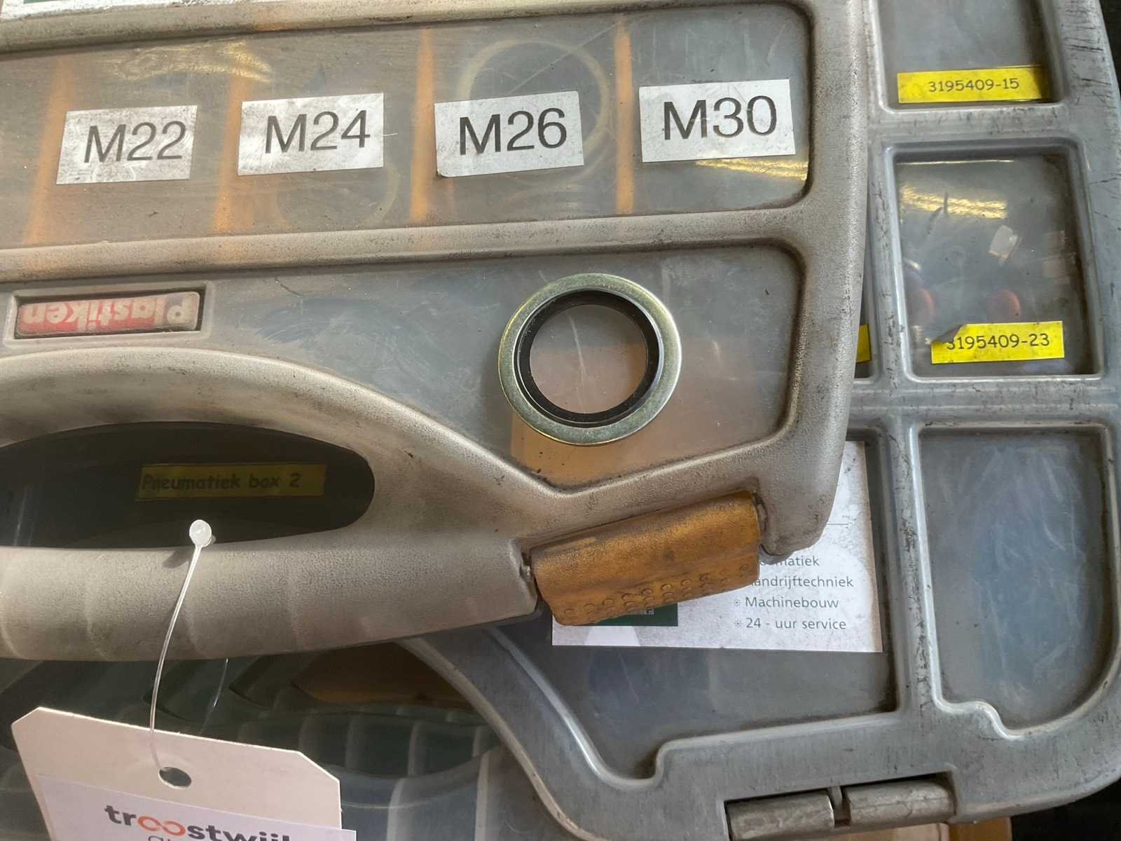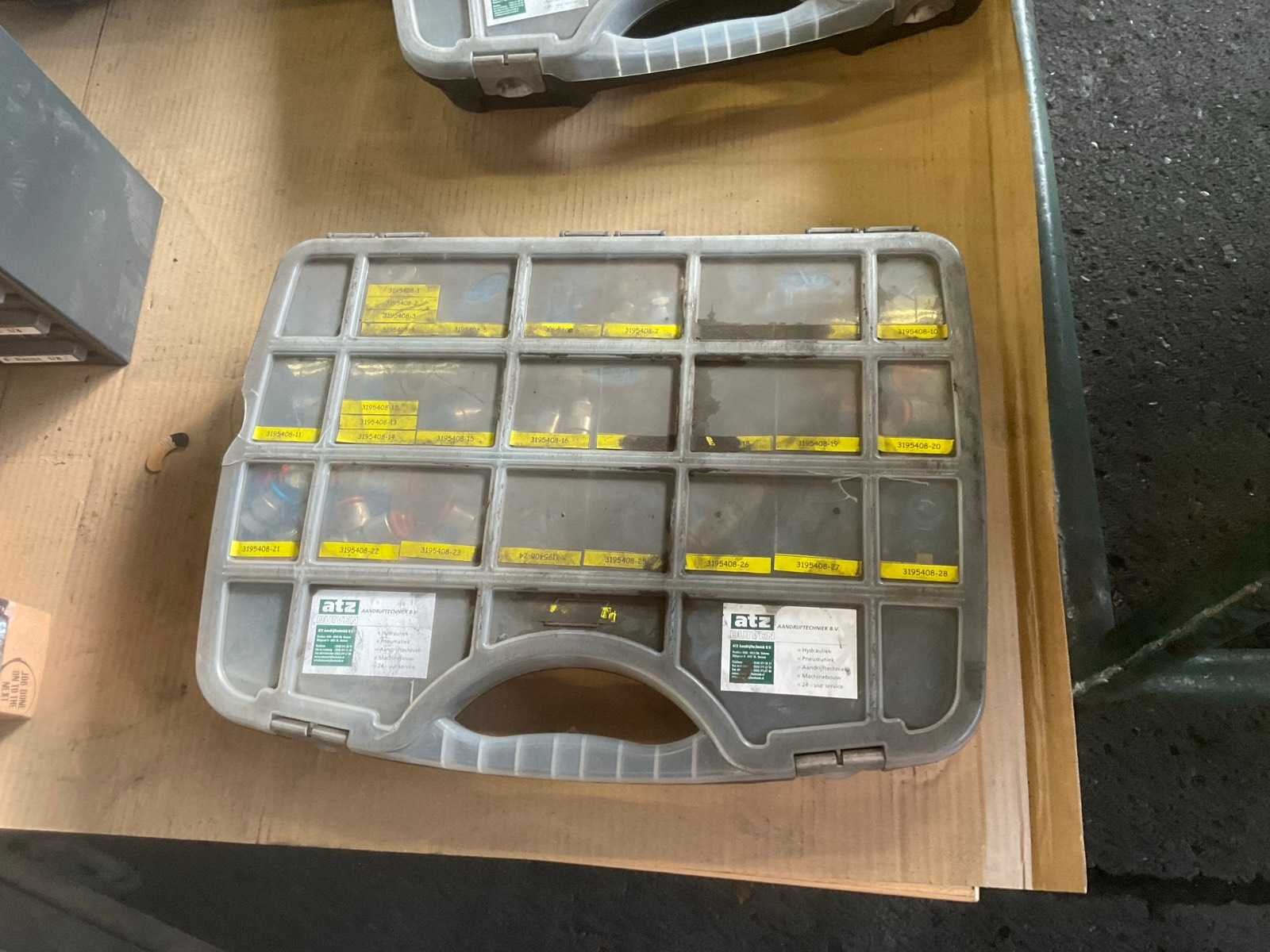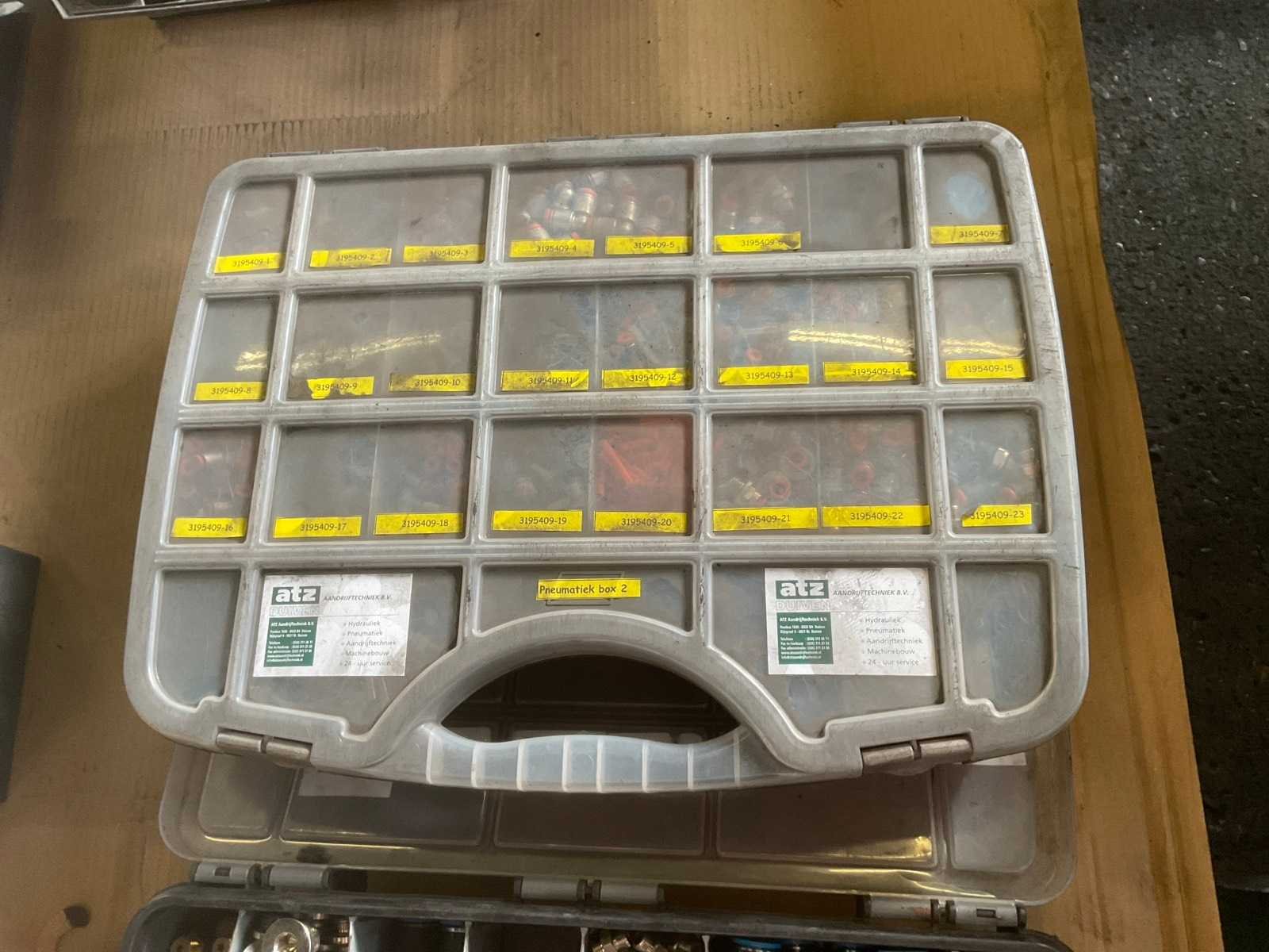 Partij van 4 opbergboxen met diverse afmetingen pneumatische koppelingen en 1 opbergbox afdichtringen Nee