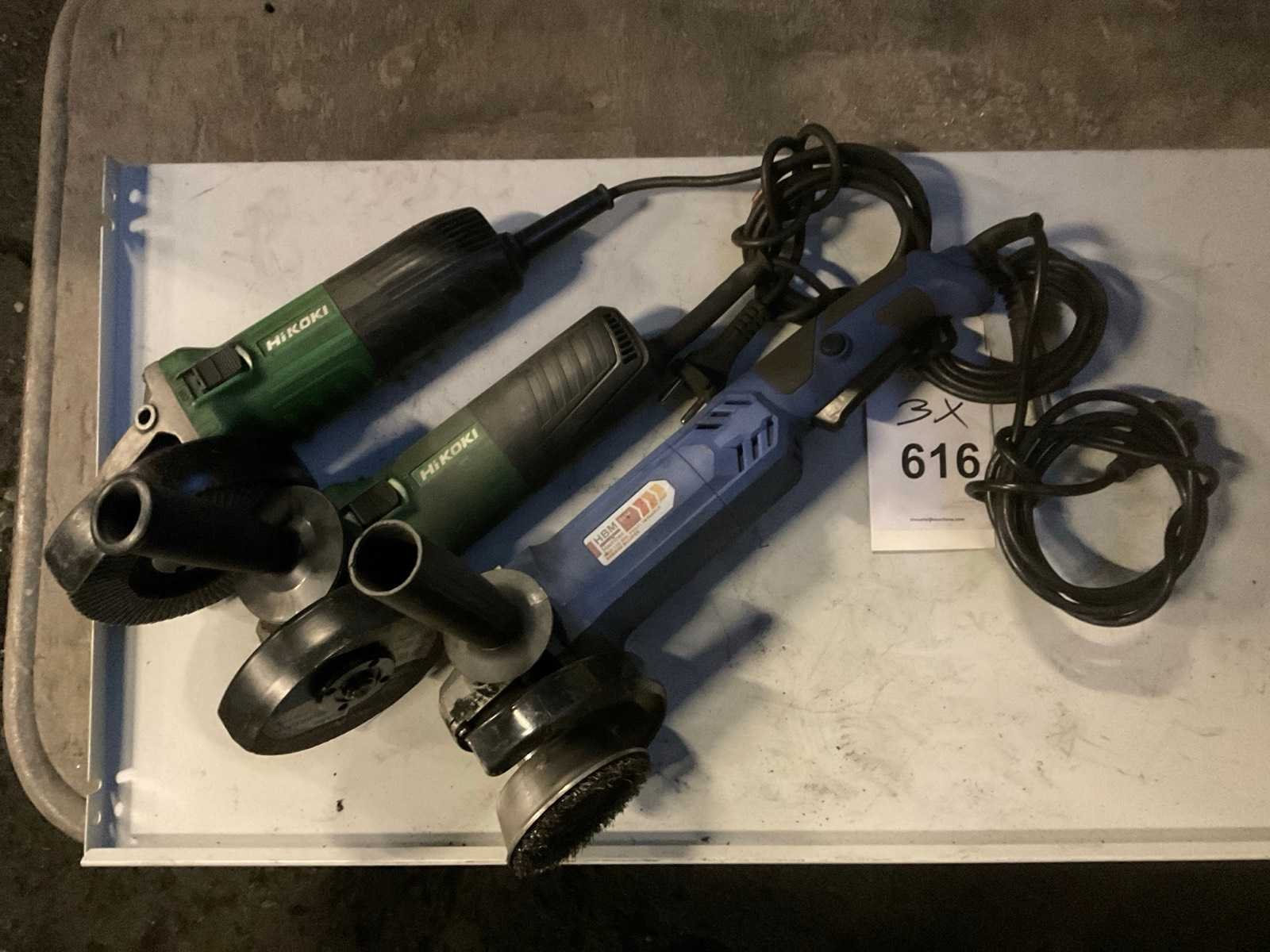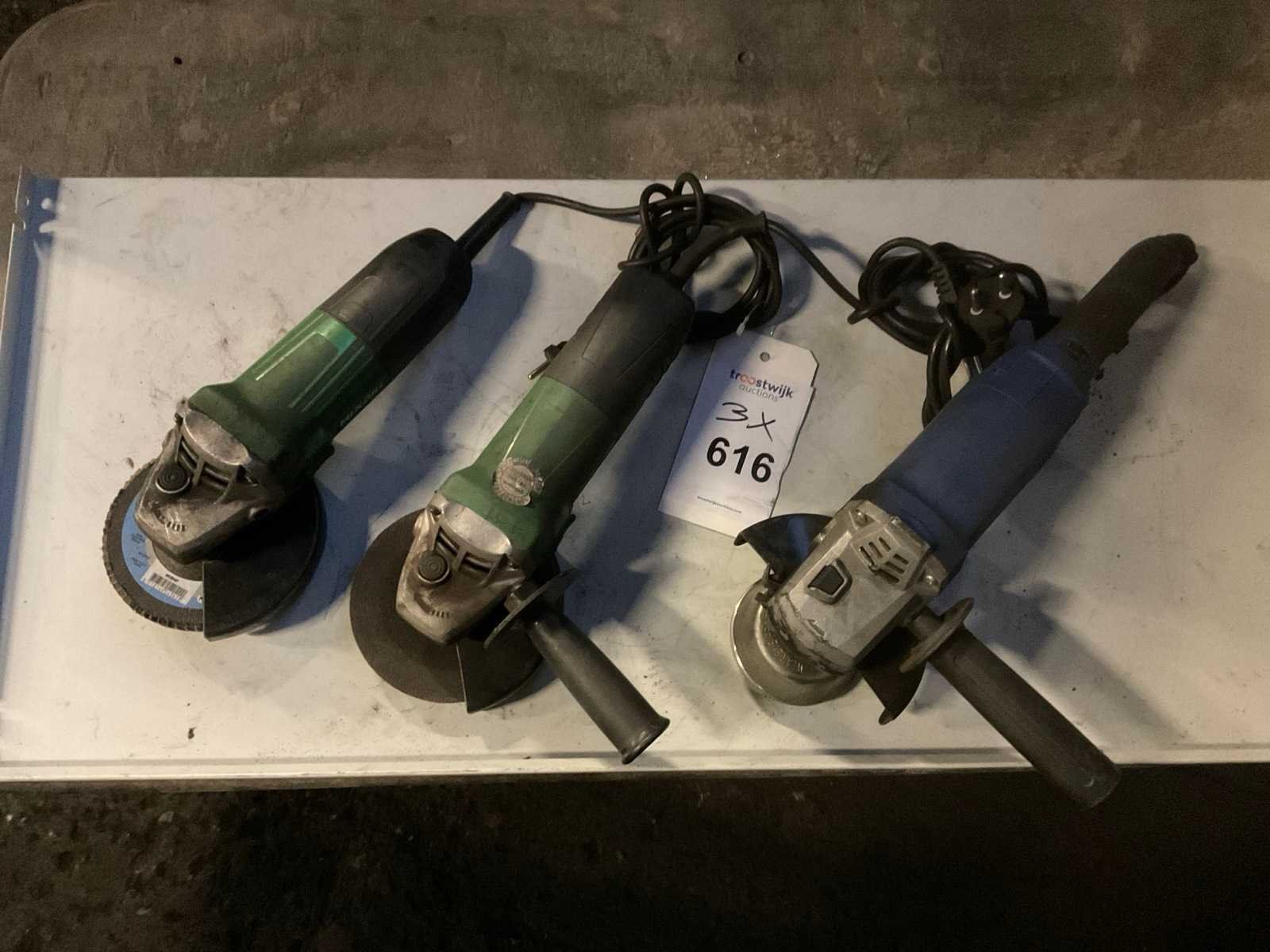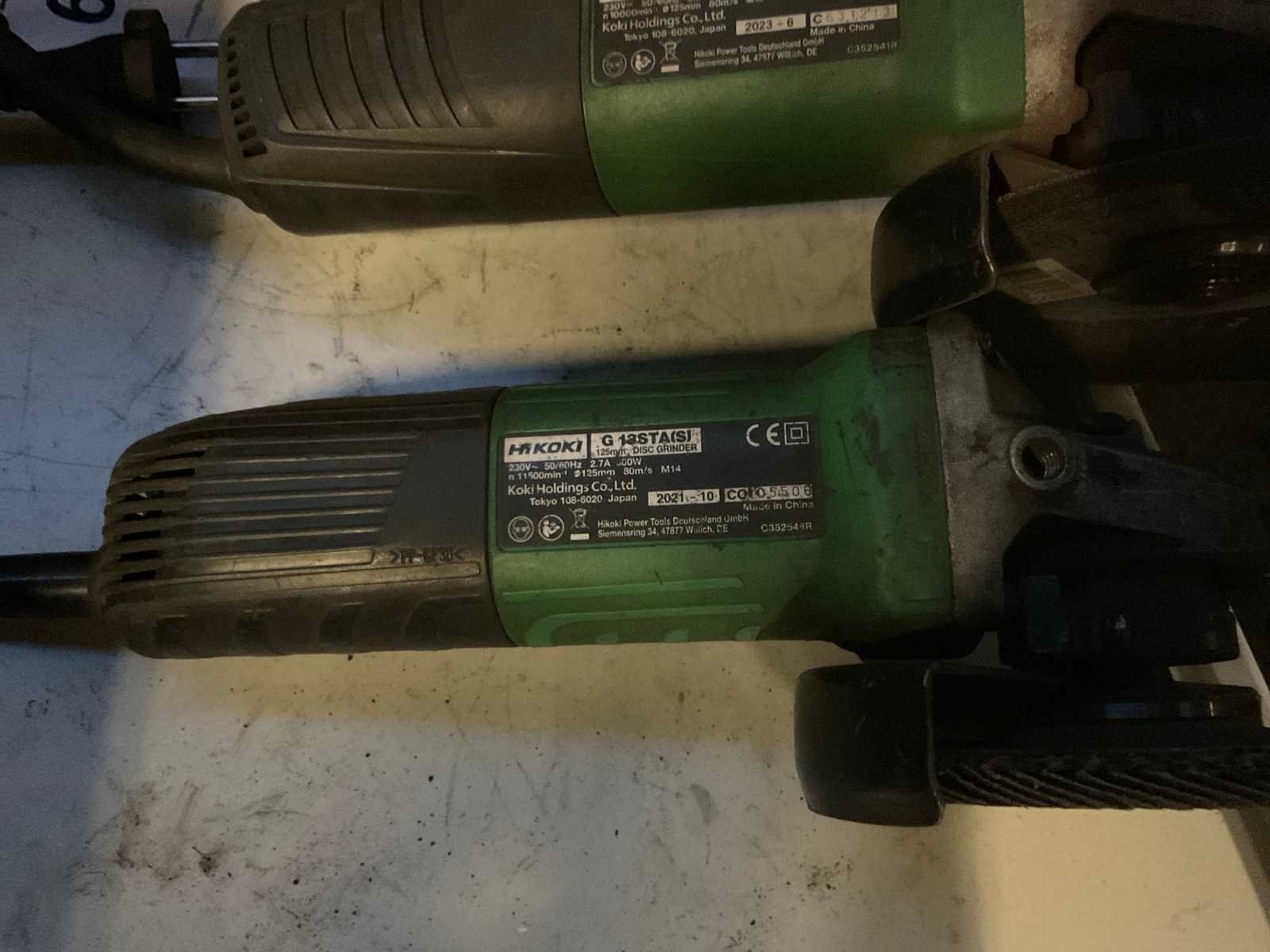2 stuks Hikoki haakse slijpschijven, type G 13STA(S) bouwjaar 2021 en type G13SR4, bouwjaar 2023 en 1 stuks HBM , type 8434 haakse slijpschijf, aansluiting 230v. Nee Schijfdiameter: 125mm