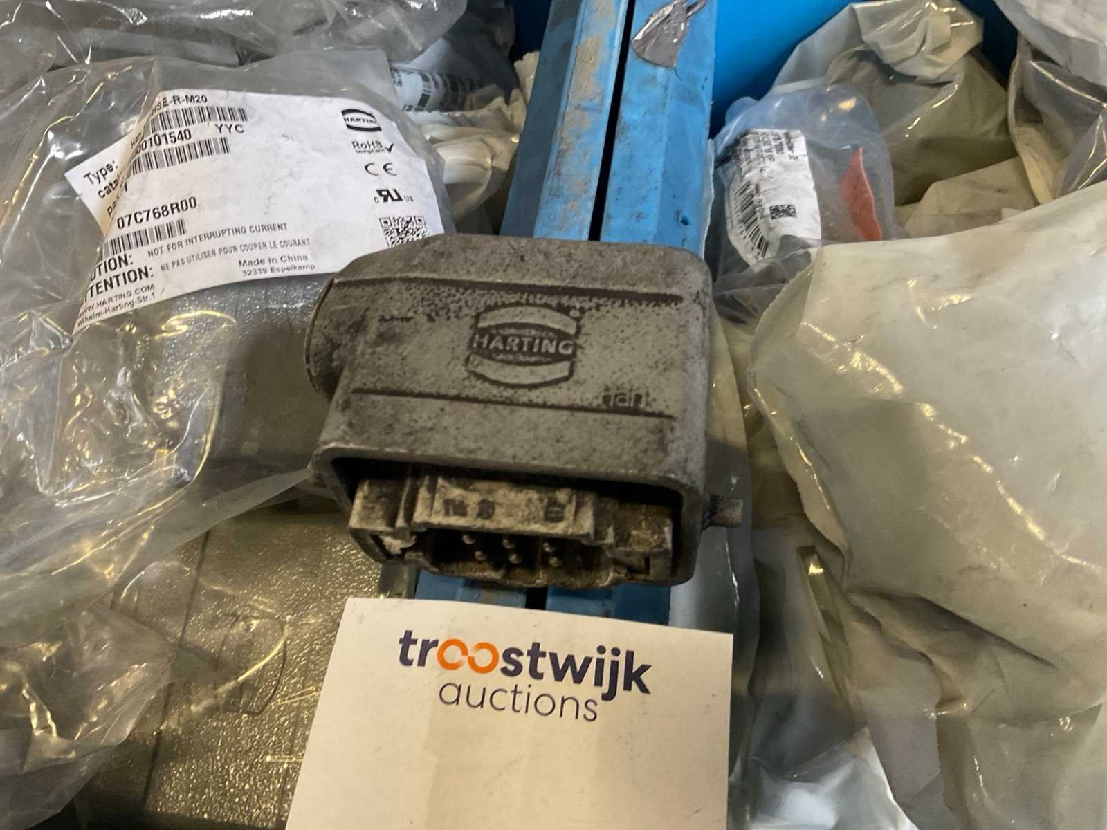 Inhoud van 3 kratten bestaande o.a. uit Harting industriële connectoren Nee