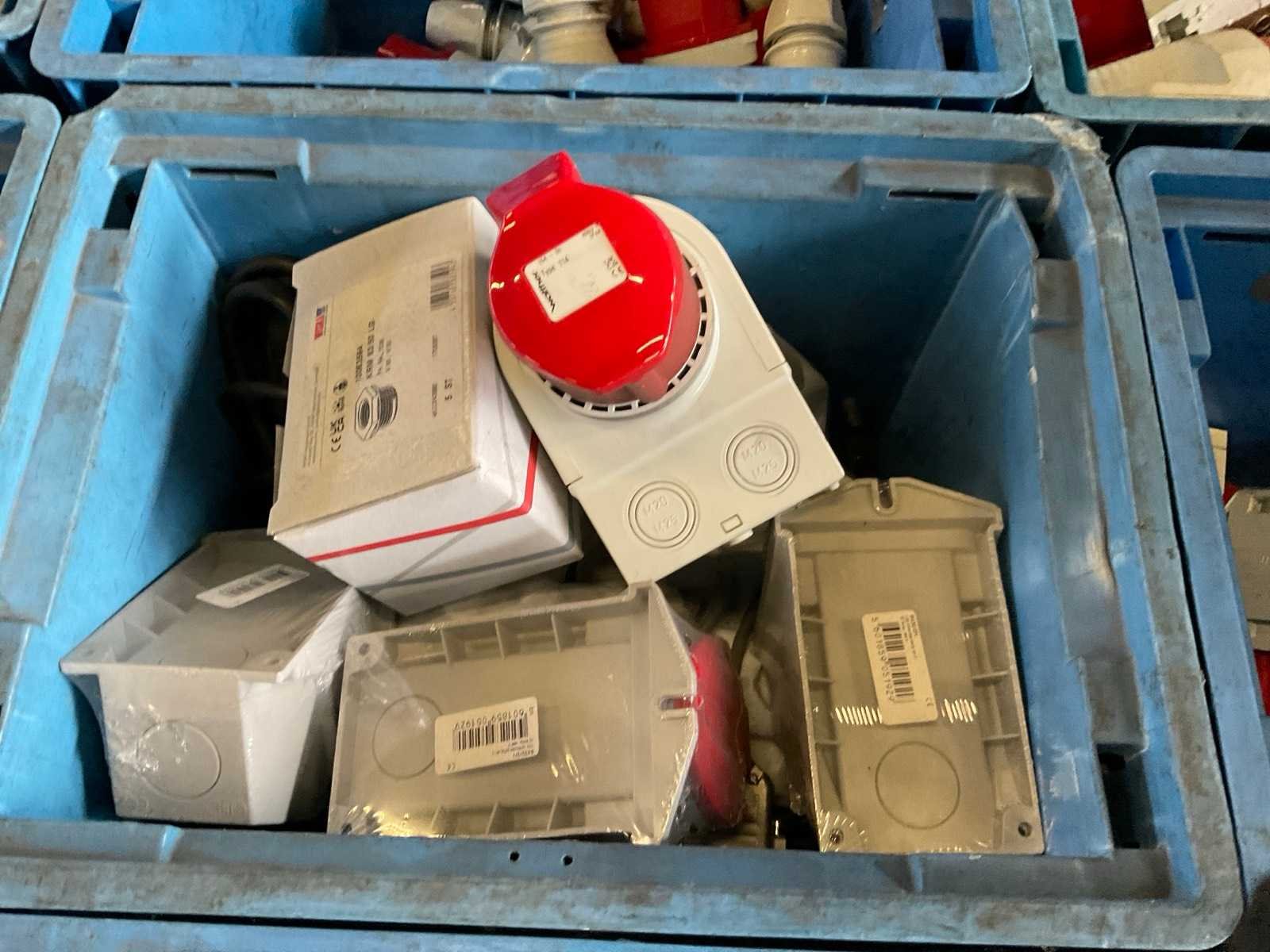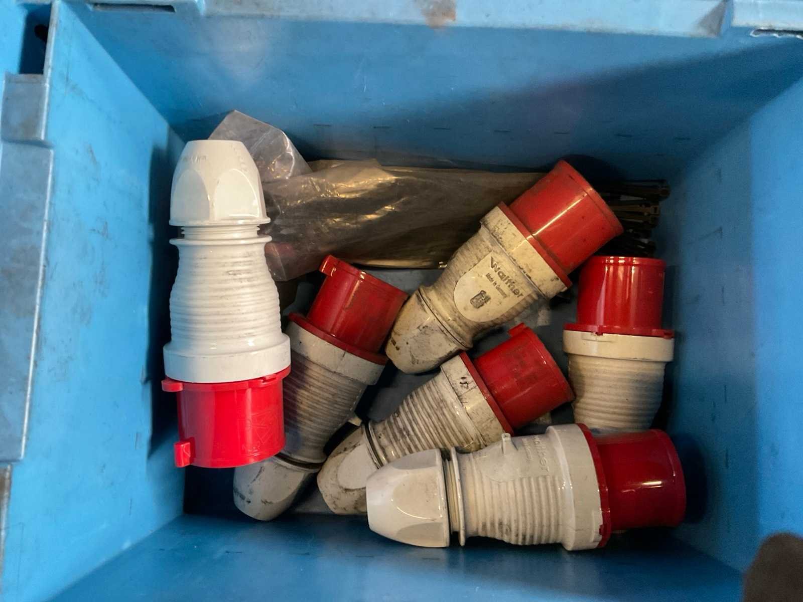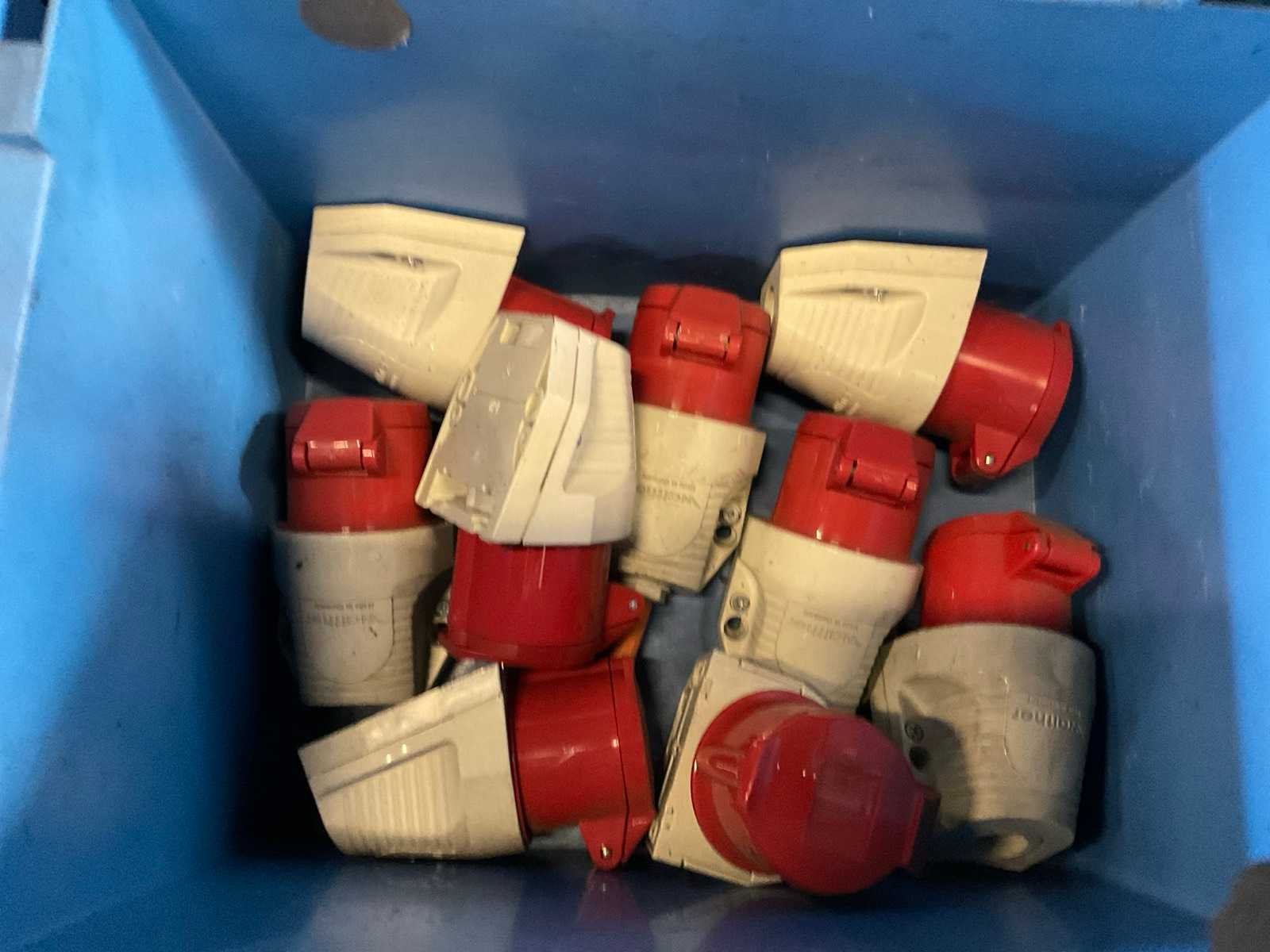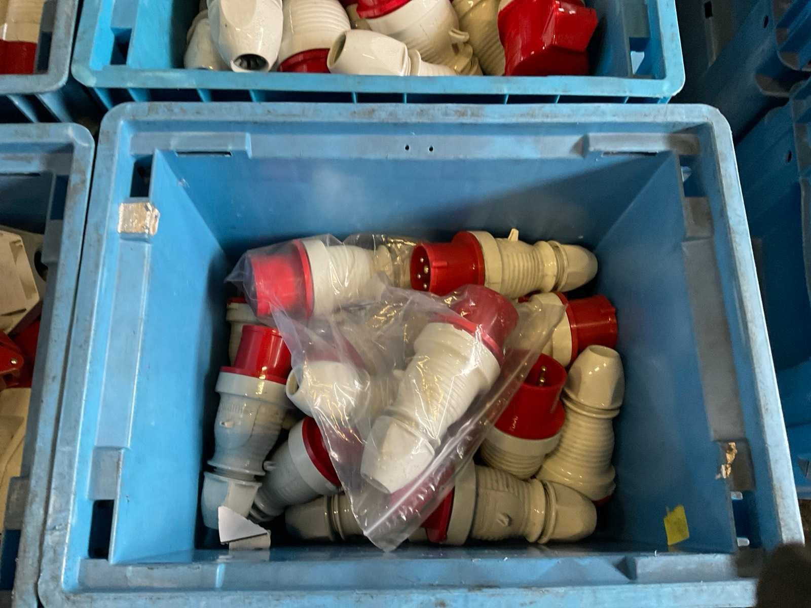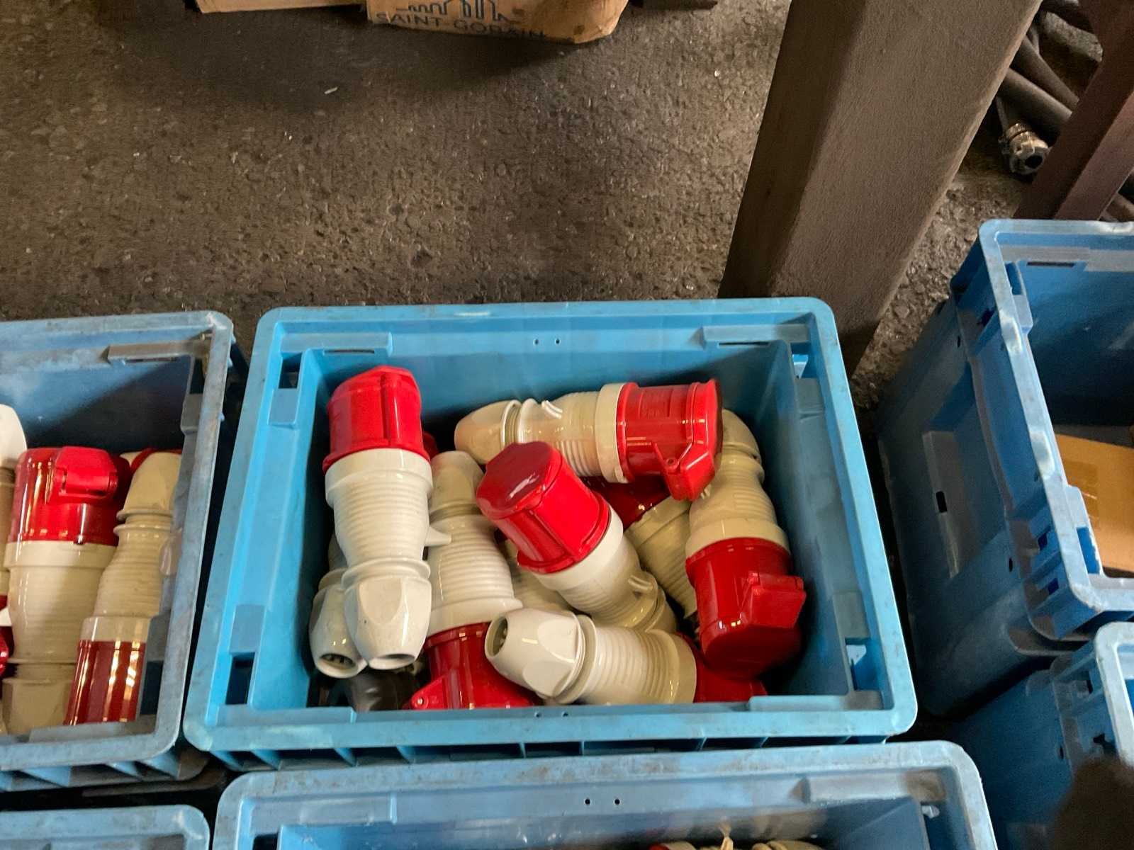 Inhoud van 18 kratten bestaande uit krachtstroomstekkers en onderdelen. Nee Merk: Walther