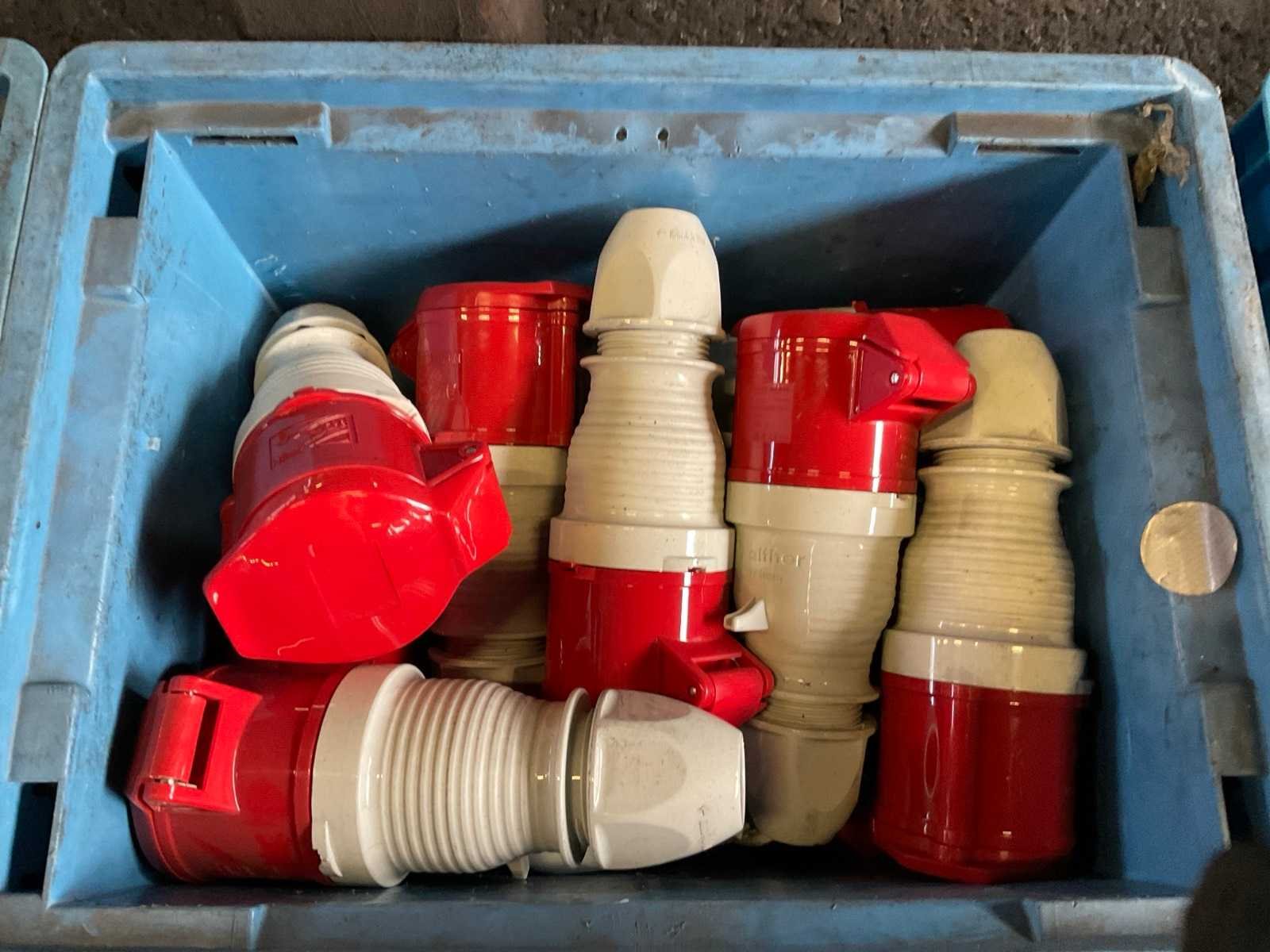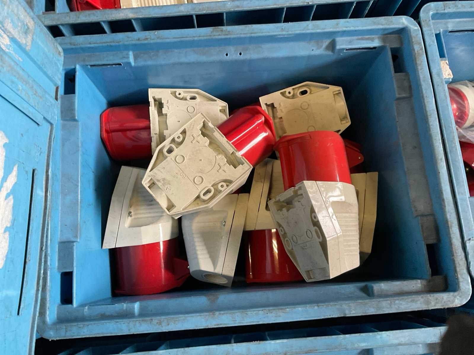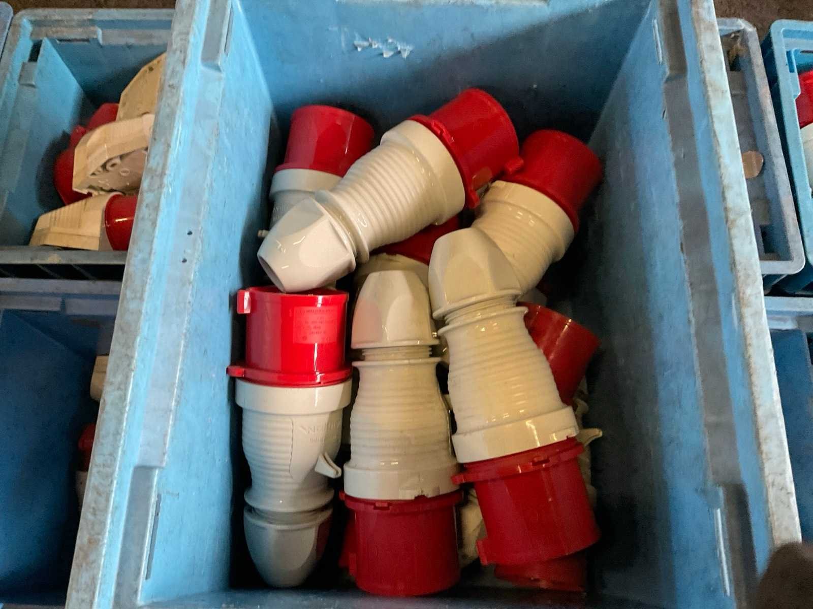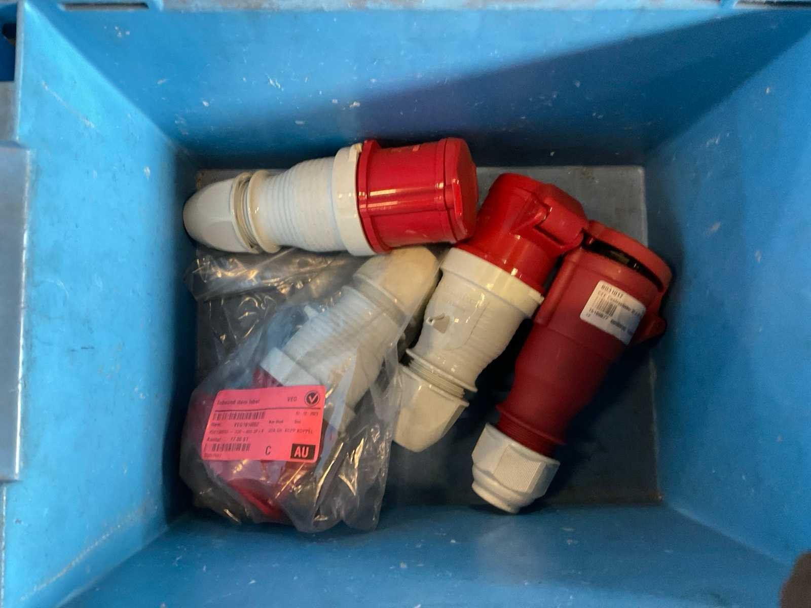 Inhoud van 18 kratten bestaande uit krachtstroomstekkers en onderdelen. Nee Merk: Walther