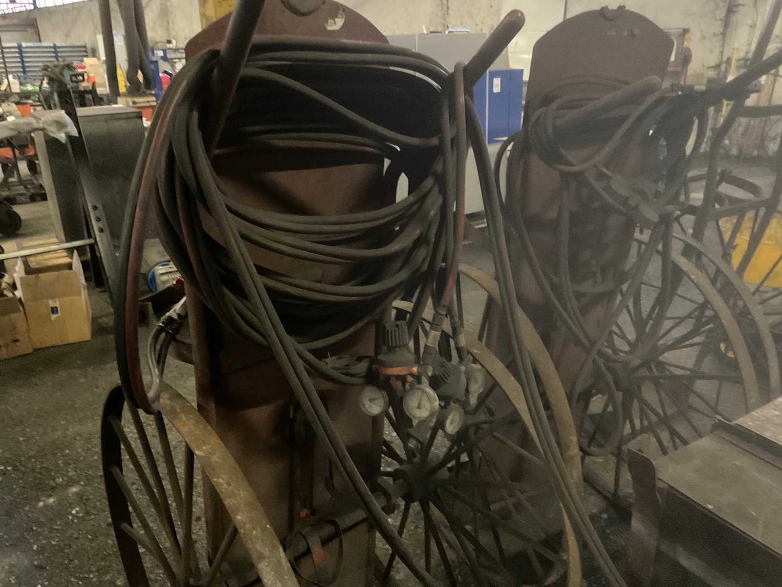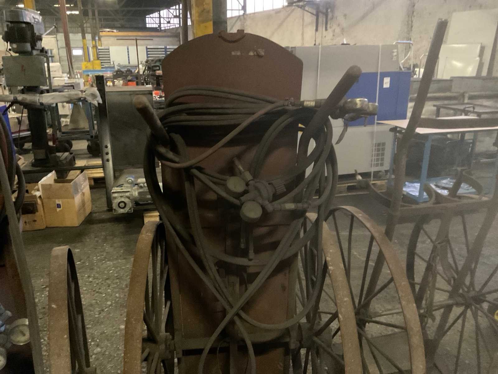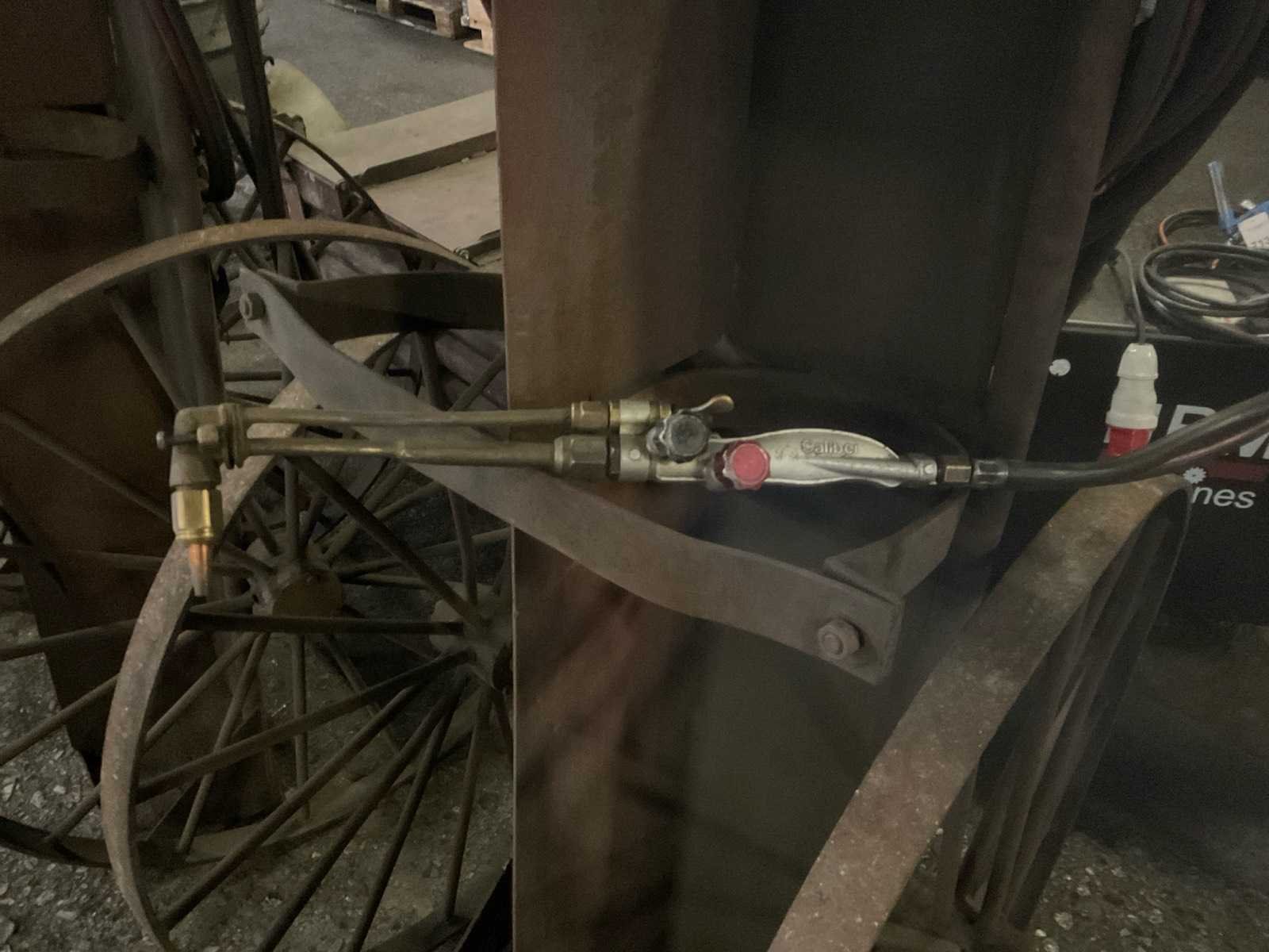 3 stuks metalen karren, bestemd voor snijbranders, voorzien van gasfles houders, 1 kar is compleet met Caliber snijbrander Nee