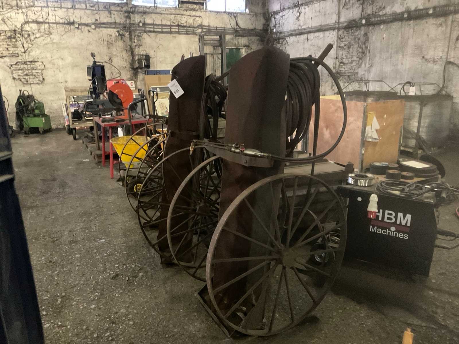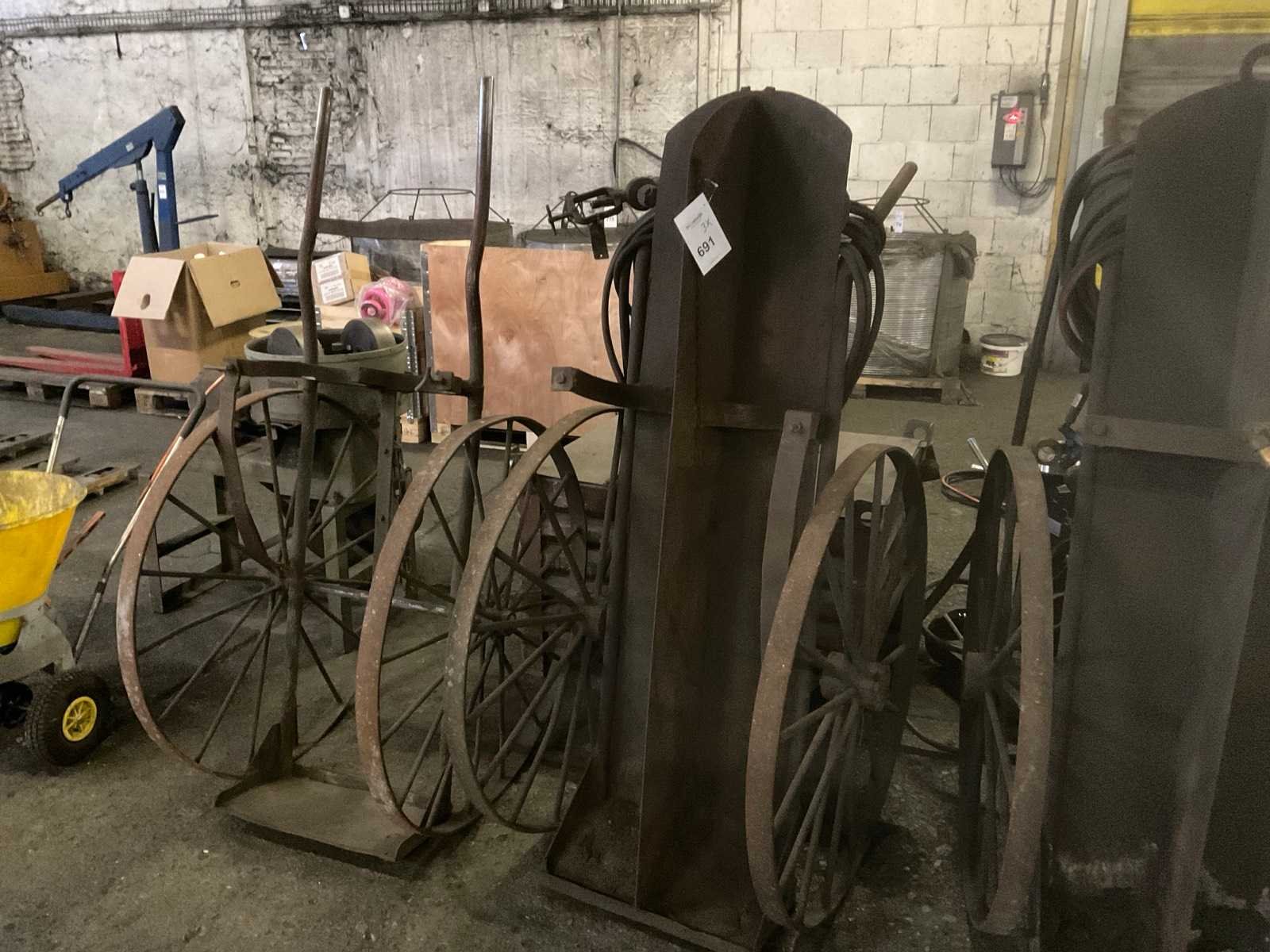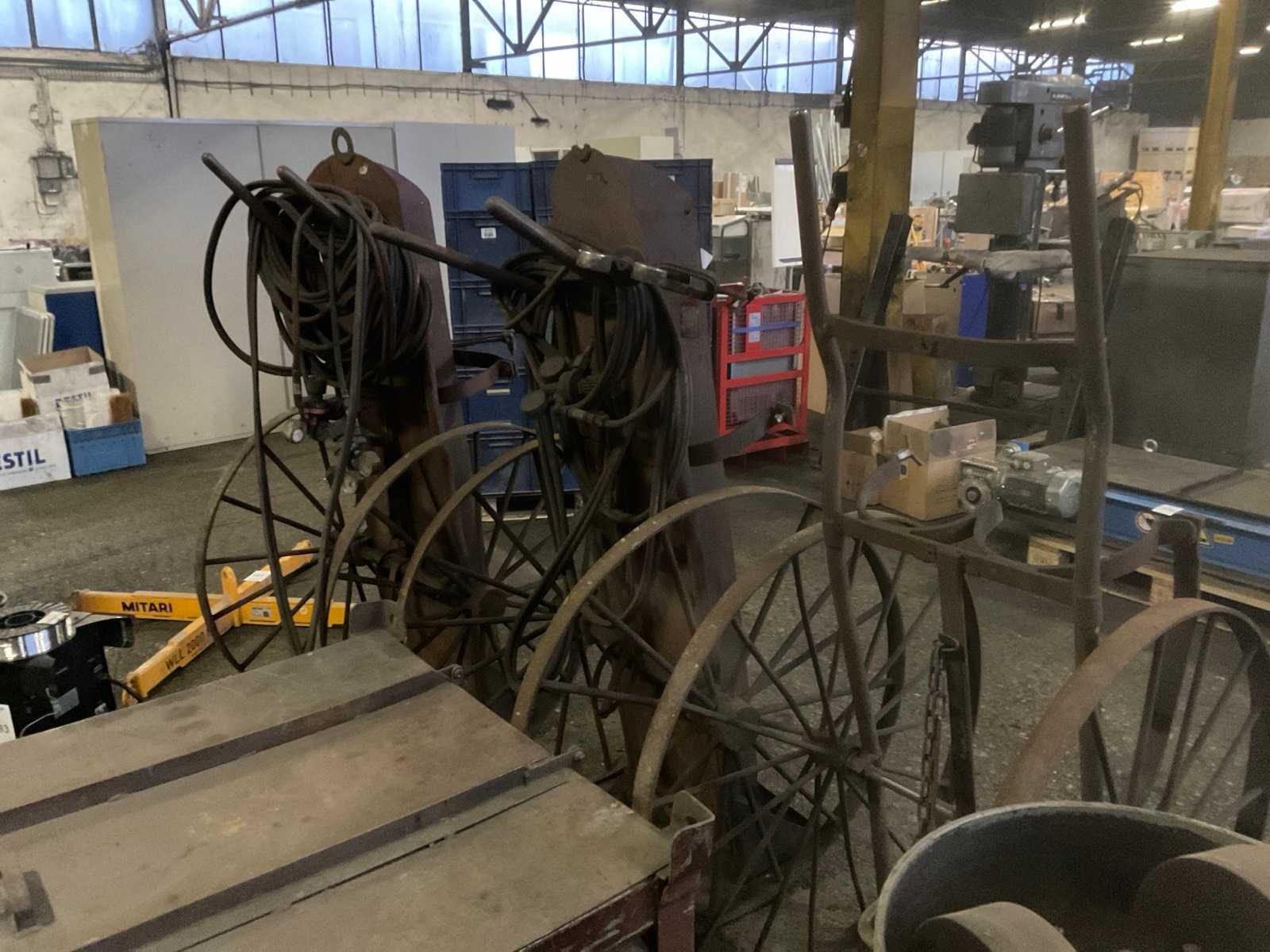 3 stuks metalen karren, bestemd voor snijbranders, voorzien van gasfles houders, 1 kar is compleet met Caliber snijbrander Nee