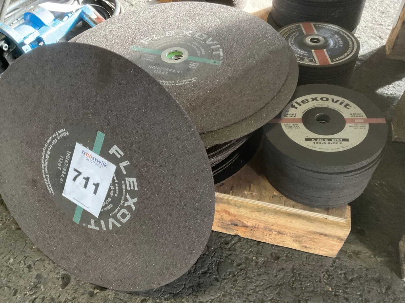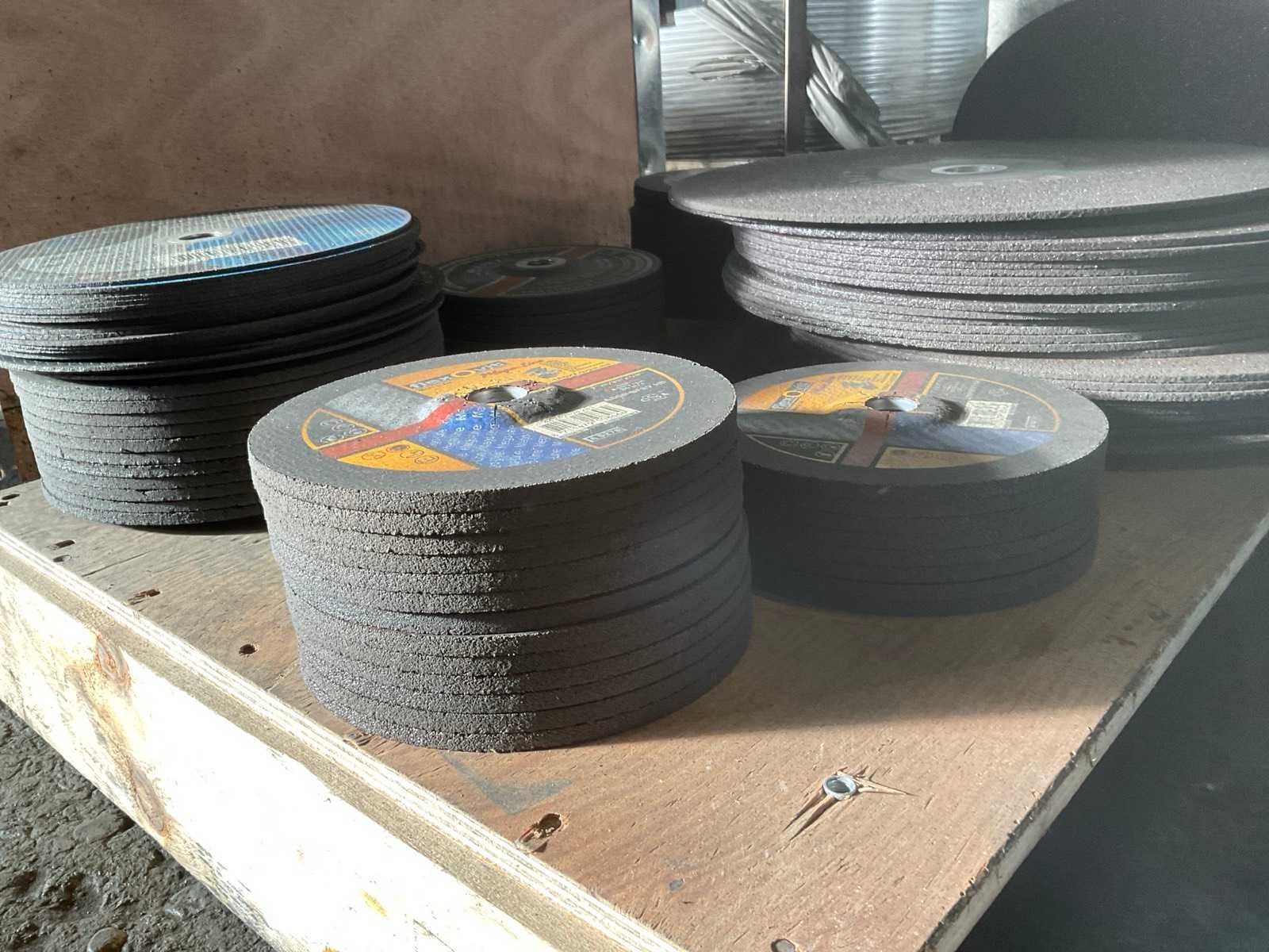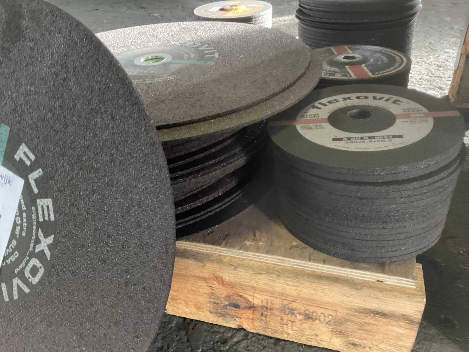 Pallet met diverse afmetingen slijpschijven, o.a. 180, 230 en 406 mm voor metaalbewerking, pallet inbegrepen Nee