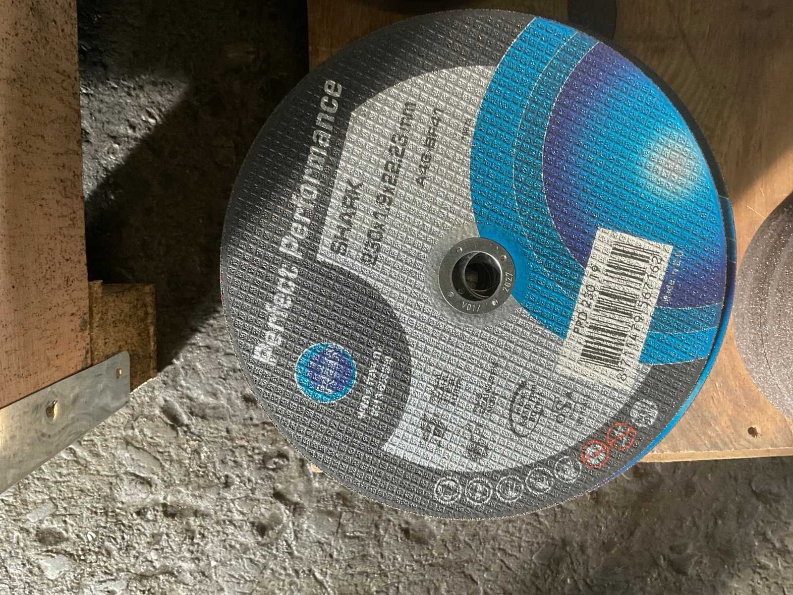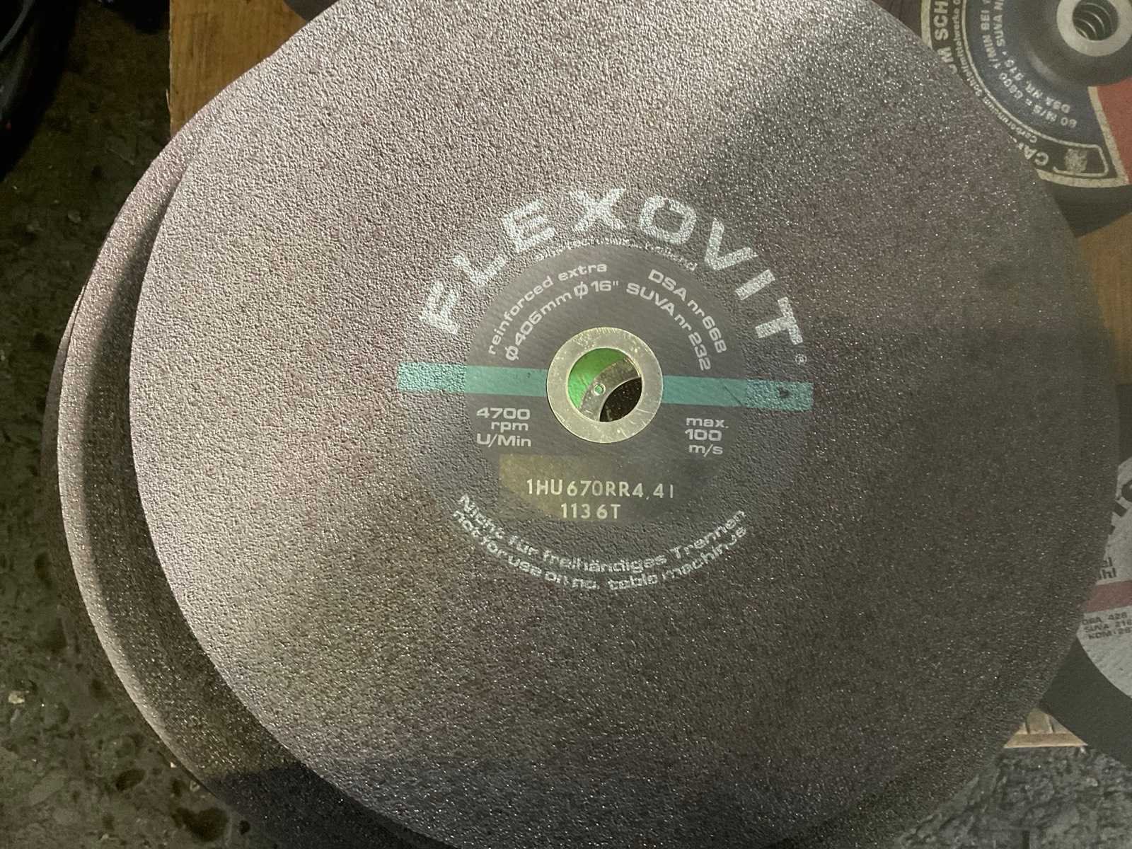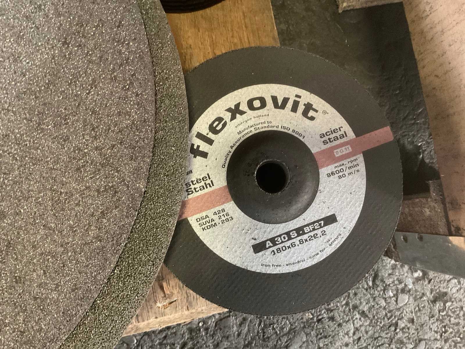 Pallet met diverse afmetingen slijpschijven, o.a. 180, 230 en 406 mm voor metaalbewerking, pallet inbegrepen Nee