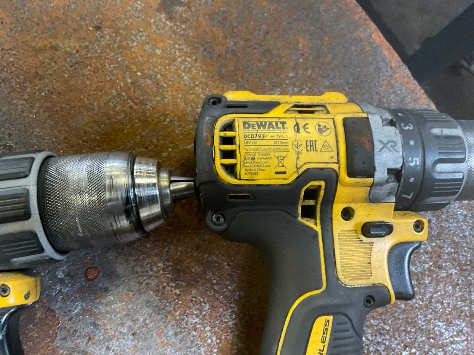 2 stuks DeWalt accu schroefmachines met accu’s en 1 stuks acculader met accu Nee Merk: DeWalt Type: DCD791 Spanning: 18V Aantal accu's: 3 Accu lader: true Schroefmachine: true