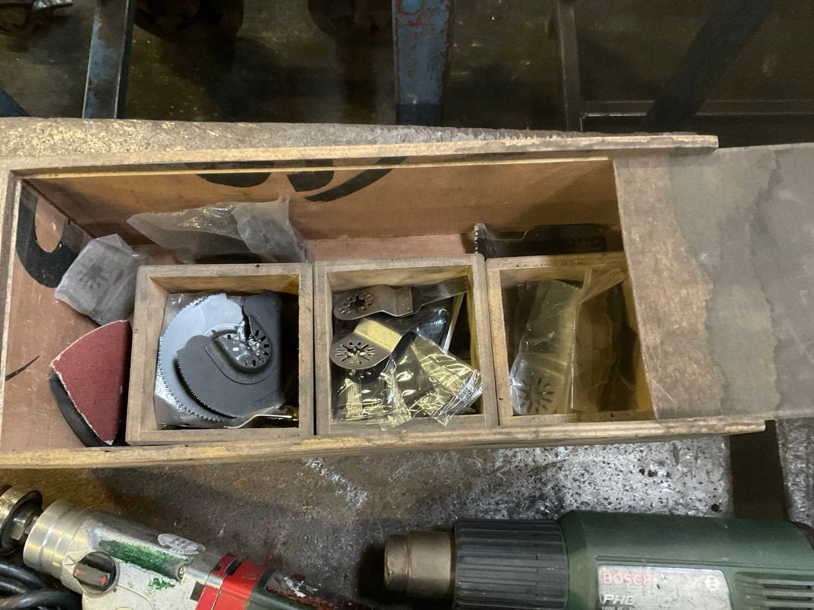 Bevat 1 stuks HBM multitool houten opbergbox inbegrepen, 1 stuks Makita schuurmachine, 1 stuks Metabo boormachine en 1 stuks Bosch heteluchtpistool Nee