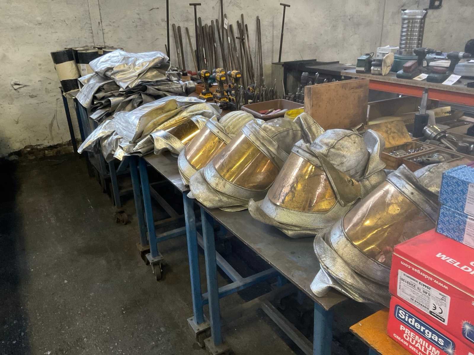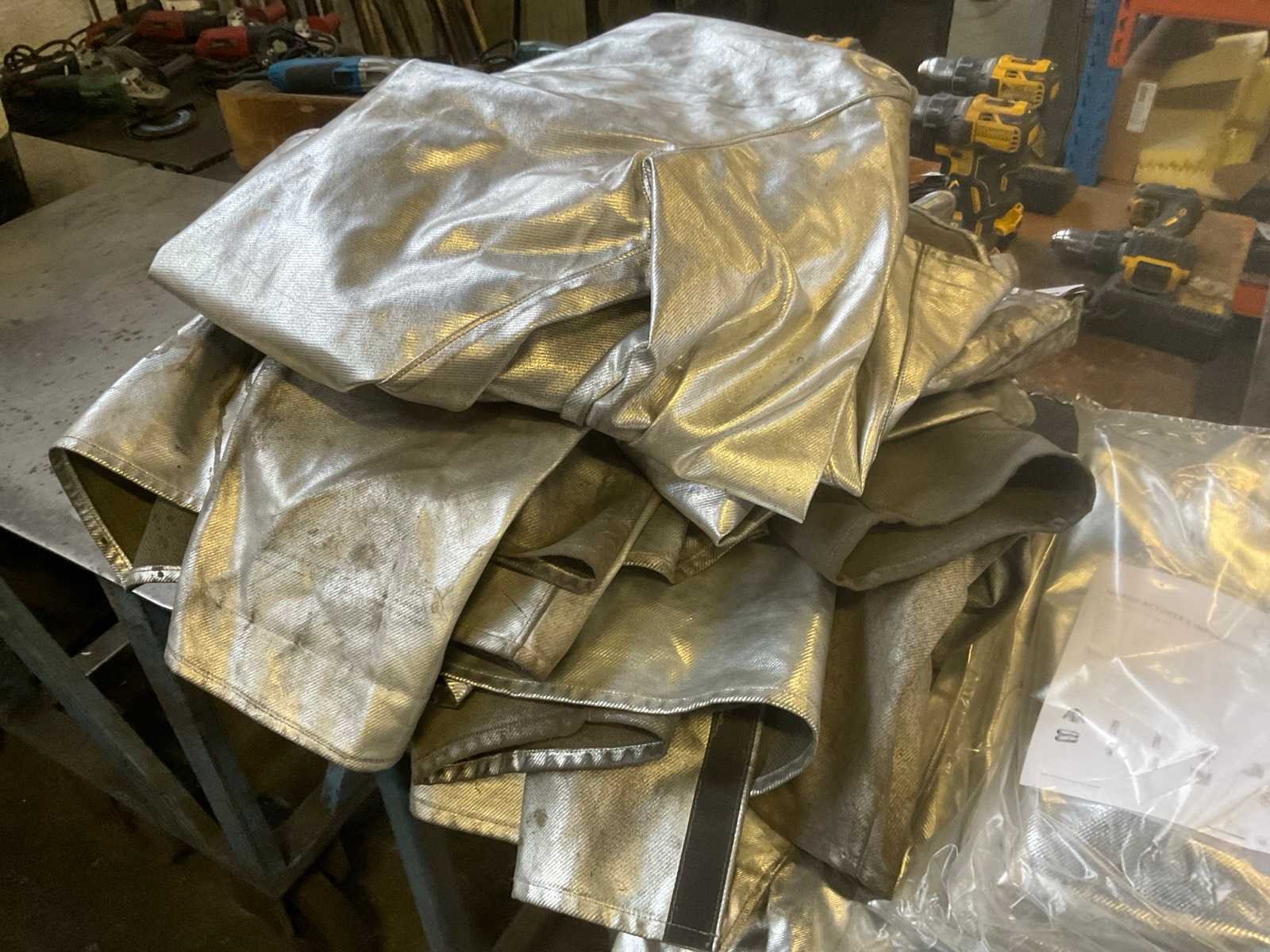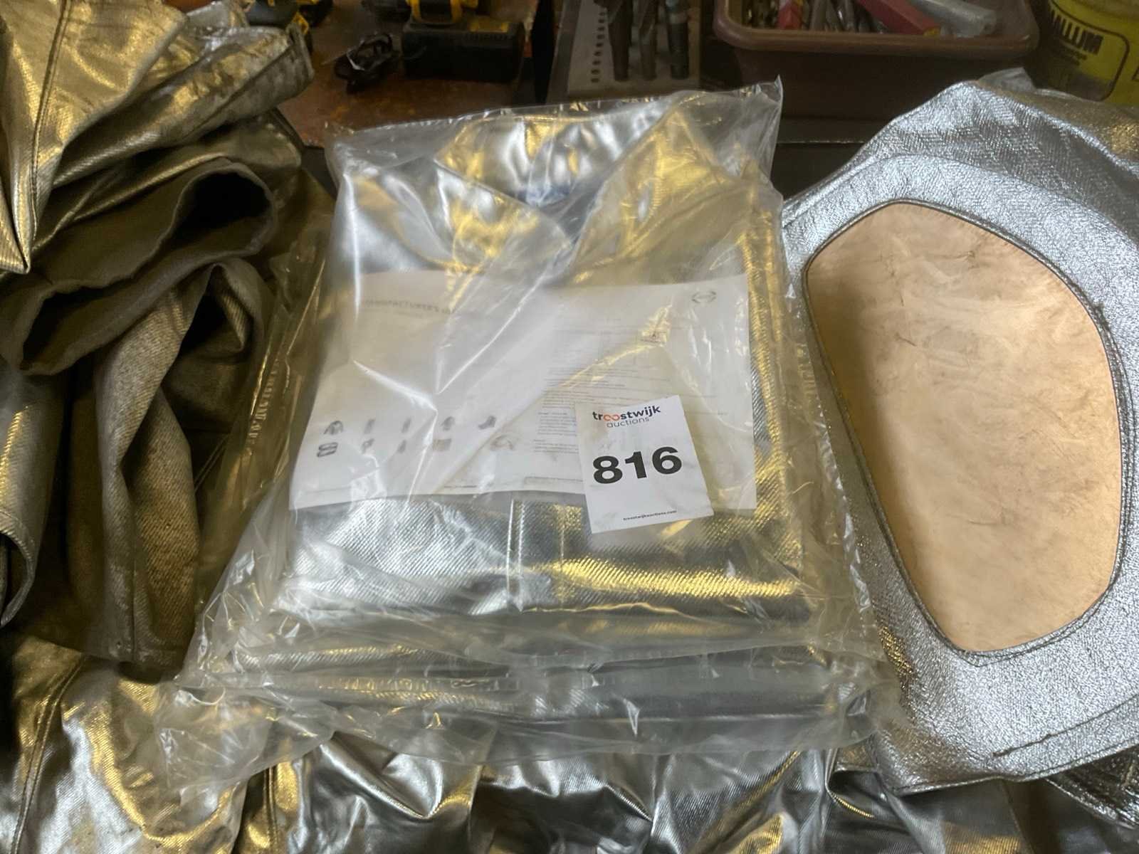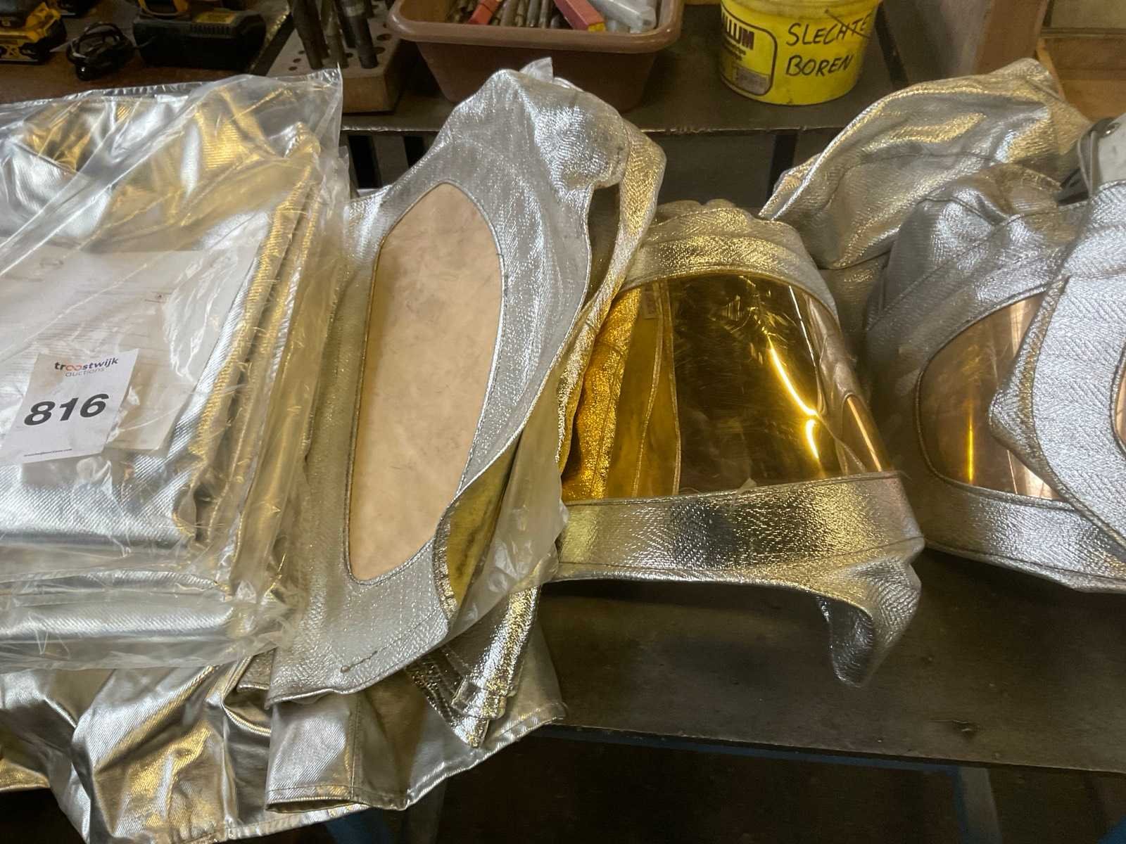 Bestaande uit ca. 9 stuks hitte beschermende helm met masker, in gebruikte staat, ca 9 stuks hitte beschermende jassen, in gebruikte staat en ca. 3 stuks hitte beschermende jassen in ongeopende verpakking Nee