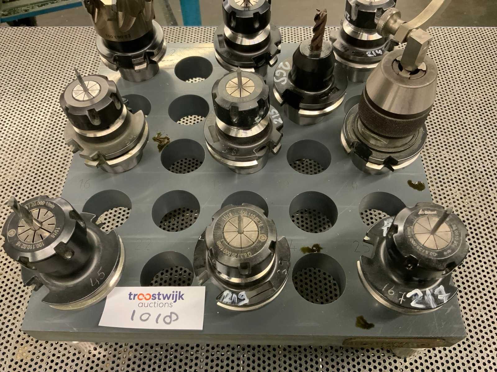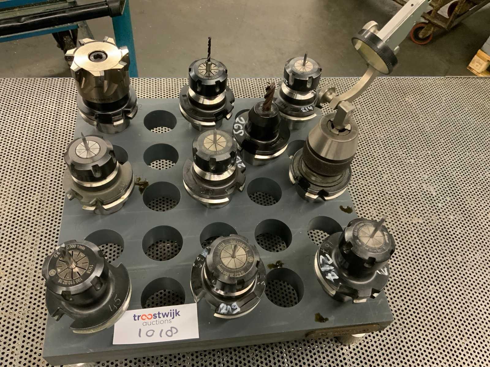 Kunststof houder met diverse gereedschapshouder waaronder G6.3/20.000 1/min Waarvan 1 voorzien van mitutoyo meettaster Nee Merk: Garant Type: SK 40 Opname iso: SK 40
