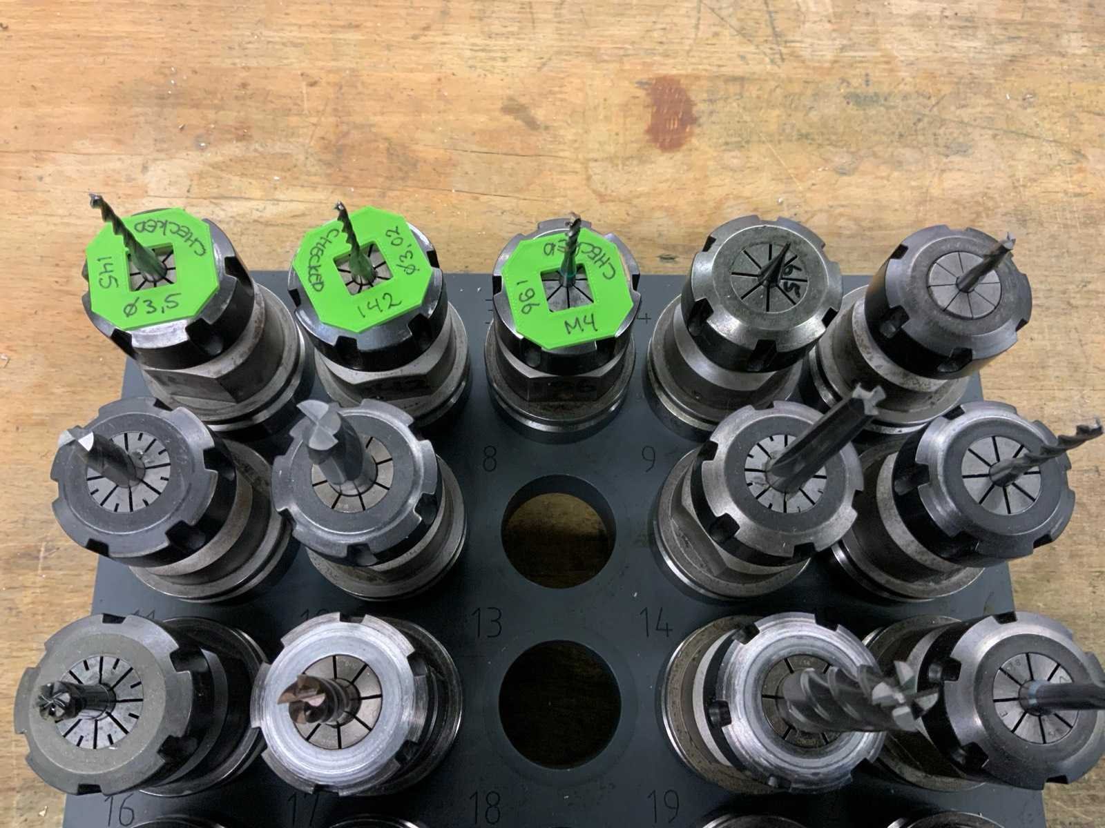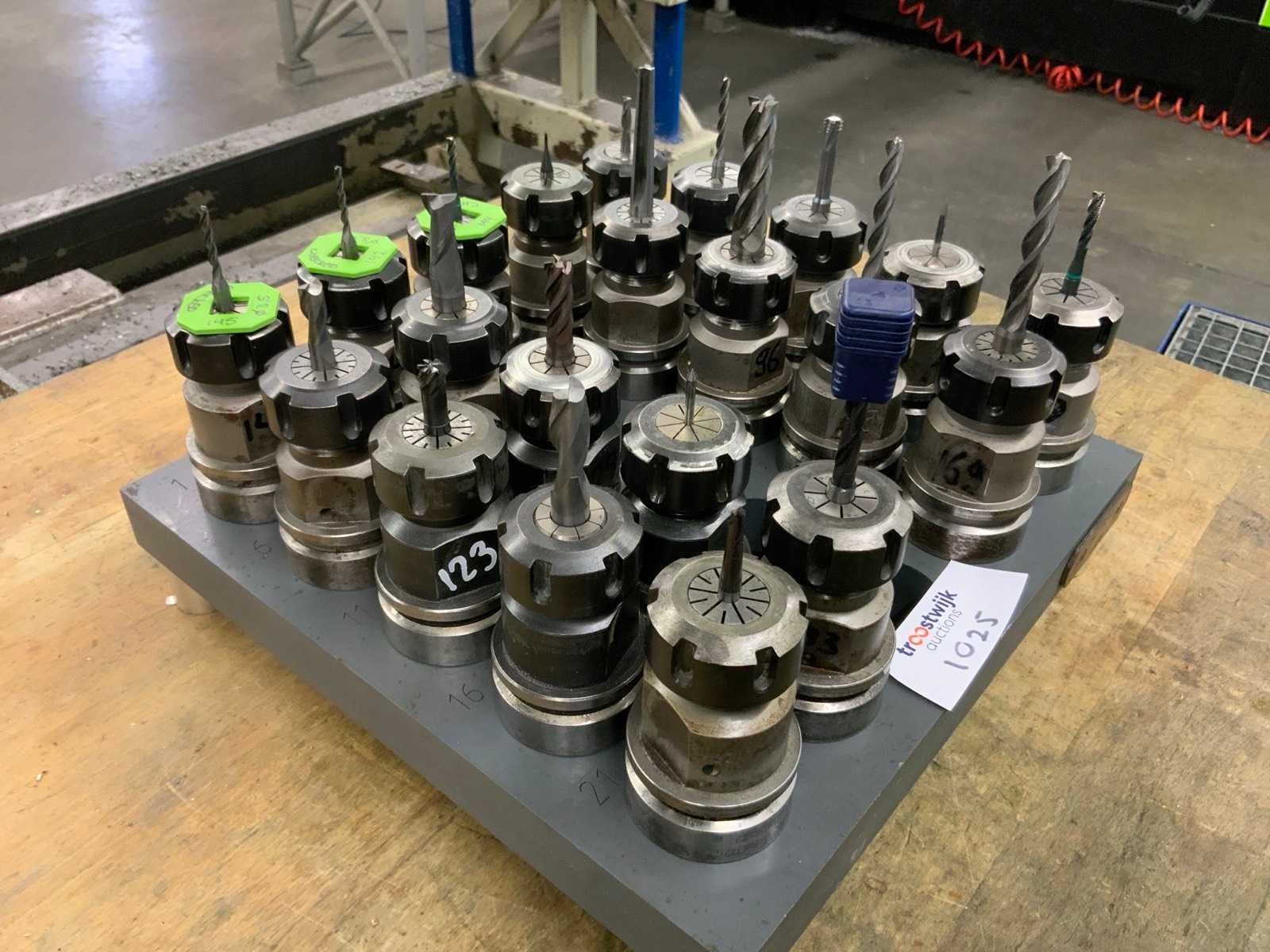 Diverse merken en formaten gereedschapshouders met diverse gereedschappen Waaronder ER25 In kunststof houder Nee Merk: Diebold Opname iso: HSK 50