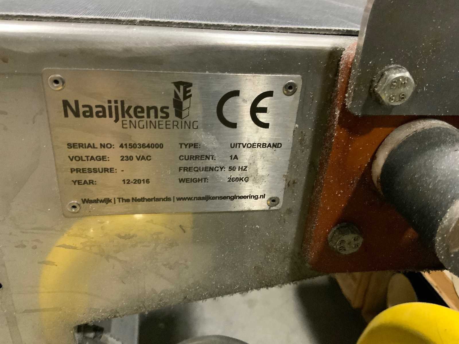 Voorzien van 2016 Naaijkens mobiele aanvoerband 300cm, bandbreedte: 135cm, Naaijkens afvoerband systeem mobiel 3 delig met bocht. Naaijkens afvoerband recht: 485x80cm, Naaijkens kettingbaan bocht 80cm, totale breedte 388cm, uitlijnband 135x100cm. Extra schuurbanden en borstels aanwezig. Motoren op pallet en onderdelen in krat Nee Merk: Heeseman Type: MFA impression Bouwjaar: 2015 Aansluiting: 400V Machinegewicht: 4500kg Afmeting l: 2600mm Afmeting b: 2200mm Afmeting h: 2250mm