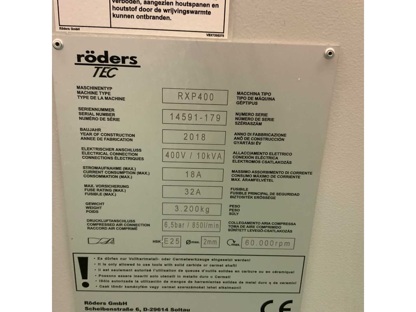 T sleuven 12 mm, afstand 50 mm Max. hoogte 330mm tussen spindle neus en machine tafel Max. Diameter gereedschap 2 mm Voorzien van 18 voudige gereedschapswisselaar Voorzien van spanenseparator en transporteur Erowa ER-016841 upc klauwplaat Afgelezen freestijd 29529 uur 32 A Nee Merk: Röders Type: RXP 400 Bouwjaar: 2018 Opname iso: HSK E25 Verplaatsing x-as: 410mm Verplaatsing y-as: 294mm Verplaatsing z-as: 210mm Snelheid van n =: 0rpm Snelheid tot n =: 60000rpm Afgelezen urenstand: 54119 CNC-besturing, merk, type: Röders control Koelmiddelpomp: true Werkstuk gewicht max.: 100kg T-gleuf opspantafelafmeting B: 450mm T-gleuf opspantafelafmeting L: 300mm -assig: 3 Motorvermogen (kW): 10kW Aansluiting: 400V Totale afmeting Hoogte: 208000mm Totale afmeting Breedte: 193000mm Totale afmeting L: 251500mm Machinegewicht: 3200kg
