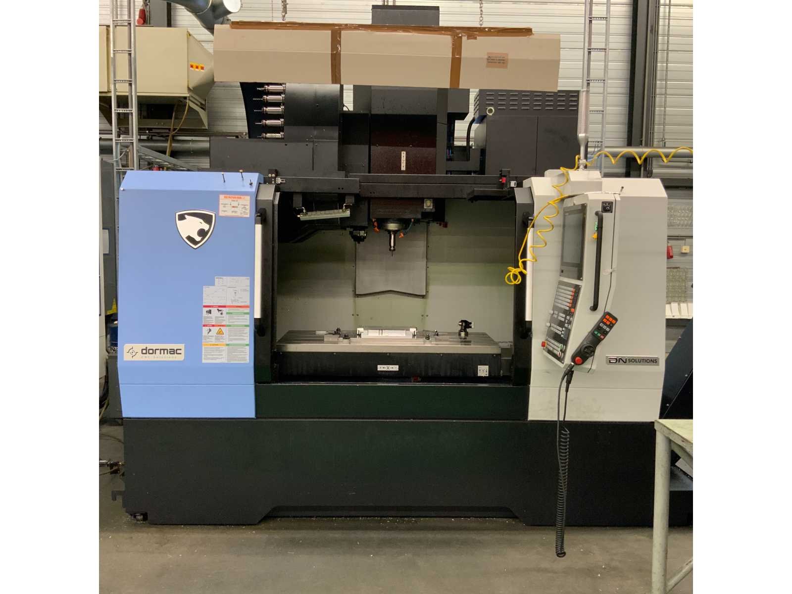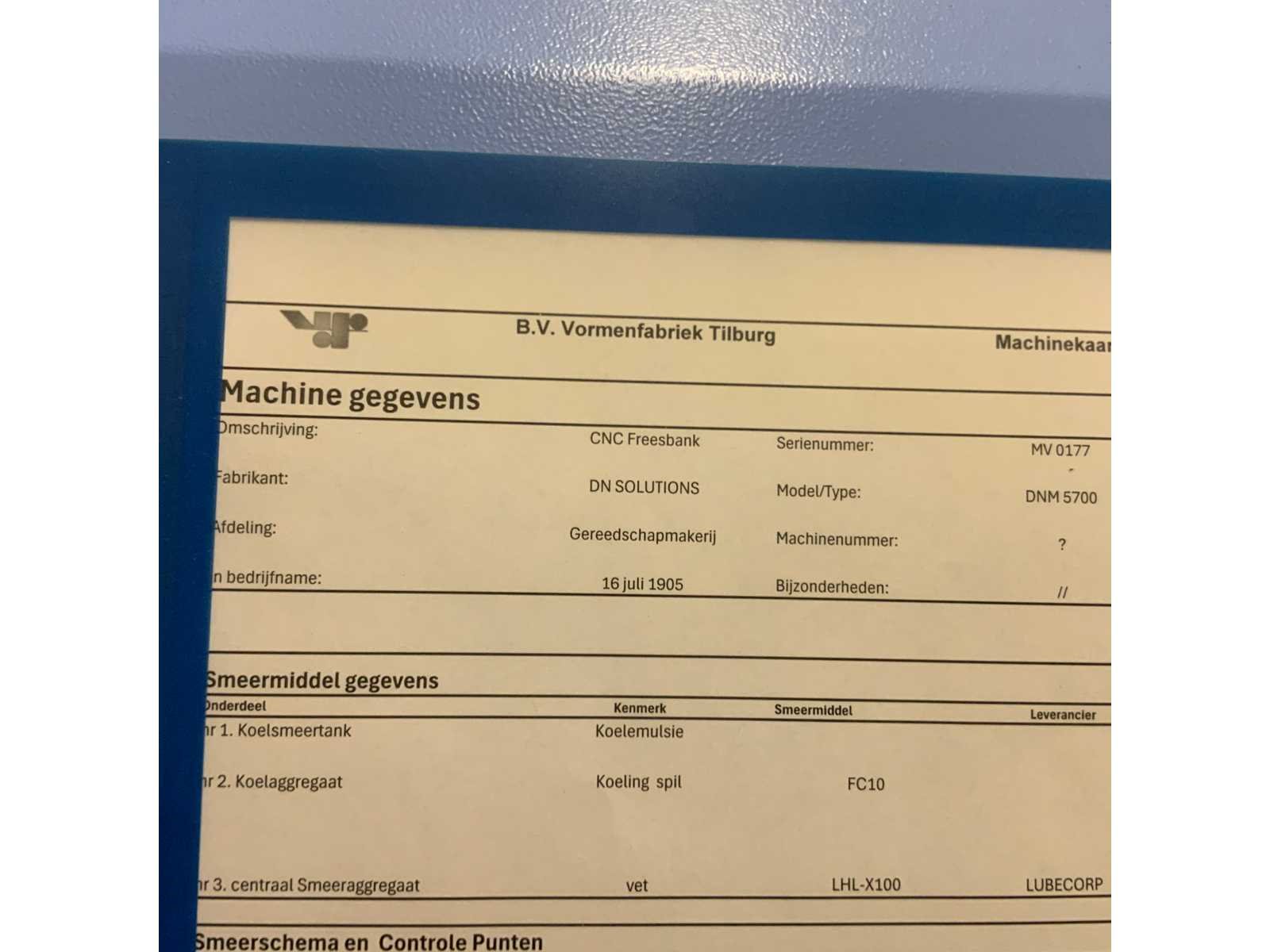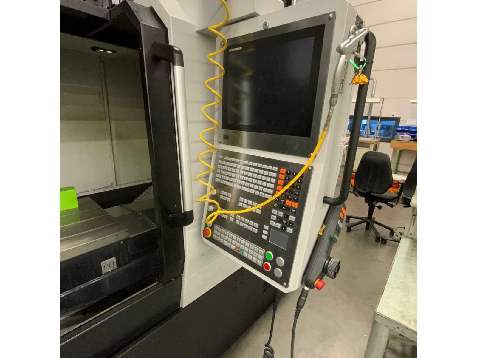 Freesmachine voorzien van koelinstallatie Voorzien van 40 voudige gereedschapswisselaar renishaw omi-2T gereedschaps instel taster Vacuüm spanplaat Nee Merk: Dormac Type: DNM 5700 Bouwjaar: 2024 Serienummer: 14591-179 Opname iso: SK 40 Verplaatsing x-as: 1050mm Verplaatsing y-as: 570mm Verplaatsing z-as: 510mm Snelheid tot n =: 12000rpm CNC-besturing, merk, type: Heidenhain Spanentransporteur: true Werkstuk gewicht max.: 1000kg T-gleuf opspantafelafmeting B: 1300mm T-gleuf opspantafelafmeting L: 570mm -assig: 3 Aansluiting: 380V Totale afmeting Hoogte: 28300mm Totale afmeting Breedte: 25600mm Totale afmeting L: 28900mm Machinegewicht: 7500kg