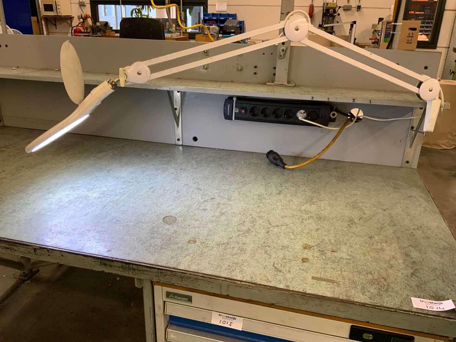 Voorzien van bankschroef, opzet met TL lichtbak en 5 laden Inhoud niet inbegrepen Nee Merk: Garant Breedte: 850mm Lengte: 1800mm Hoogte: 2090mm