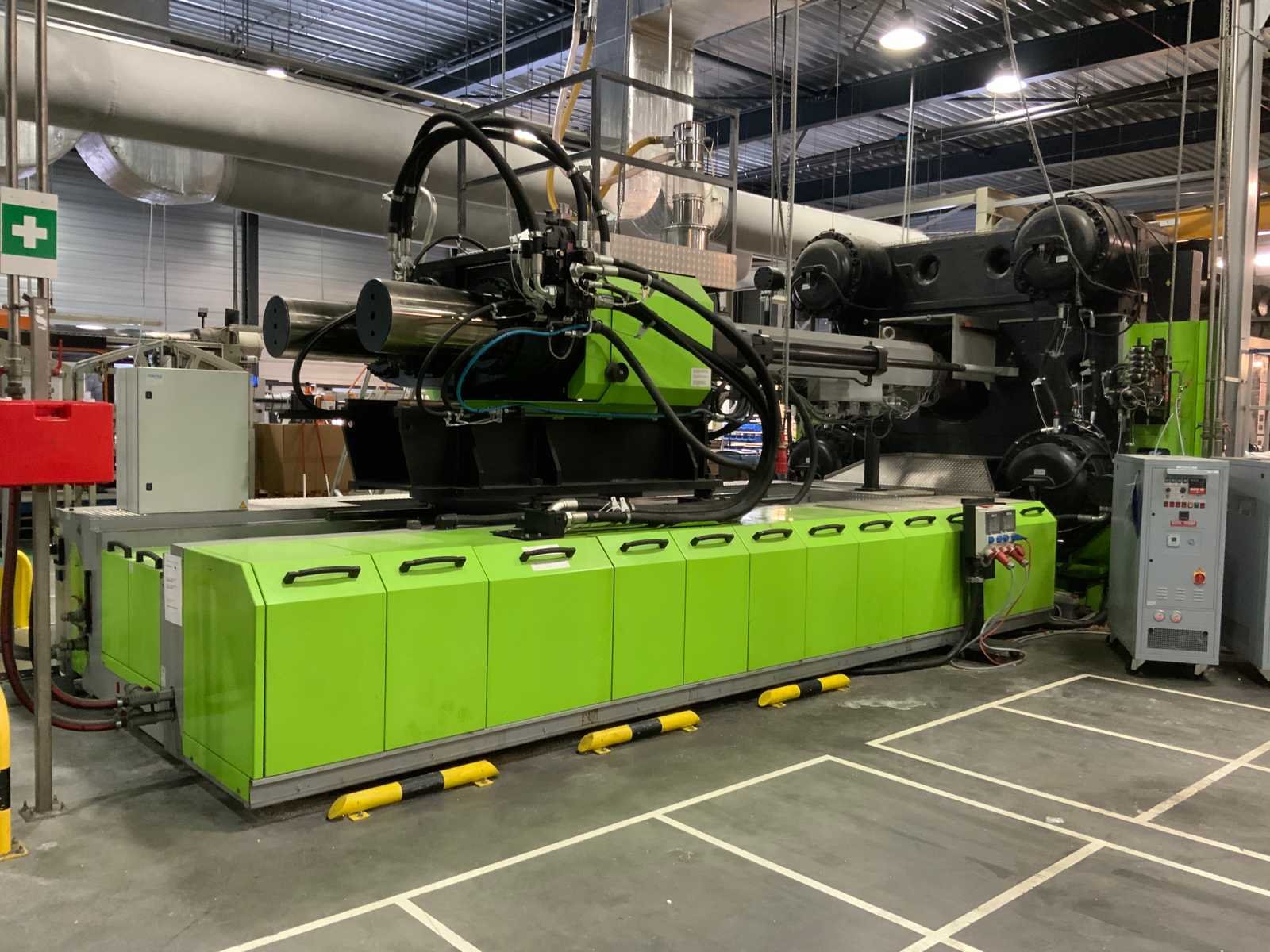 2 platen machine sluitkracht 2300 ton Open loopweg 3000 mm Inbouwhoogte min. 800 max. 1800 mm Afstand tussen holmen horizontaal 2000 vericaal 1600 mm Opspanplaat afm 2900x2500 mm Diameter centreerring 380/250/175 mm Centreerring adapterplaat 175 mm Min. Shotgewicht (1/2D) 986 gram max. shotgewicht 7983 gram. Max. Shotgewicht 3D 5913 Gewicht 1D 1971 en 2D 3942 Max. specifieke spuitdruk 1980 bar Schroefdiameter 135 mm cschroeftype conventioneel optimaal pc Cilindertype S13/M3 Hydraulische druk tot 250 bar instelbaar Neusradius R39 neus L380-M98x6 L/D verhouding 22 Min. Toerentallen schroef 8,9 omw/min 560 Kw Product gewichten Min. Shotgewicht (1/2D) 986 gr Gewicht 1D 1971 gr Gewicht 2D 3942 gr Max. Shotgewicht 3D 5913 gr Incl. - Besturing - bordessen en trappen - aanrijd beveiliging - Takel en matrijs transportrol systeem Nee Merk: Engel Type: Duo 16050/2300 Bouwjaar: 2005 Serienummer: 157403 Schroefdiameter: 135mm Injectievolume: 8870cm³ Injectiedruk: 6bar Sluitkracht: 12000kN Uitwerpslag: 350mm Machinegewicht: 14100kg