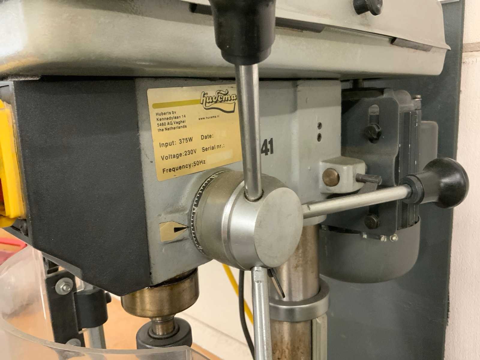 Werkbank niet inbegrepen, koper dient machine van werkbank te demonteren Nee Merk: Huvema Type: Hu 13 profi Boorcapaciteit: 13mm Snelheid van n =: 500rpm Snelheid tot n =: 2500rpm Boordiepte: 60mm Tandwiel aangedreven: true Tafel afmeting l: 185mm Tafel afmeting b: 200mm Motorvermogen (kW): 4kW Aansluiting: 230V Afmeting l: 300mm Afmeting b: 500mm Afmeting h: 730mm