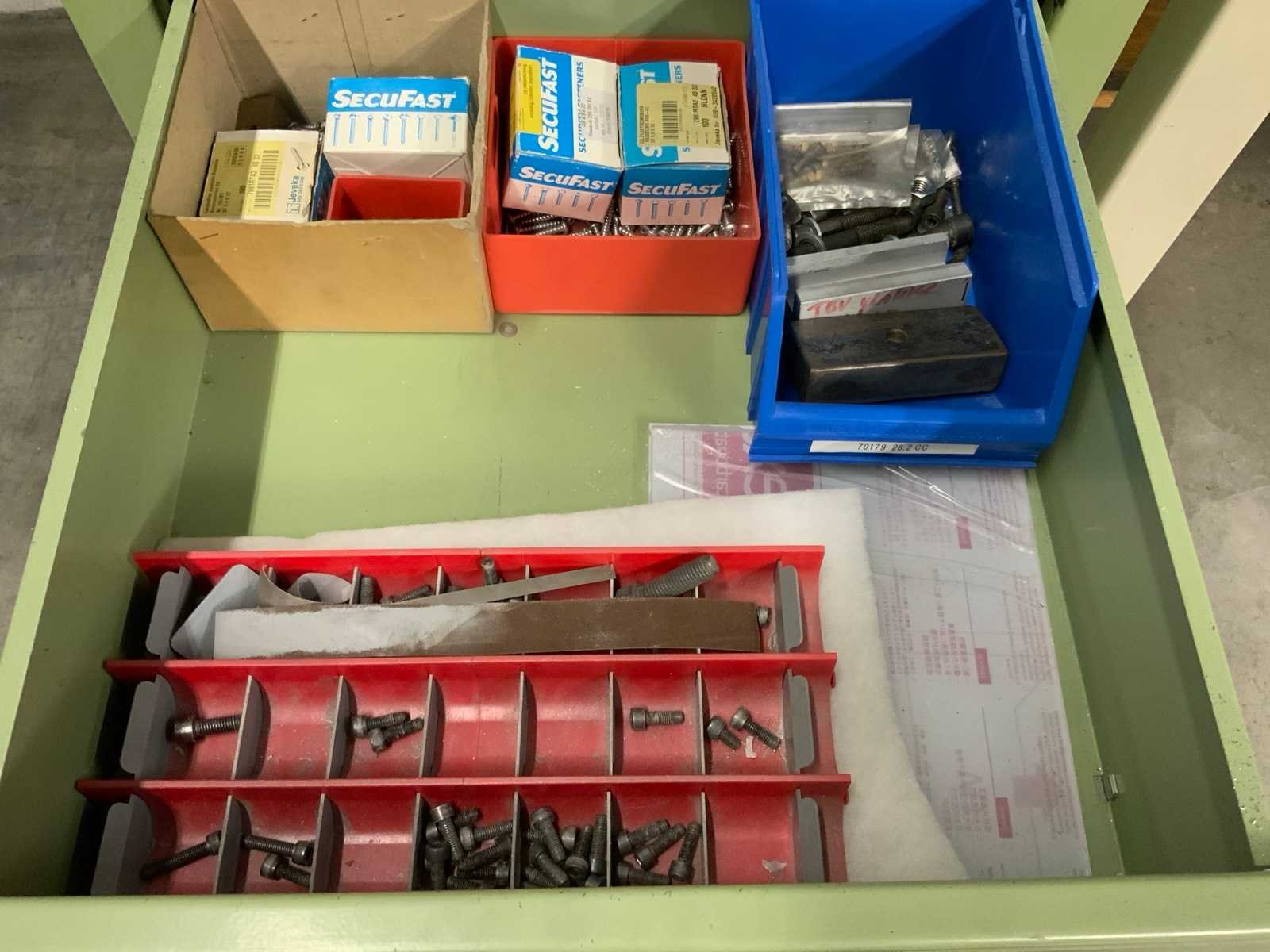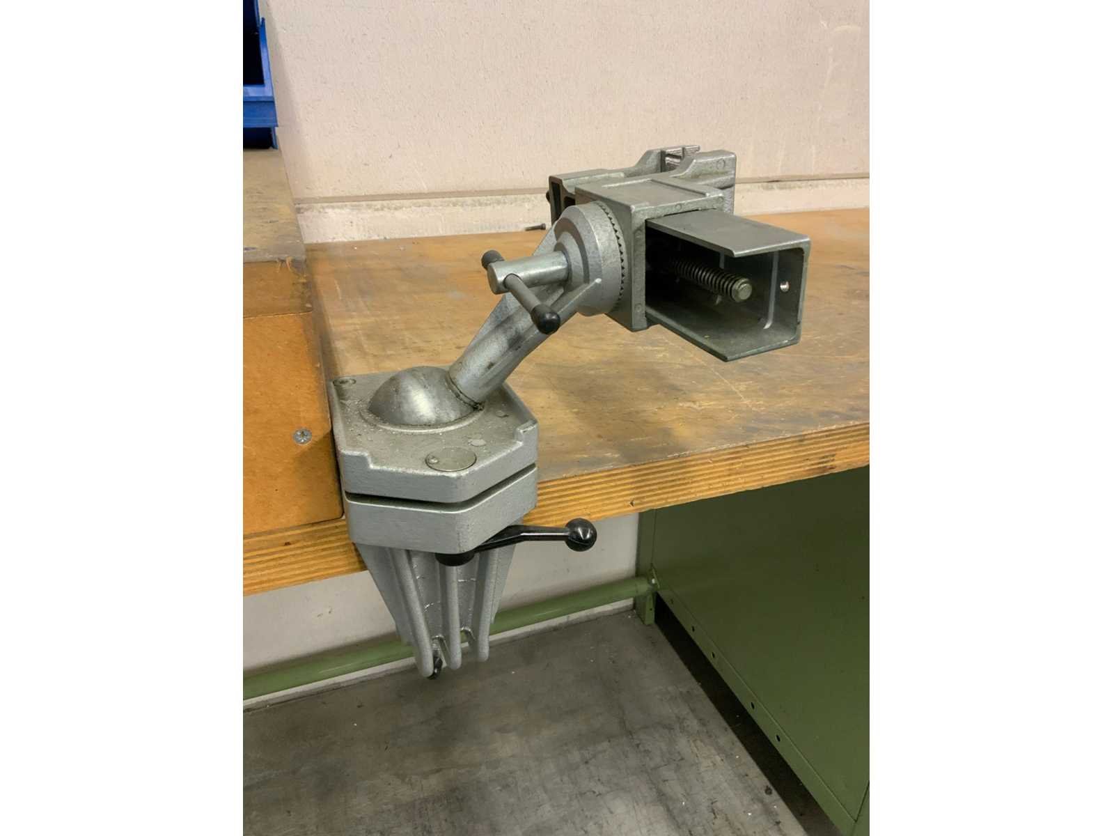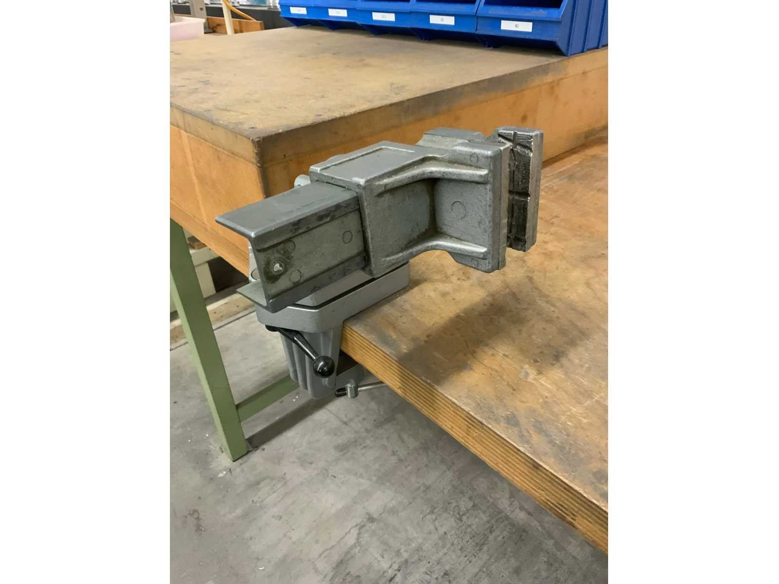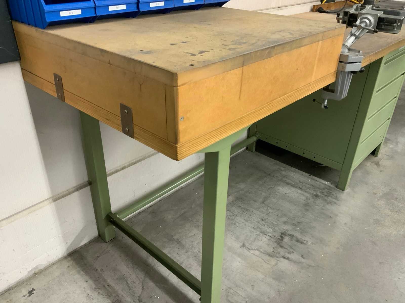 Voorzien van 4 laden met inhoud, bankschroef, houten opbouw en 14 kunststof grijpvoorraad bakken Werkblad dikte ca. 4 cm Nee Merk: Overtoom Breedte: 750mm Lengte: 2000mm Hoogte: 855mm