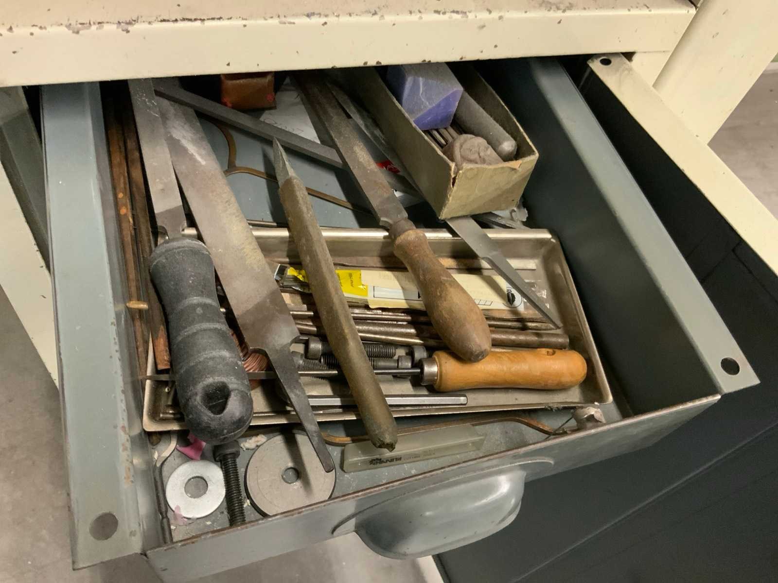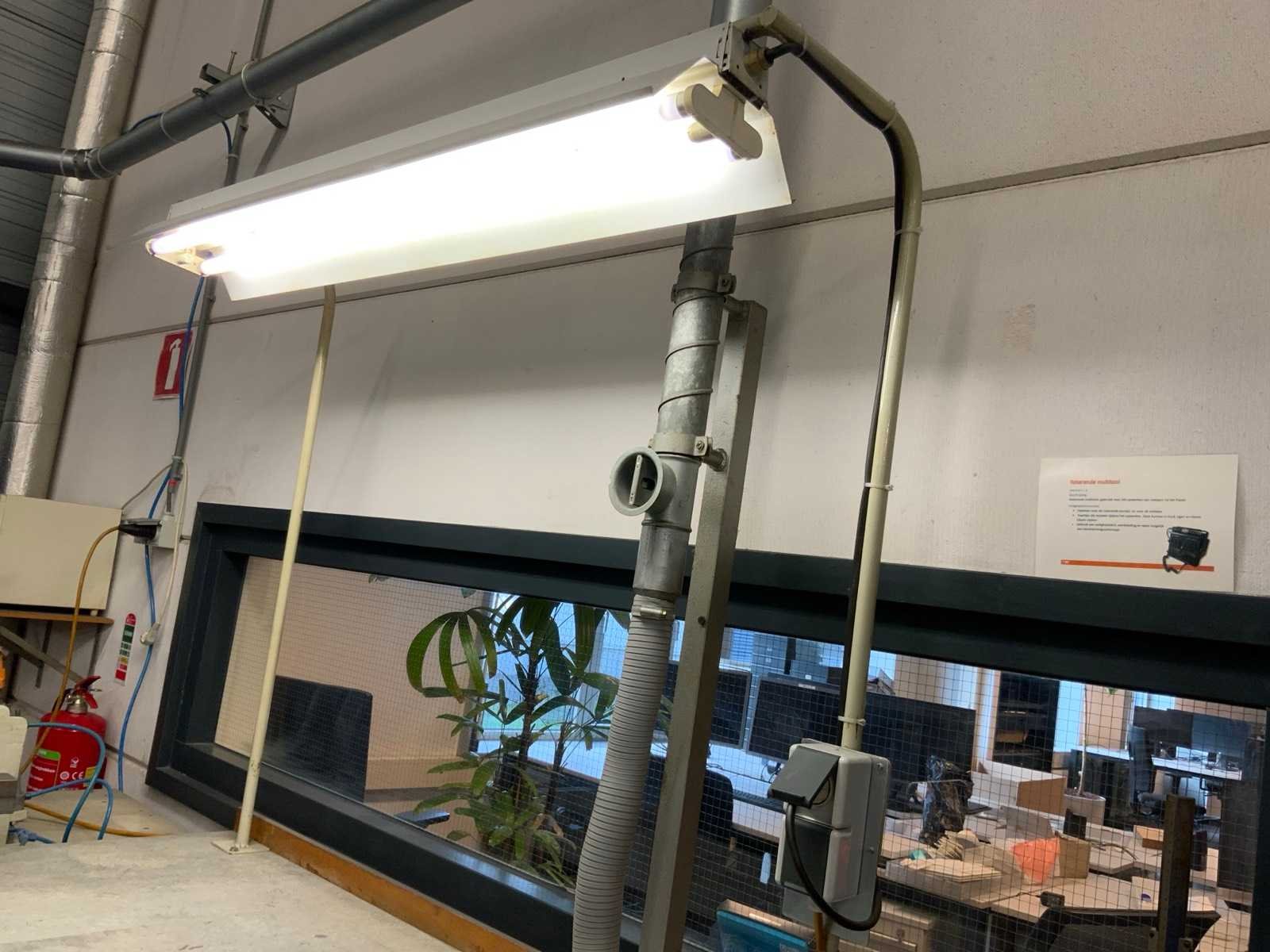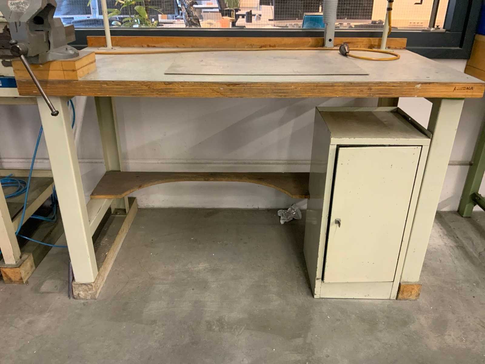 Voorzien van opbouw TL verlichting Dubbel stopcontact bankschroef Stalen onderkast met inhoud Dikte werkblad ca. 5 cm Afzuiging niet inbegrepen Nee Breedte: 715mm Lengte: 1500mm Hoogte: 860mm