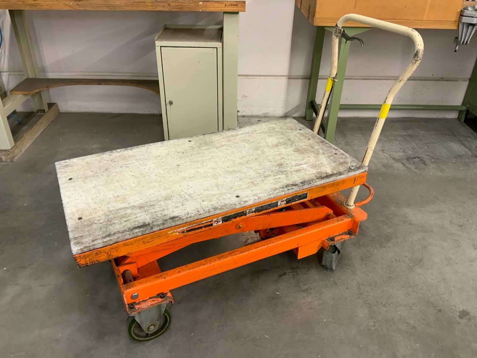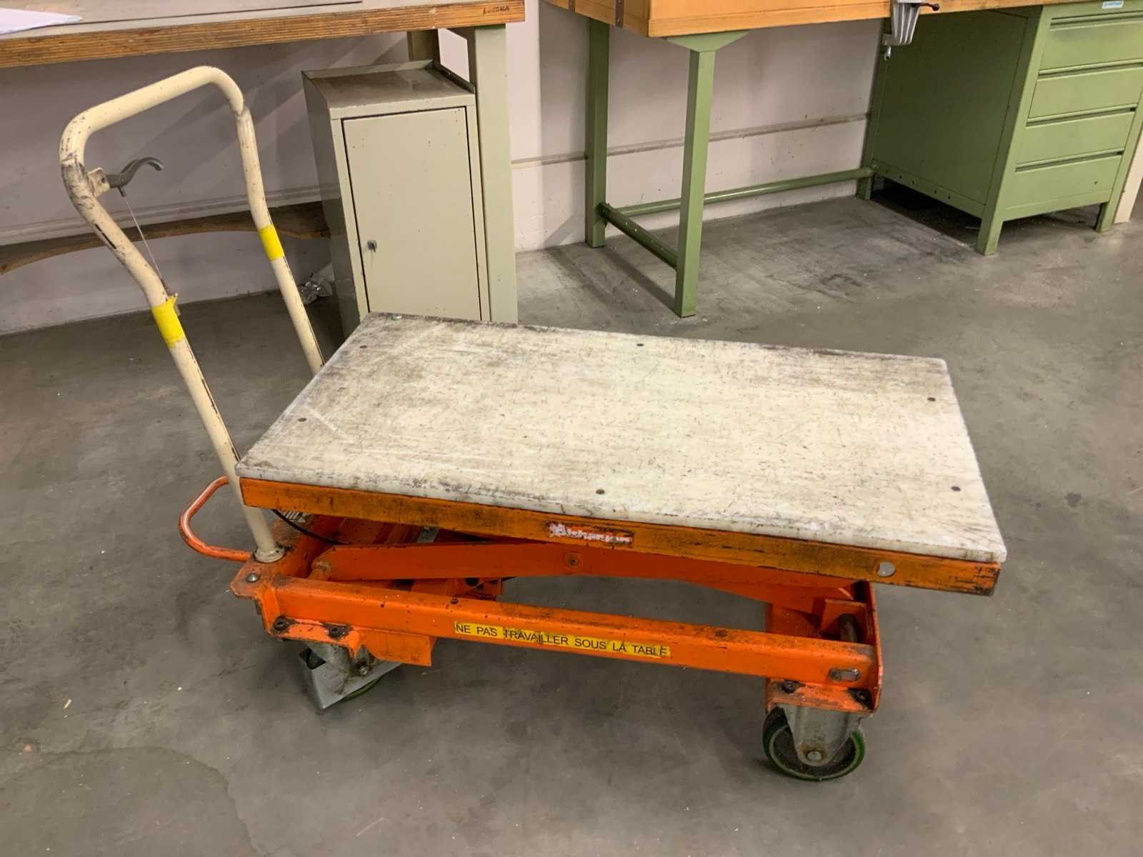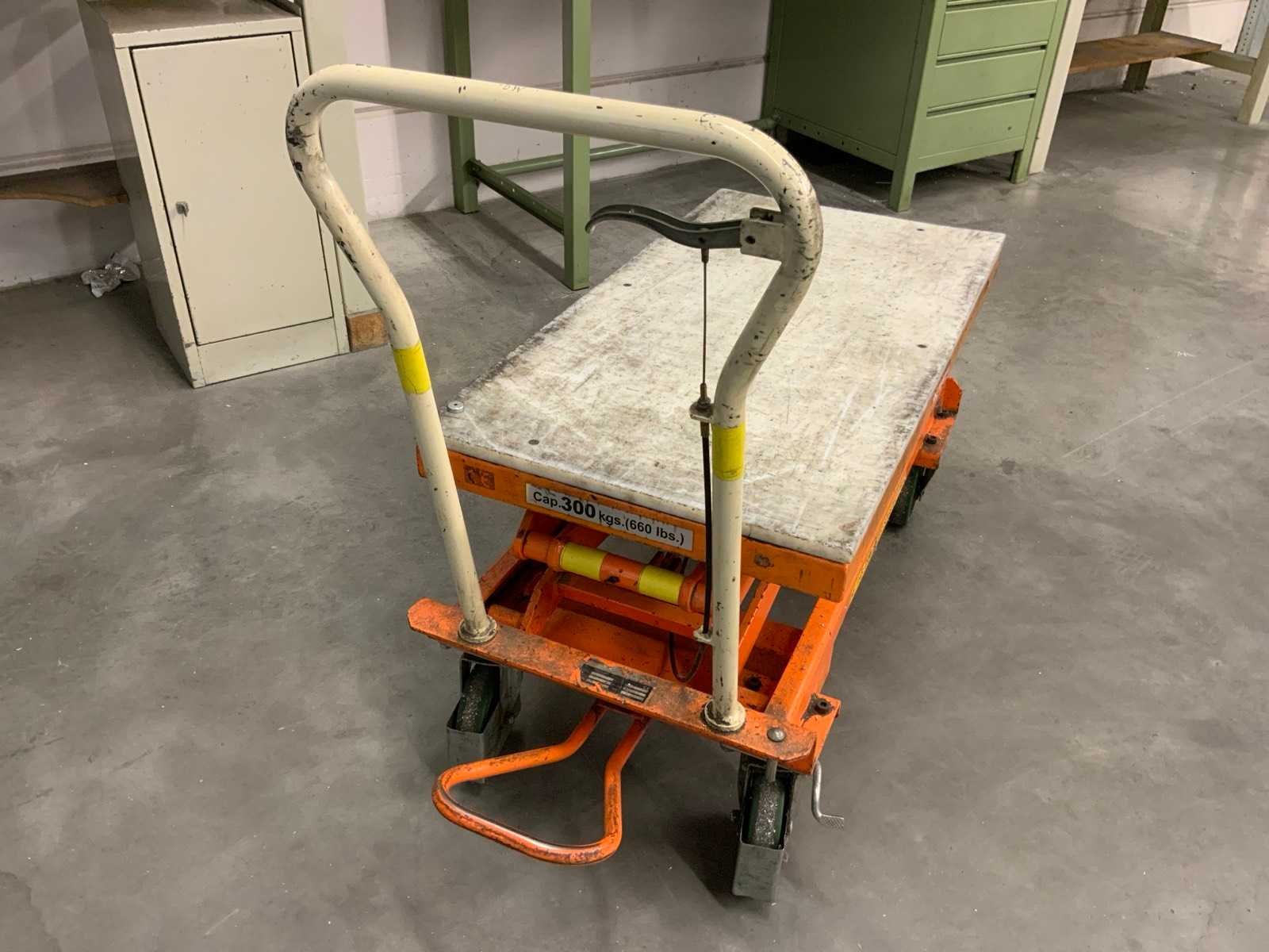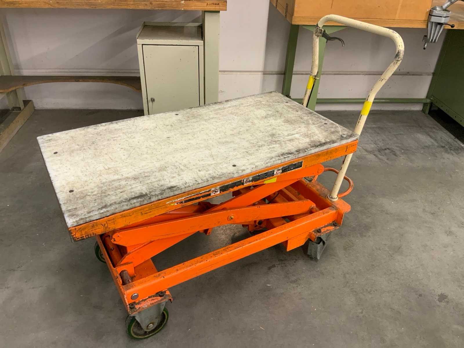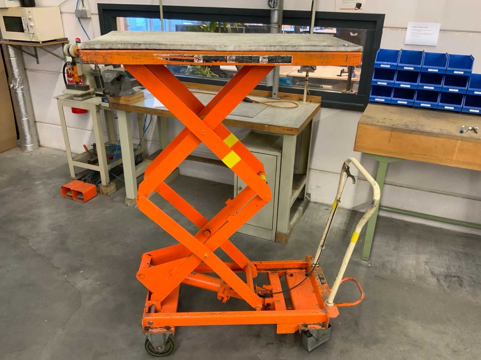 Mobiele schaarheftafel, max hoogte ca. 155 cm Nee Merk: Bishamon Plateau afm. l: 1010mm Plateau afm. b: 520mm Capaciteit.: 300kg Totale afmeting L: 1300mm Totale afmeting Breedte: 550mm Totale afmeting Hoogte: 970mm