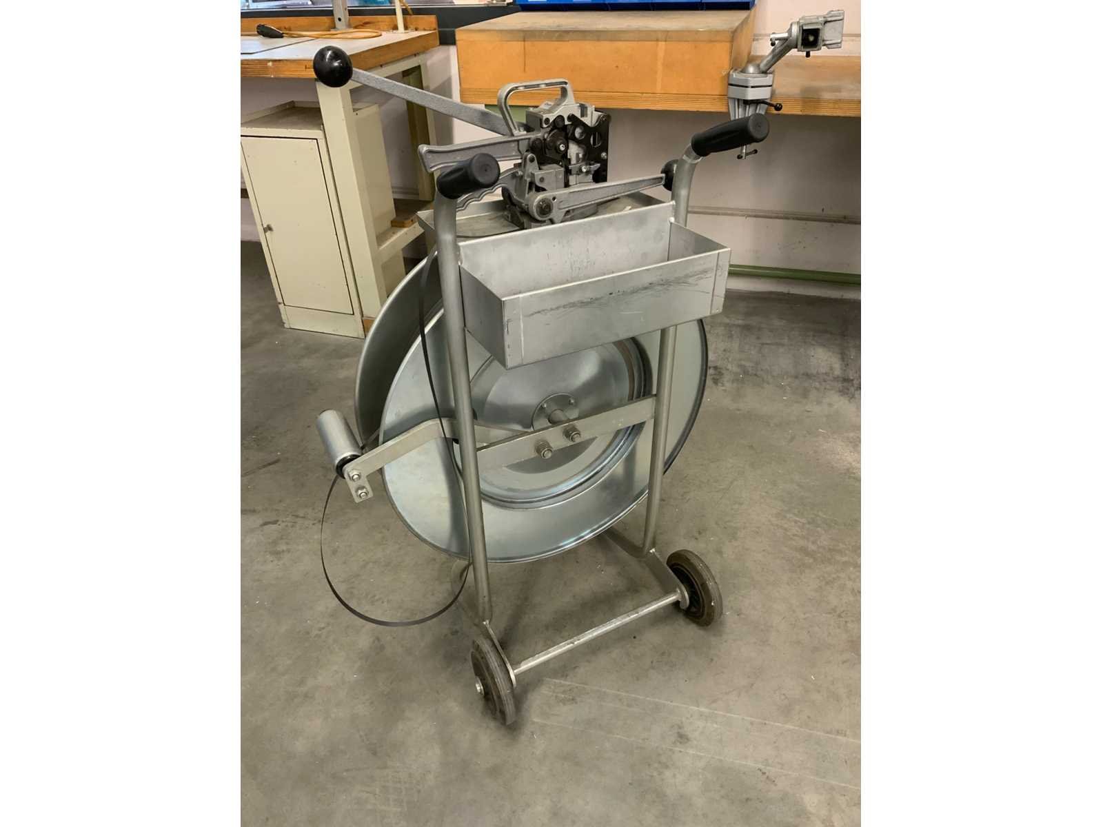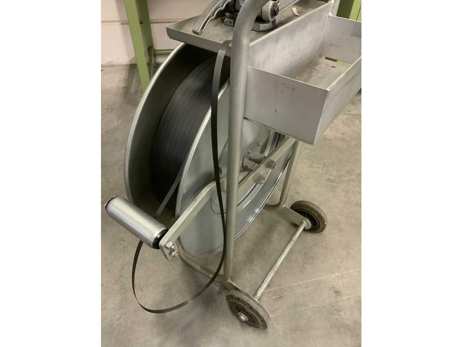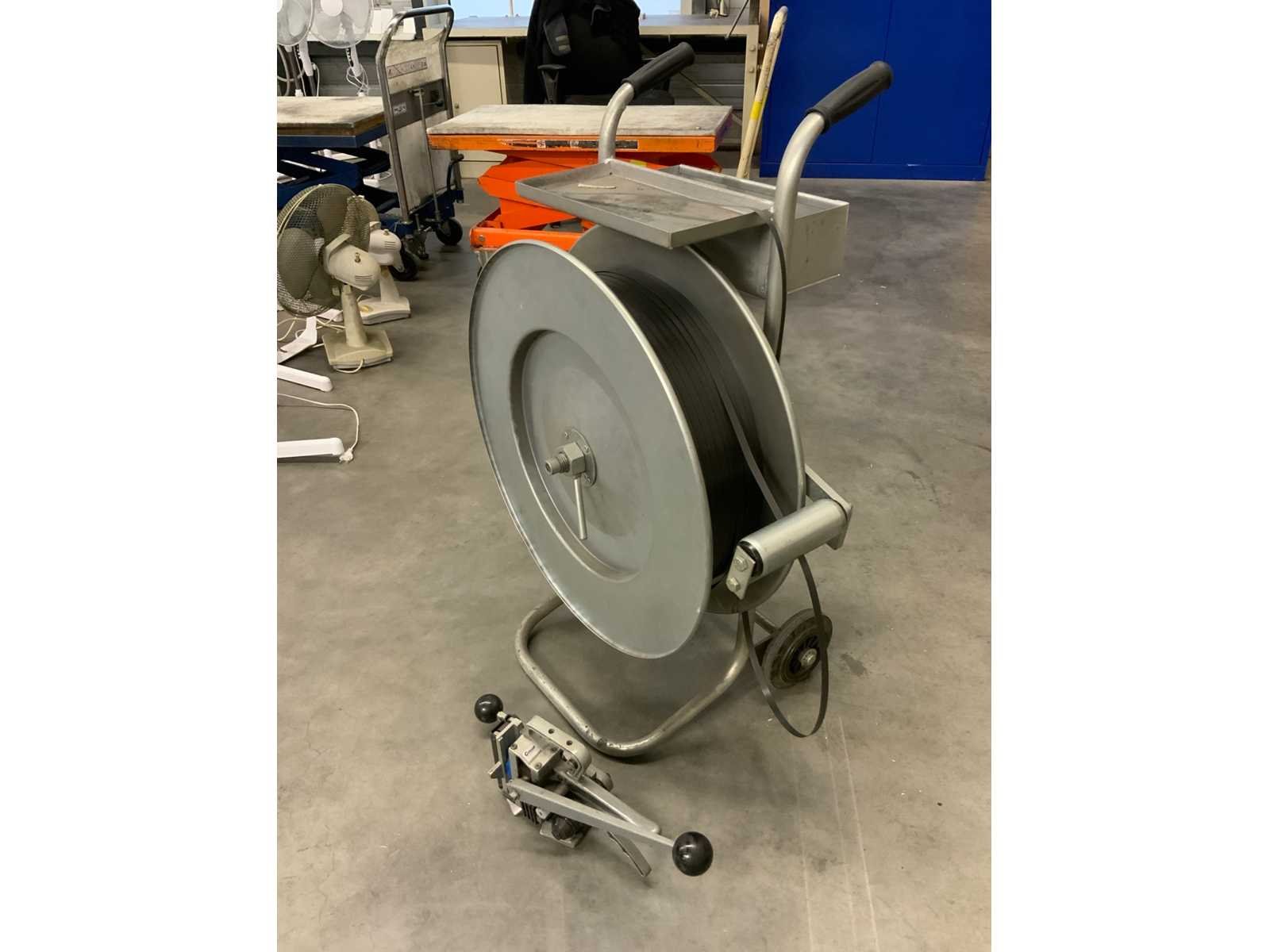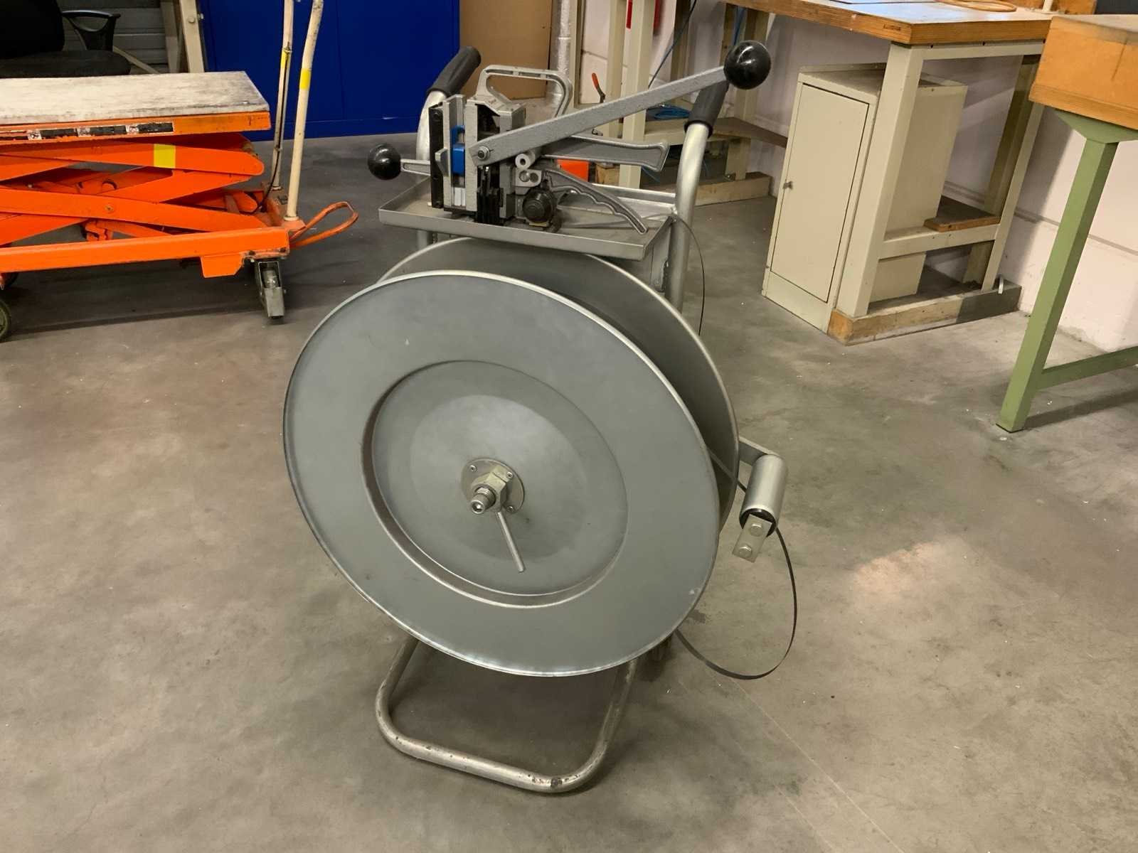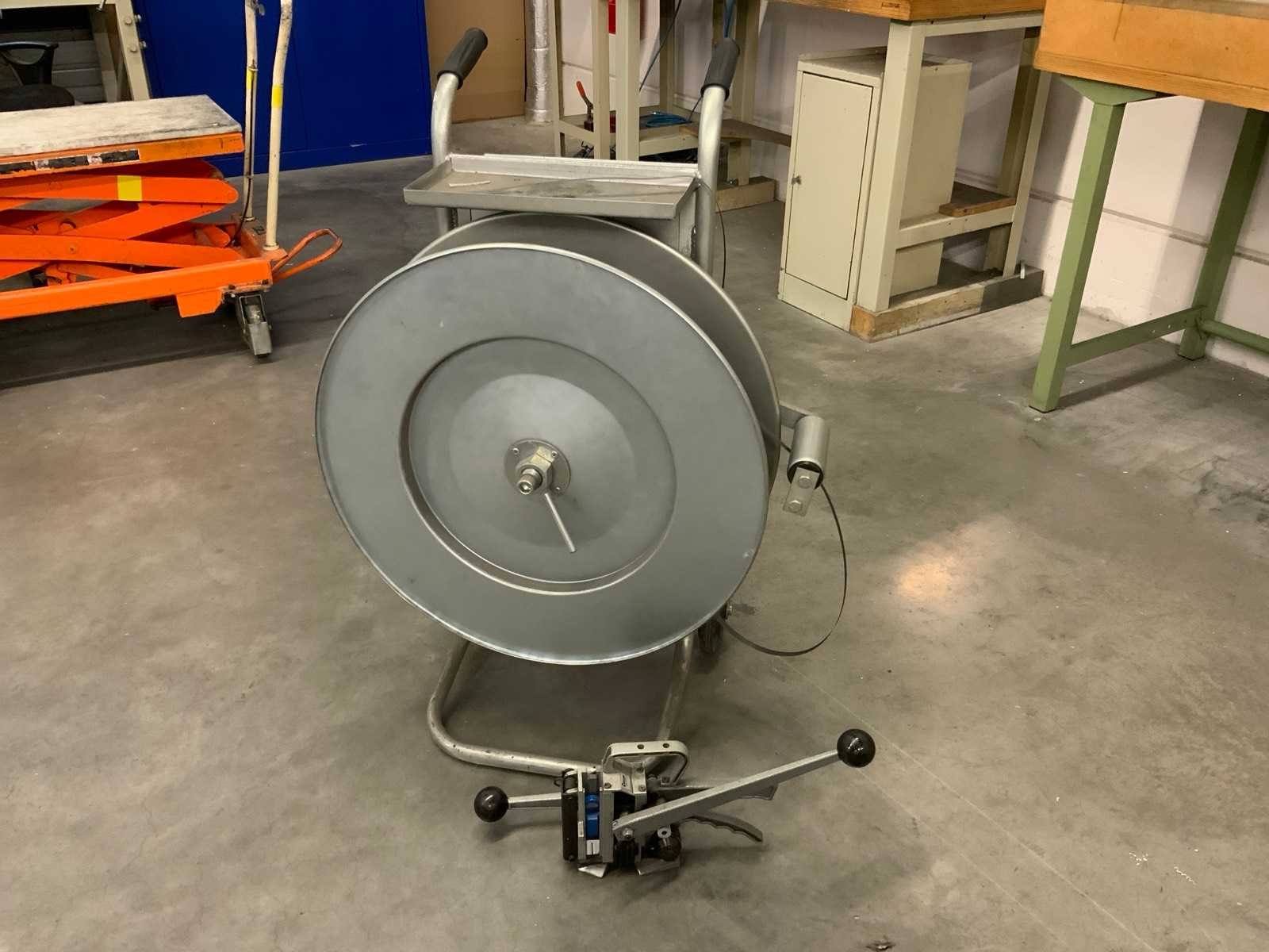 Verrijdbare haspel met bandrol en bandsluit apparaat Nee Merk: Cyklop Kunststof band: true Totale afmeting L: 720mm Totale afmeting Breedte: 450mm Totale afmeting Hoogte: 1000mm