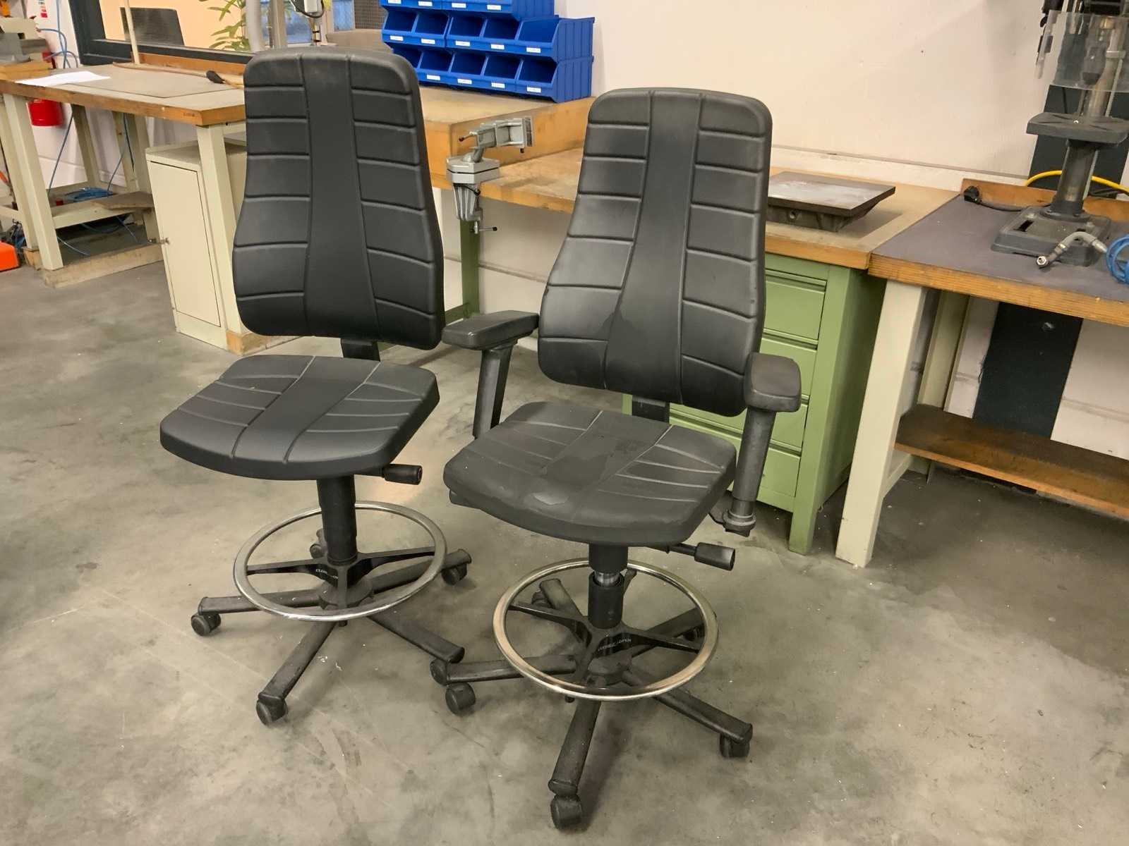In hoogte verstelbare stoel voorzien van kunstlederen bekleding, hoge rugleuning en voetring Waarvan 1 voorzien van armleuningen Nee Breedte: 46cm
