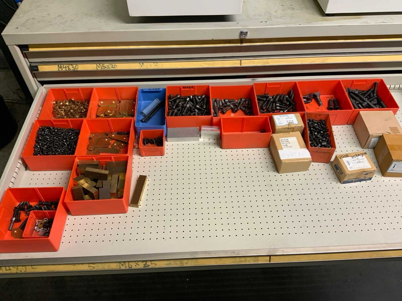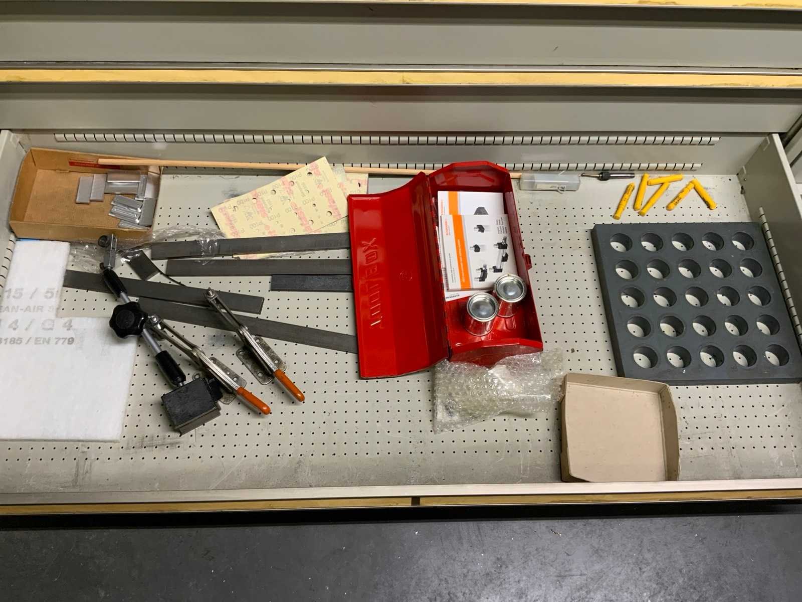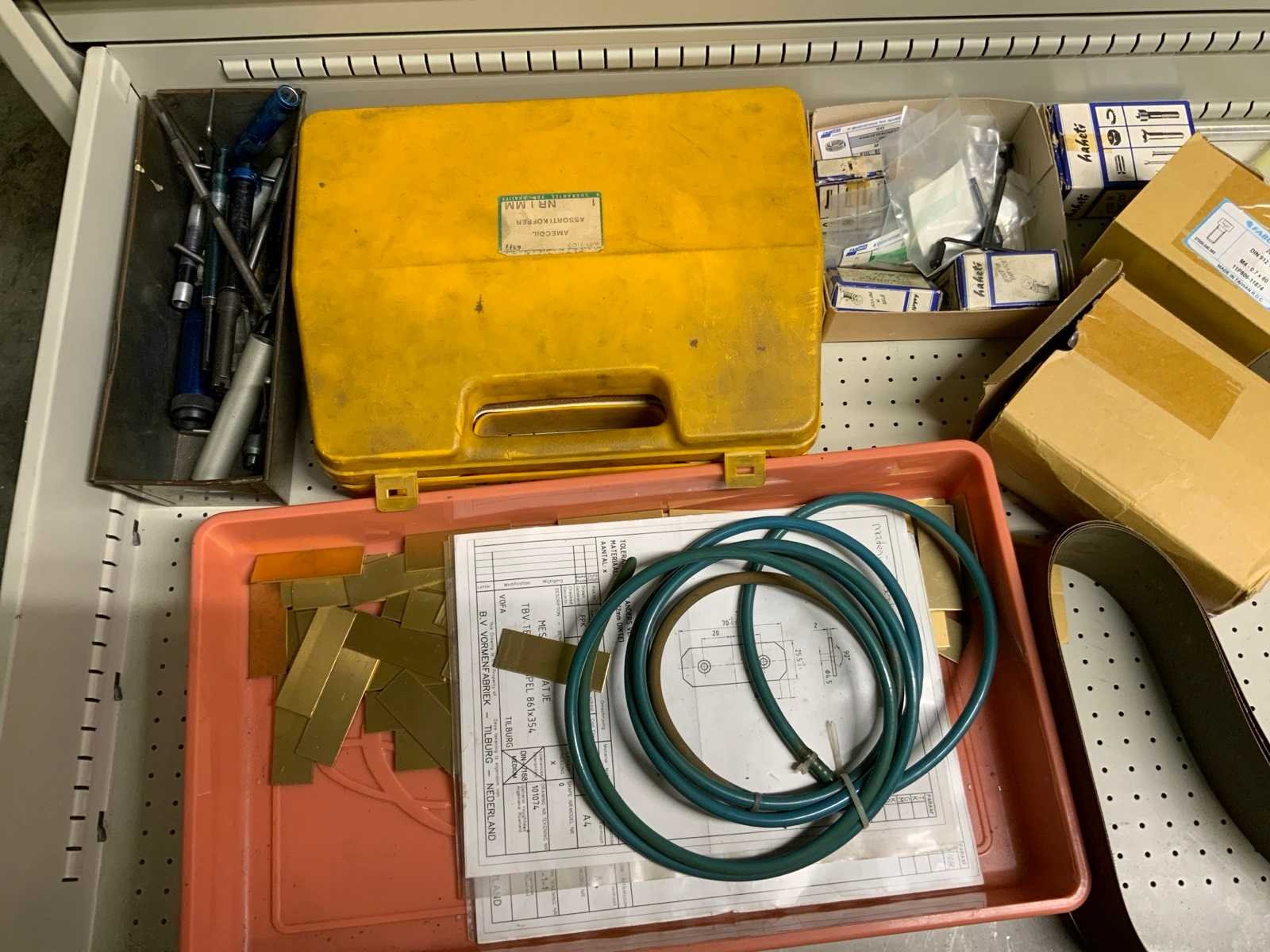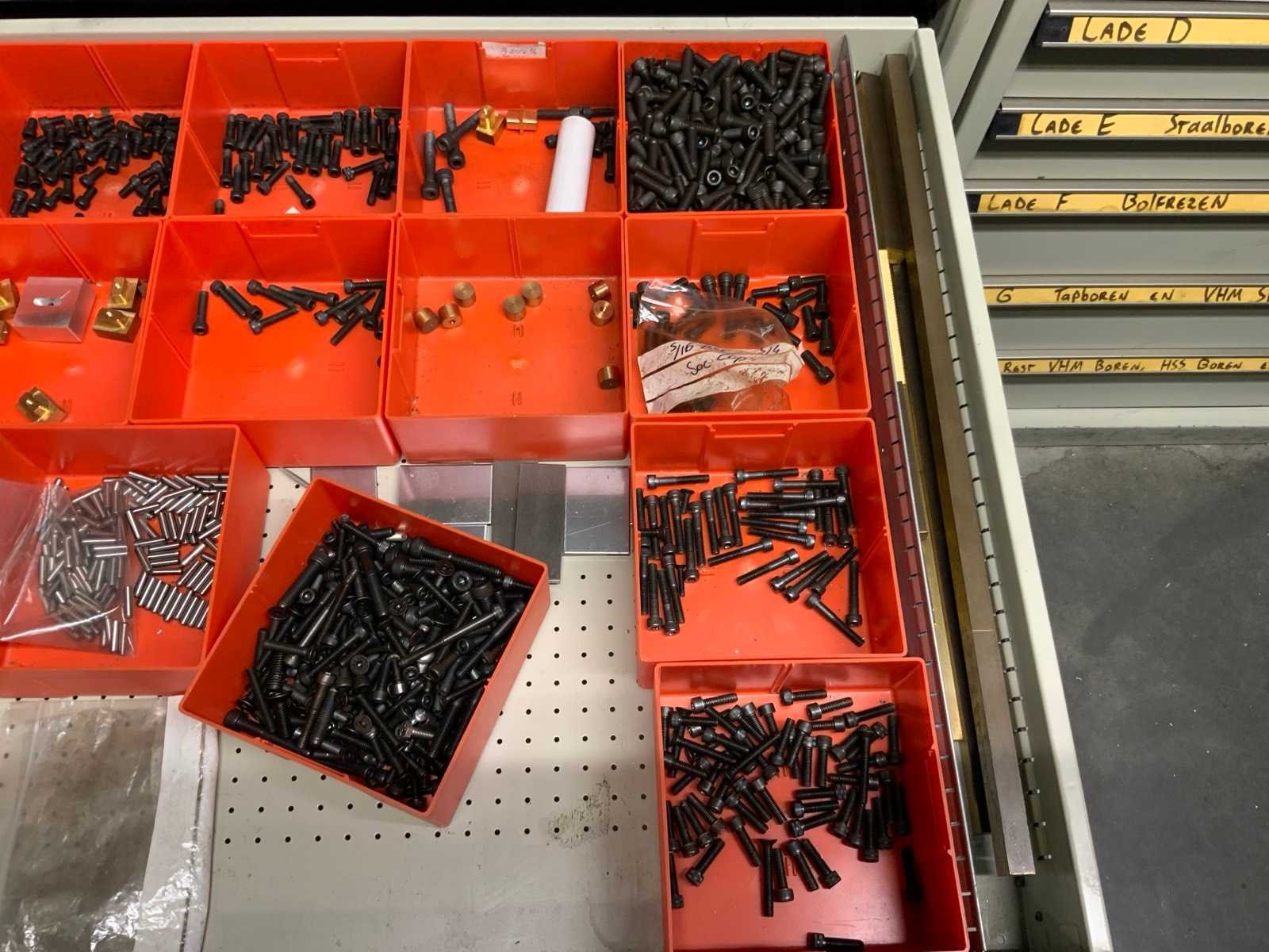 Ladekast voorzien van 8 laden met inhoud bestaande uit diverse boren, frezen, Nee Merk: Lokoma Lengte: 143cm Breedte: 73cm Hoogte: 100cm