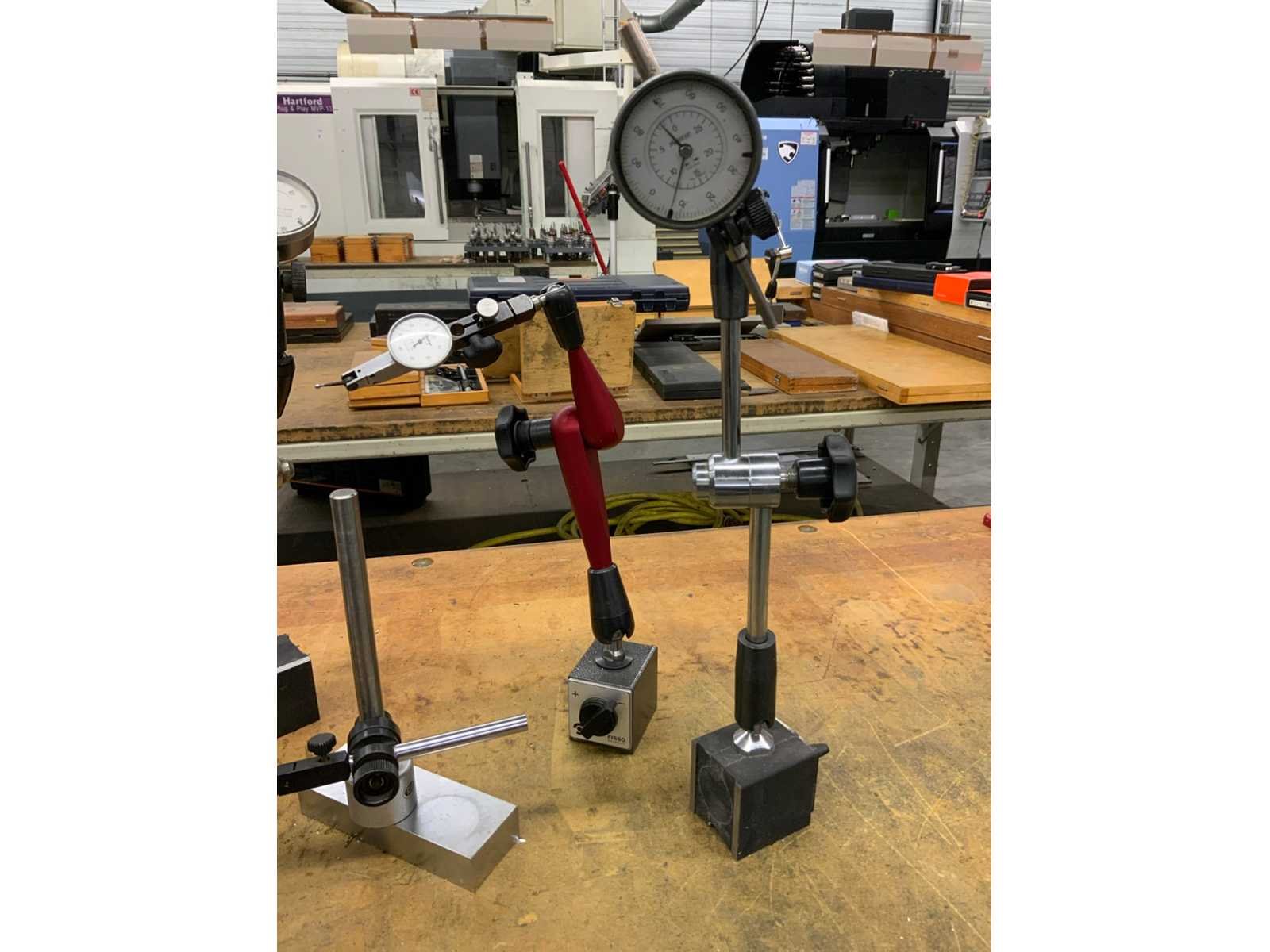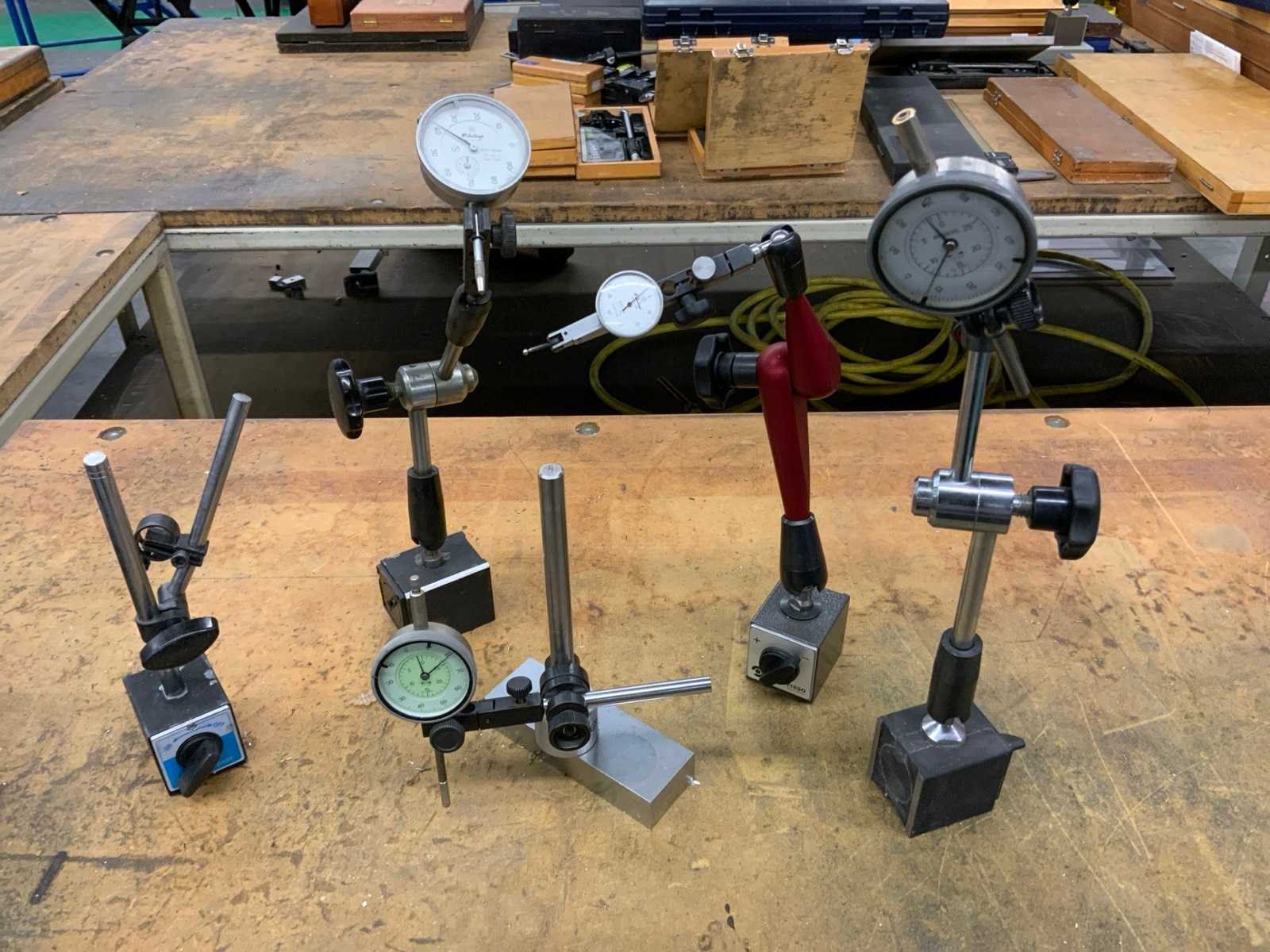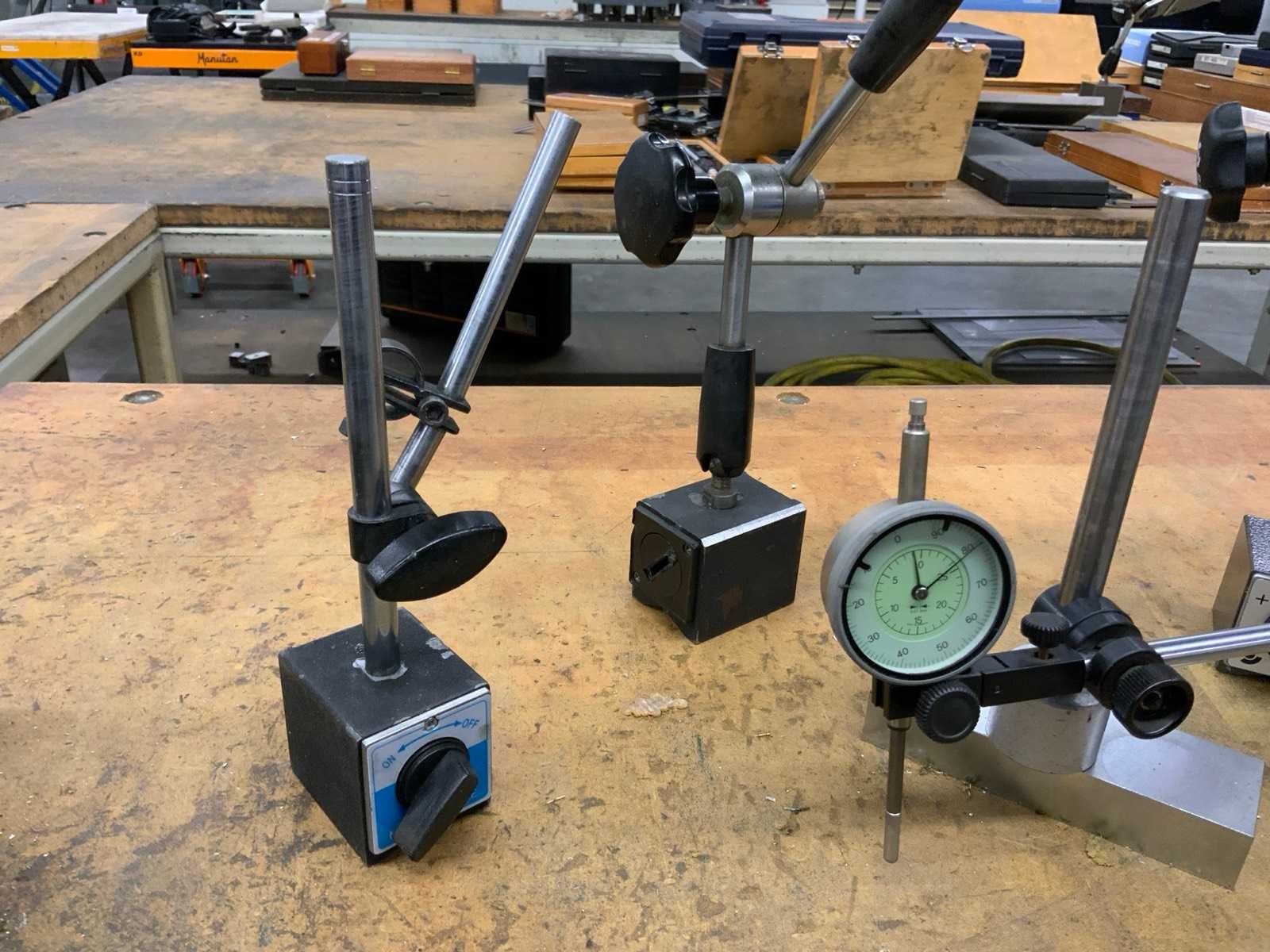 Diverse meetklokken op standaard waarvan enkele magnetische standaards Nee Merk: Mitutoyo